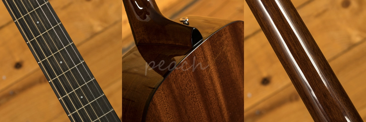 The Mahogany neck features a Walnut fingerboard and is comfortable and has a great low action. It sounds brilliant for both big chords and delicate fingerstyle.