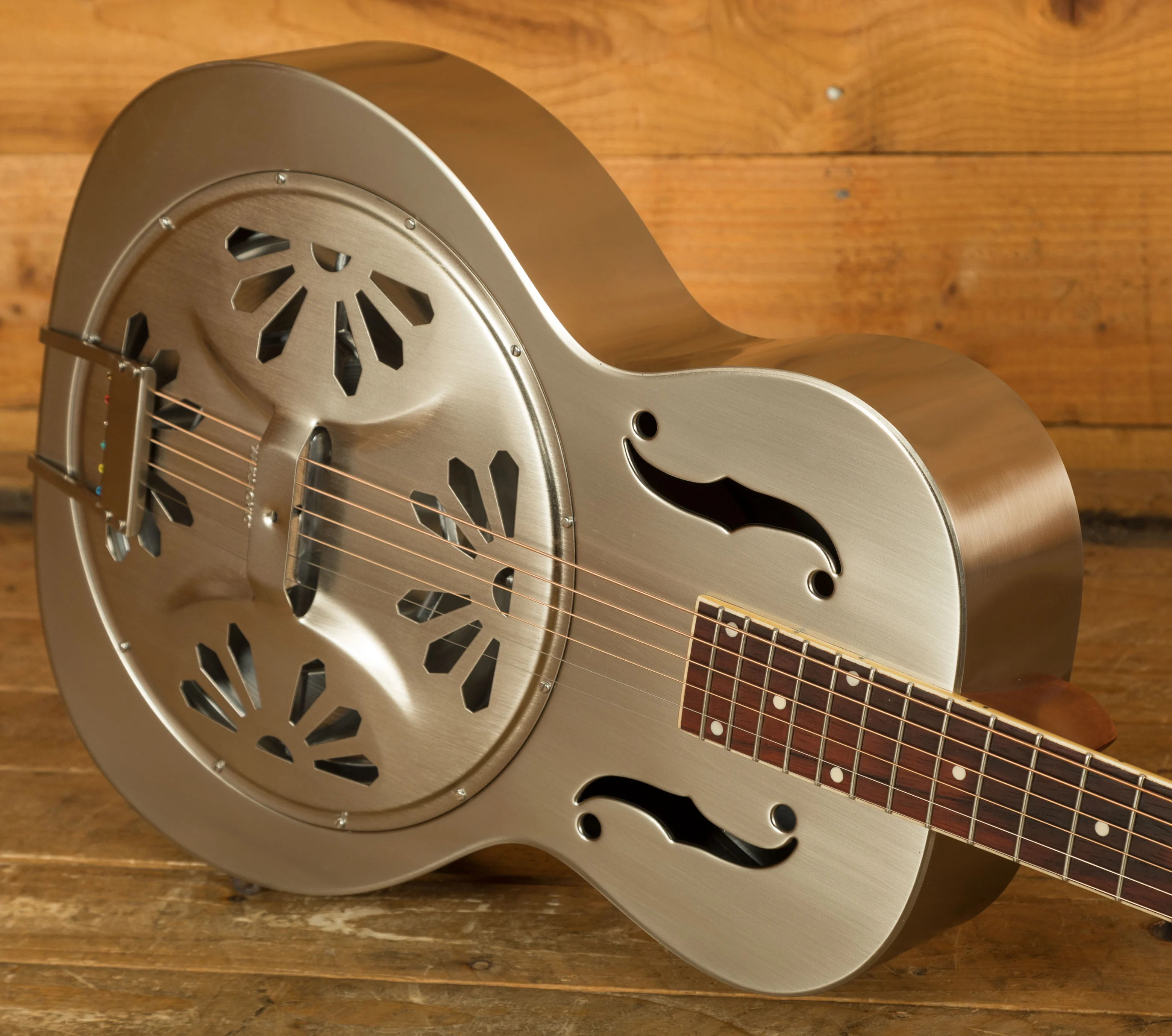 The Mahogany neck features a vintage semi-gloss finish and soft V profile, sturdy underhand and super smooth, this reso is a great option. With a 15.75" radius, 25" scale length, Padauk fingerboard and medium jumbo frets it's the real deal.