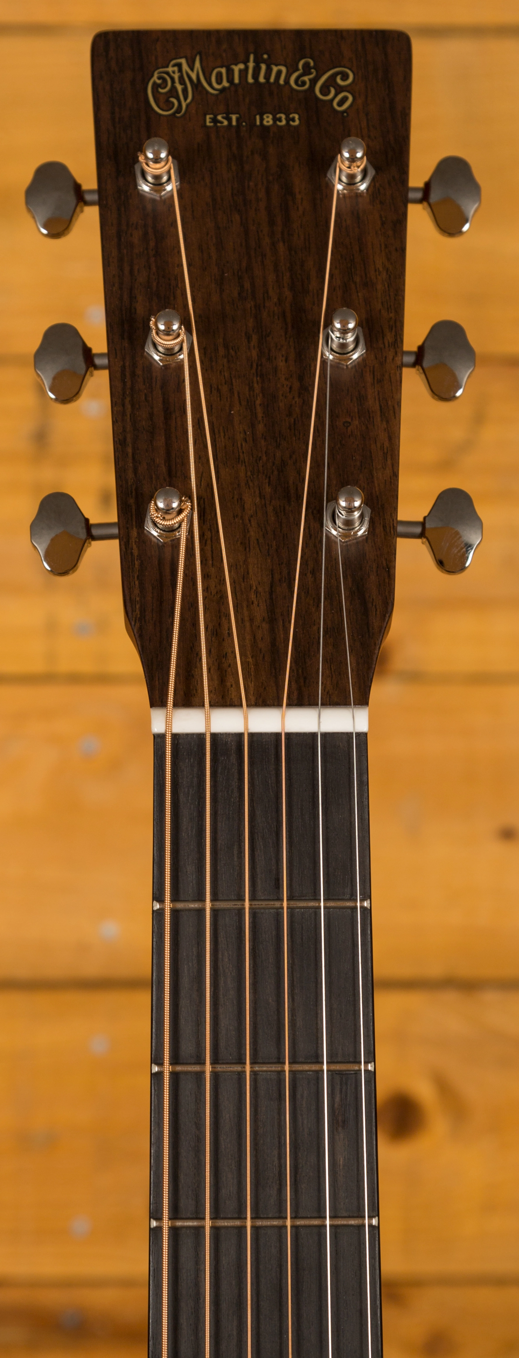 The Sinker Mahogany neck is an absolute dream to play. With a Modified Low Oval neck shape, 25.84" scale length and a 1 3/4" nut width, this Martin is supremely comfortable and smooth underhand. The Black Ebony fingerboard is the perfect partner for this neck; beautifully crafted it's a real treat to play. Sinker Mahogany necks are a bit of a rarity due to the amount of timber required but even the neck block is Sinker on these models.
