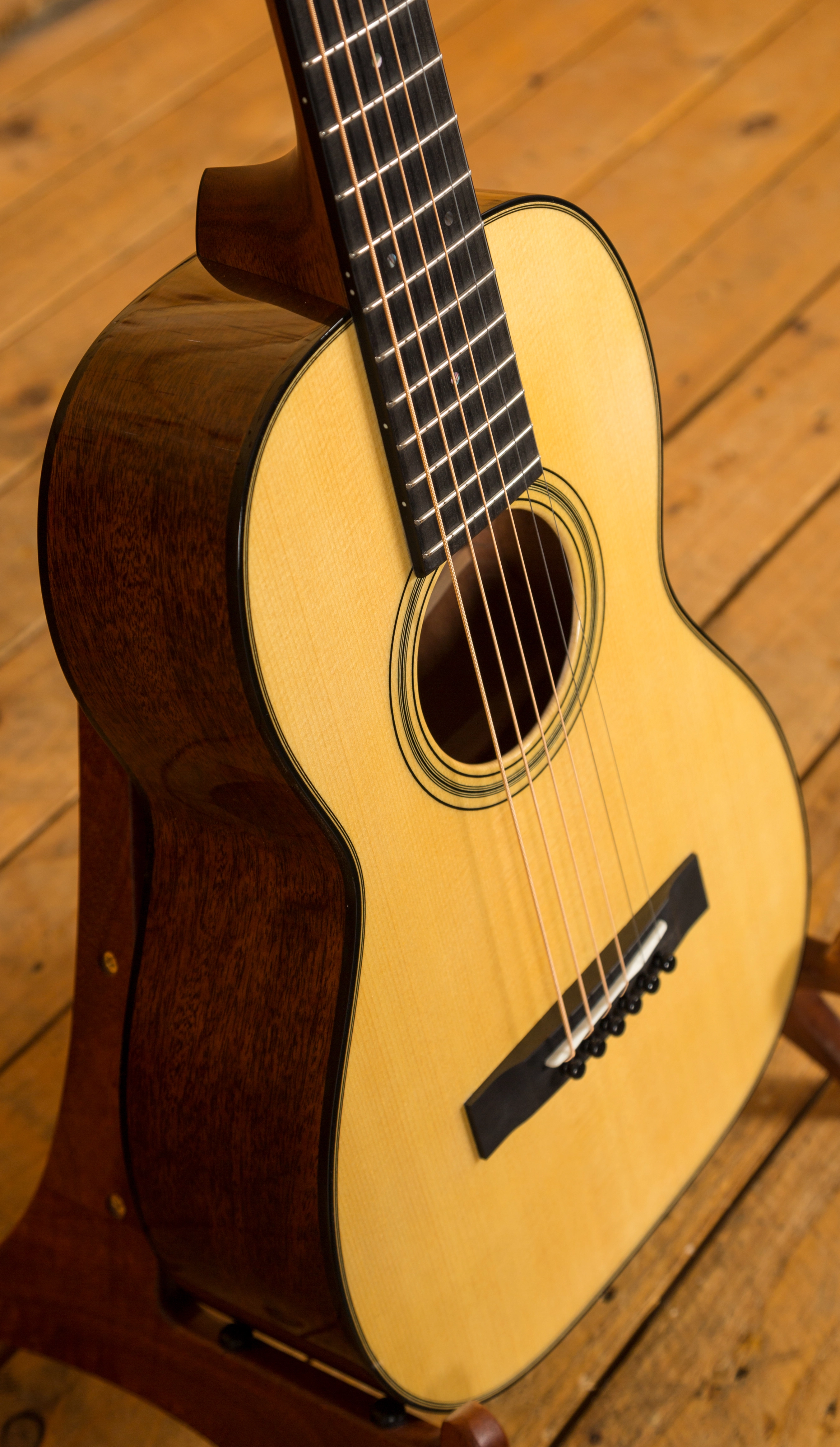 With an incredible Sitka Spruce top, this Size 5 Terz body shape offers a really dynamic and vibrant tone. Sitka responds really nicely to a players touch and offers some real sweet overtones. Pair that with the Sinker Mahogany back and sides and you have a tonal dream team. Tonally, these guitars are as close as you will get to a genuine pre-war Martin, there is no artificial ageing here, this wood is old!