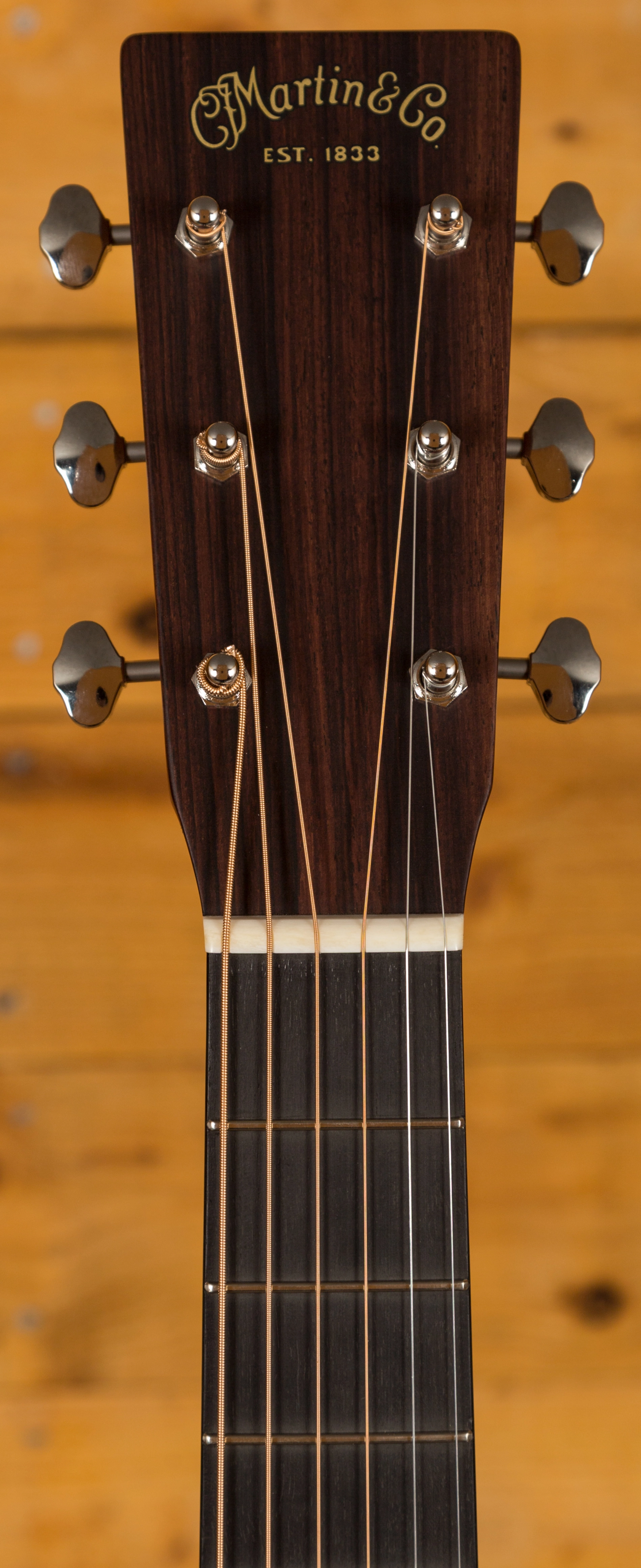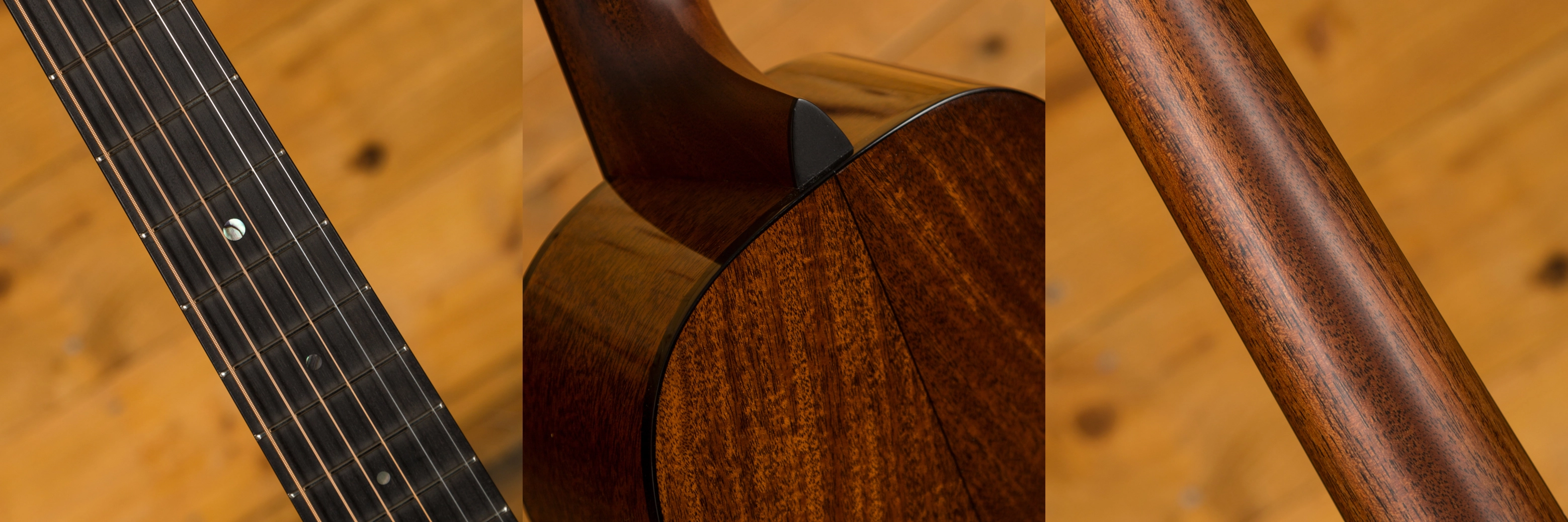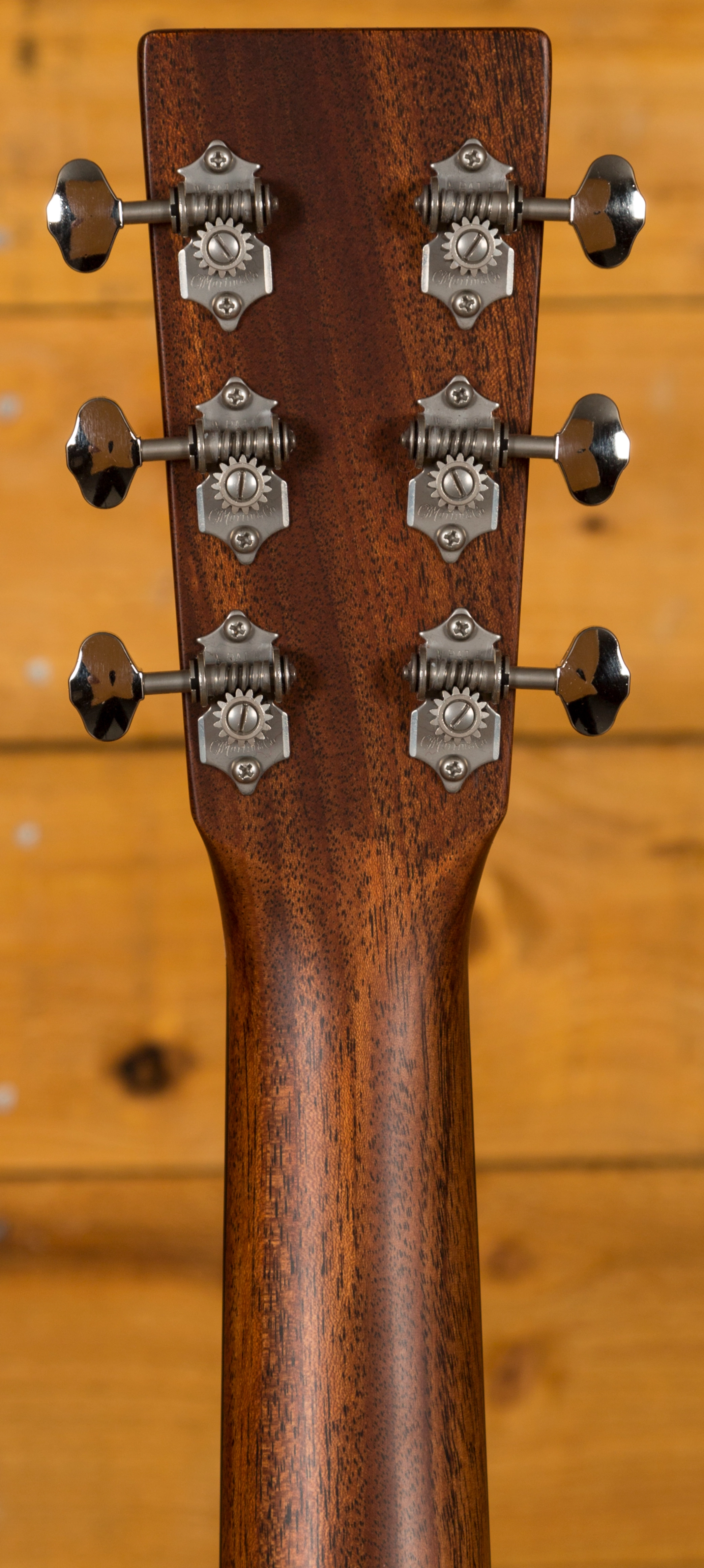 The Sinker Mahogany 12 fret neck is an absolute dream to play. With a Size 5 Modified Low Oval neck shape, 21.38" scale length and a 1 3/4" nut width, this Martin is supremely comfortable and smooth underhand. The Black Ebony fingerboard is the perfect partner for this neck; beautifully crafted it's a real treat to play. Sinker Mahogany necks are a bit of a rarity due to the amount of timber required but even the neck block is Sinker on these models.