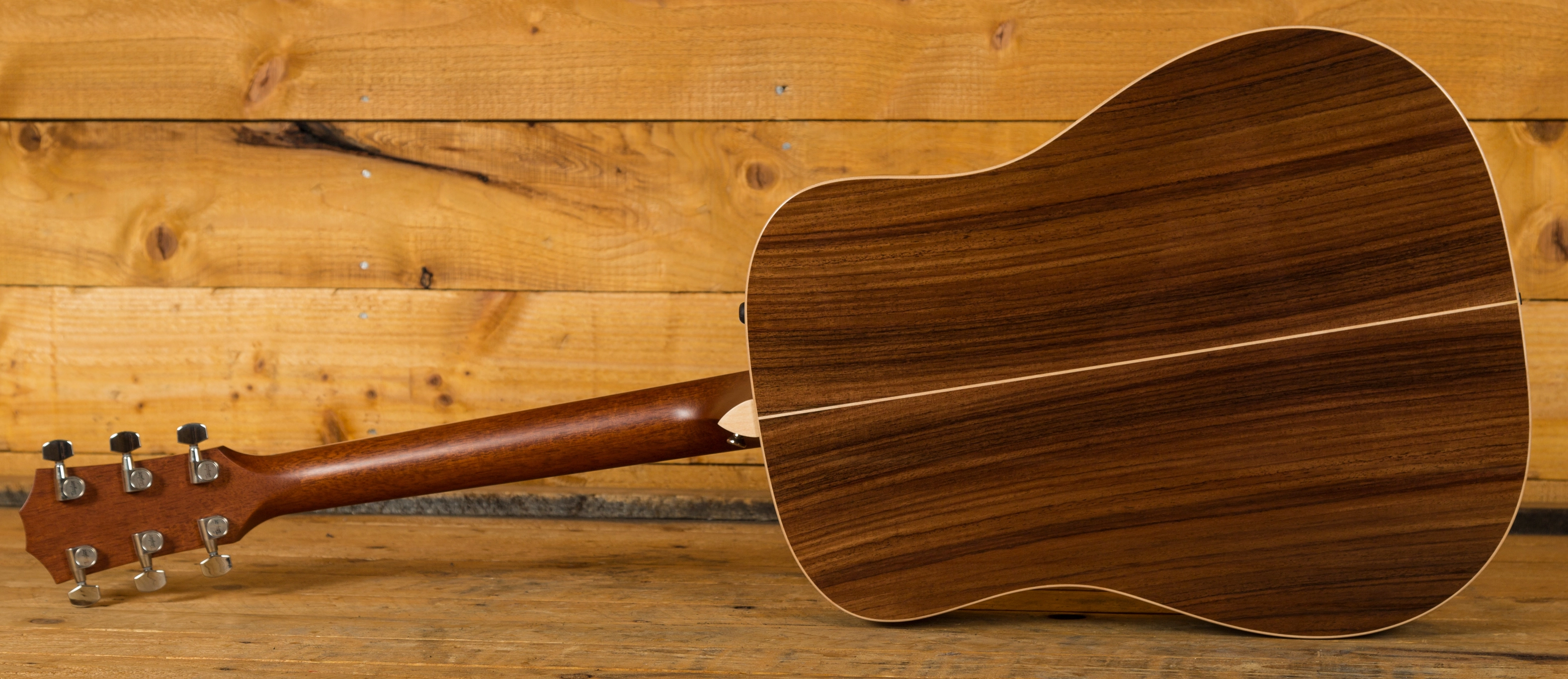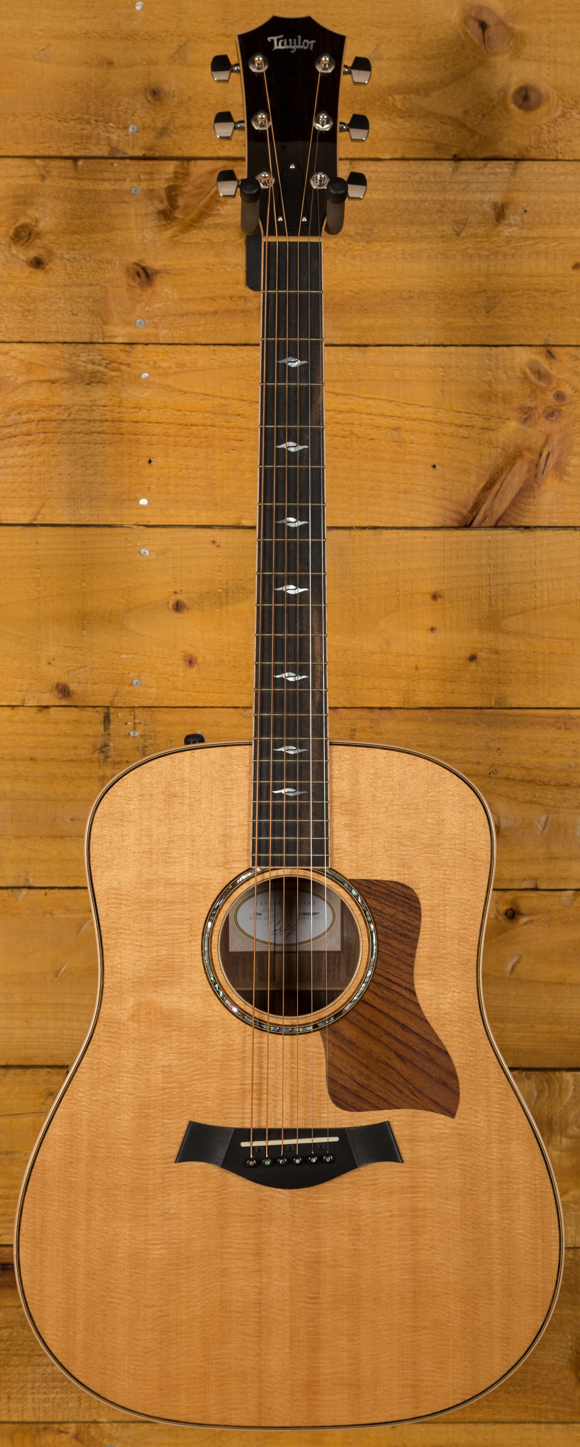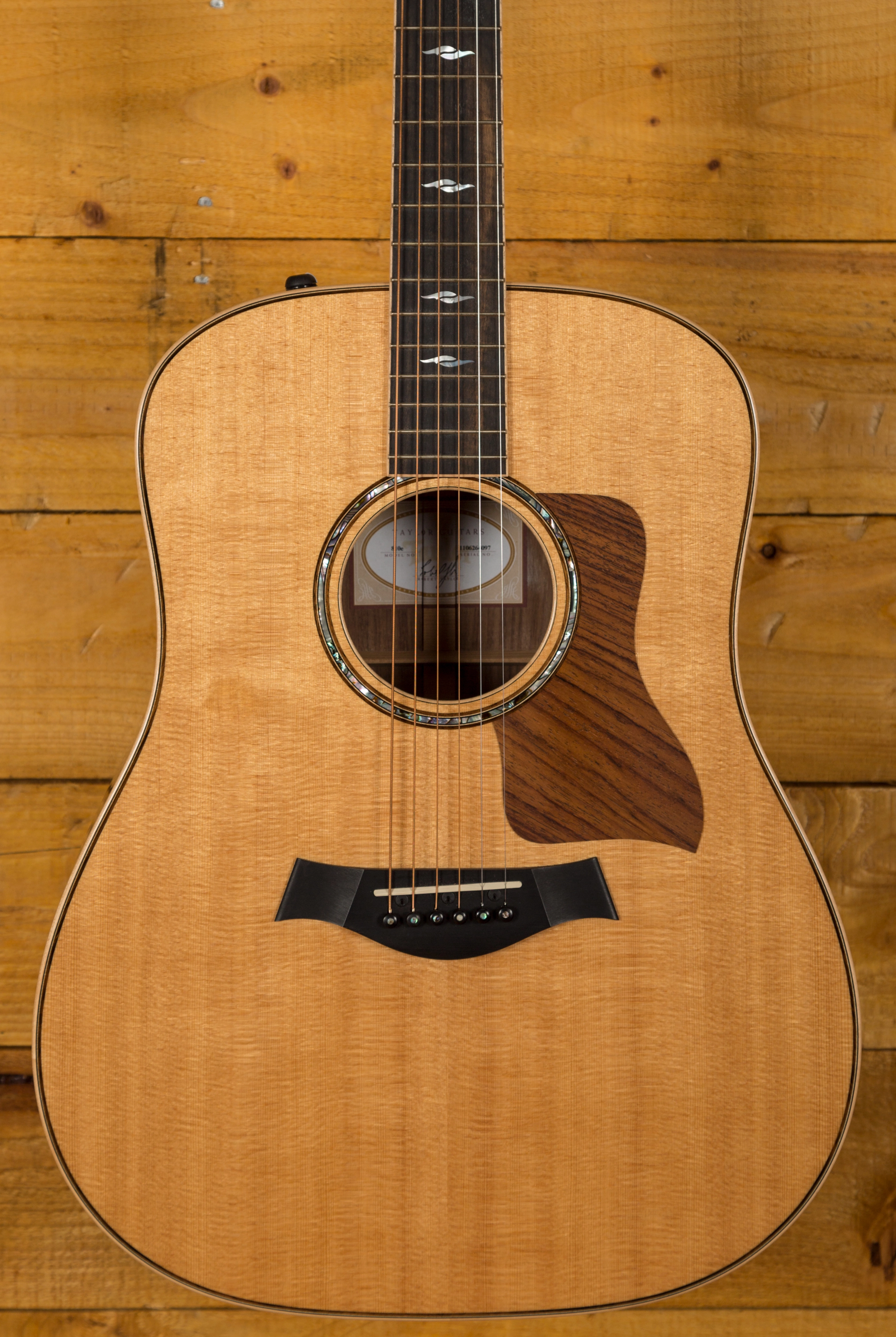 The rosewood/spruce 810e brings Taylor's latest tone-enhancing refinements to the traditional steel-string Dreadnought, blending driving low-end power with a vibrant upper register for a turbo-charged flatpicking machine. Bluegrassers will love the strong, crisp top-end punch in any picking circle, with robust projection across the entire tonal spectrum. Premium appointments include maple binding and back strip, rosewood top edge trim, rosewood pickguard, mother-of-pearl Element fretboard inlay, and smoky ebony fretboard. With Taylor's onboard Expression System 2 pickup, the dynamics of the player will translate loud and clear.