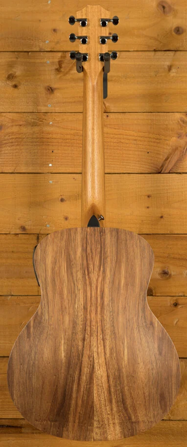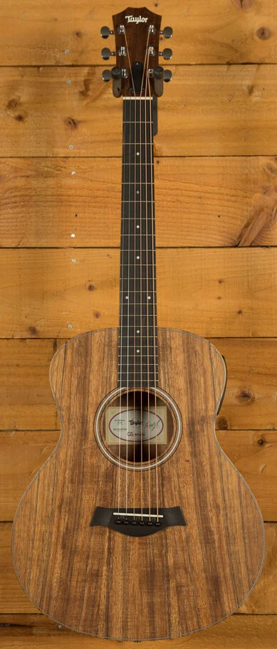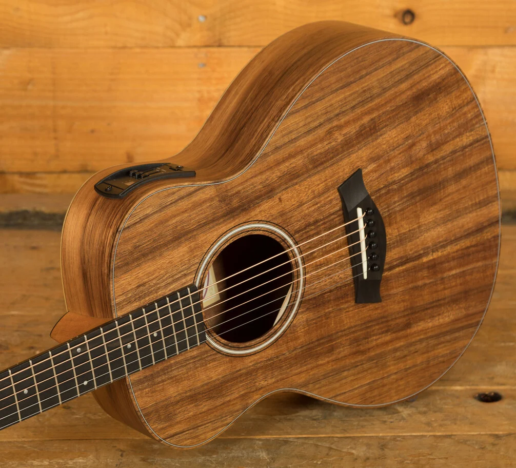 The GS Mini-e Koa brings the vibrant sound and organic beauty of Hawaiian koa to Taylor's ultra-popular reduced-scale acoustic guitar. The GS Mini's compact proportions make it a great choice for players who take their music on the road, and with a solid koa top, this model serves up a rich, bold sound that punches well above its weight for a smaller guitar. The built-in ES-B pickup offers clear, natural amplified tone and includes a digital tuner with an easy-to-read LED display. The GS Mini-e Koa ships with a structured gig bag.