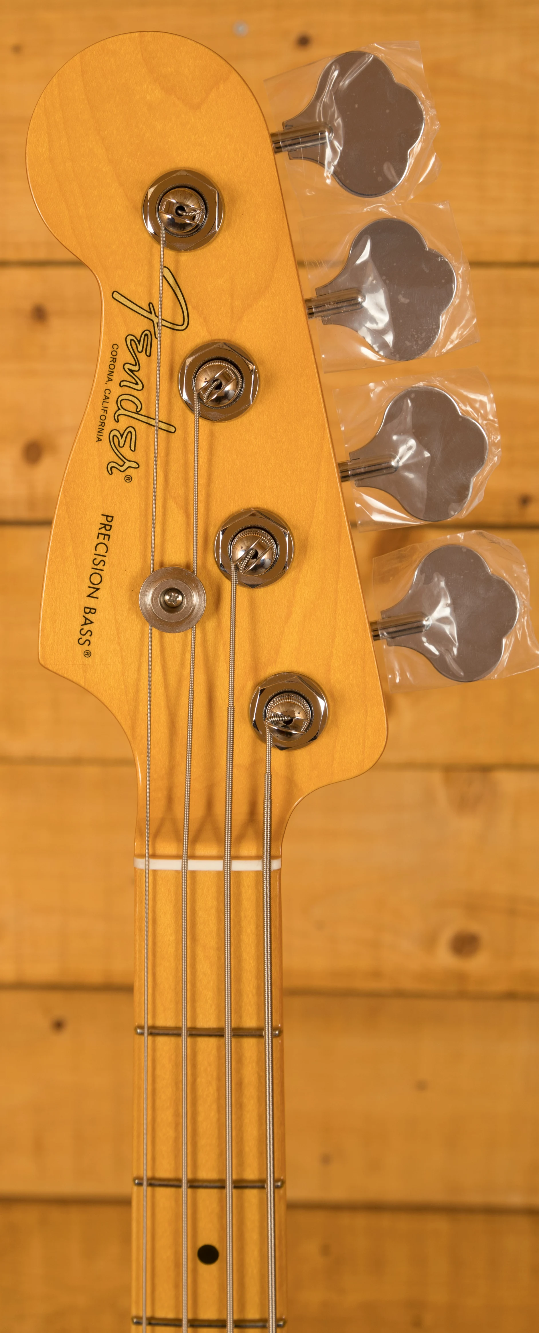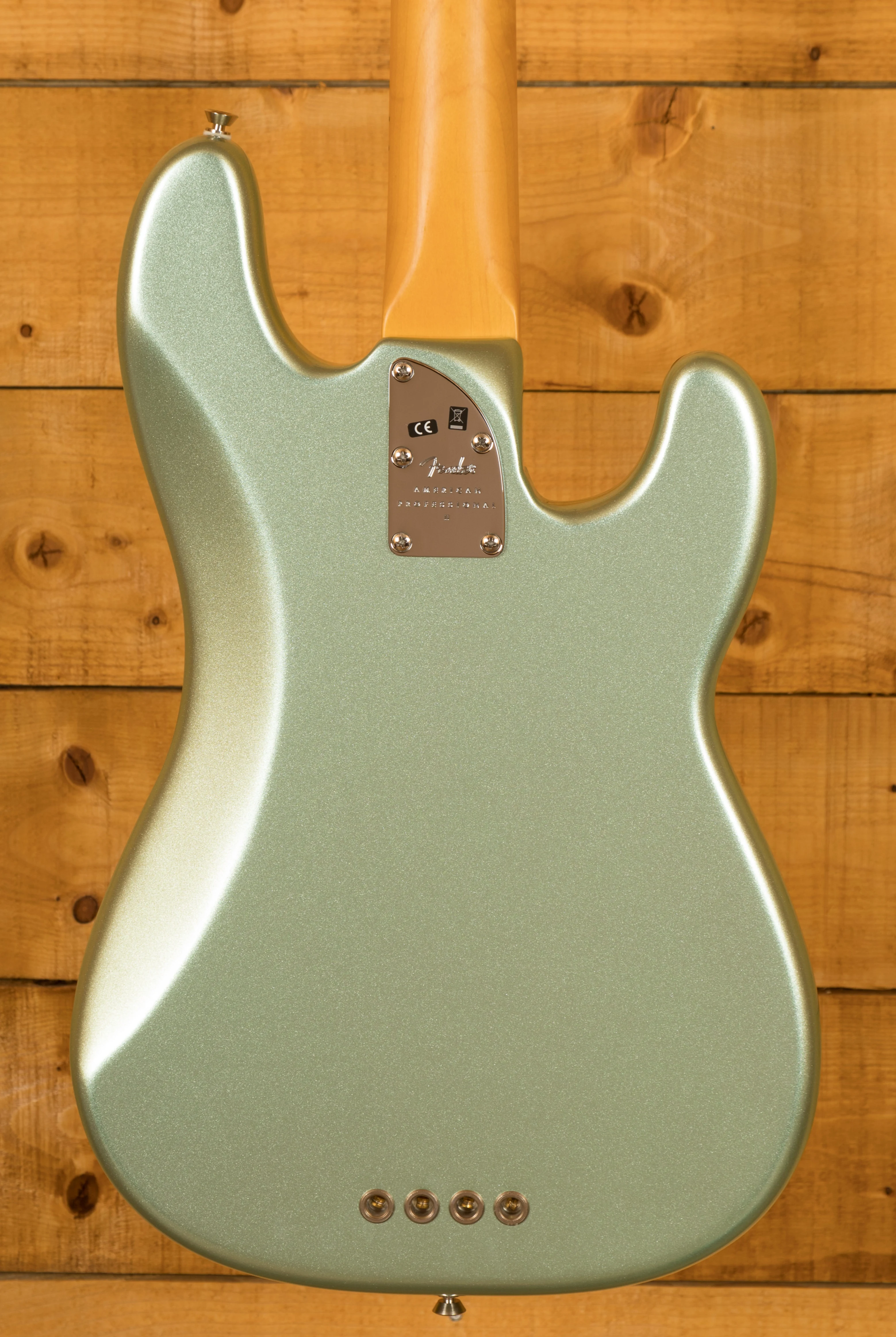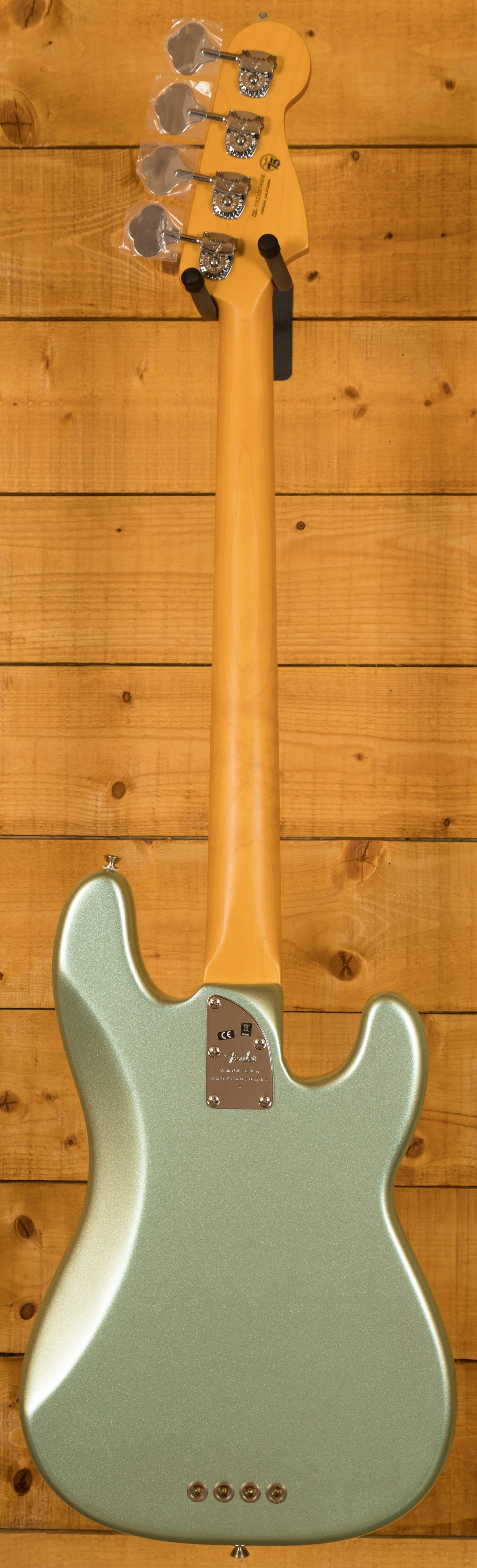 The Alder body is typically comfortable, as all Precision Bass's are, finished in the brilliant Mystic Surf Green option, it looks real slick. The Maple neck and fingerboard feature a '63 profile, designed for speed and comfort; This bass is super easy to navigate, allowing for great access to the upper register. 20 frets, a 9.5" radius and 34" scale length make this Precision Bass feel familiar and supremely comfortable. The Professional II range brings a new contoured neck heel , soft rolled fingerboard edges and a super natural finish for improved feel and comfort