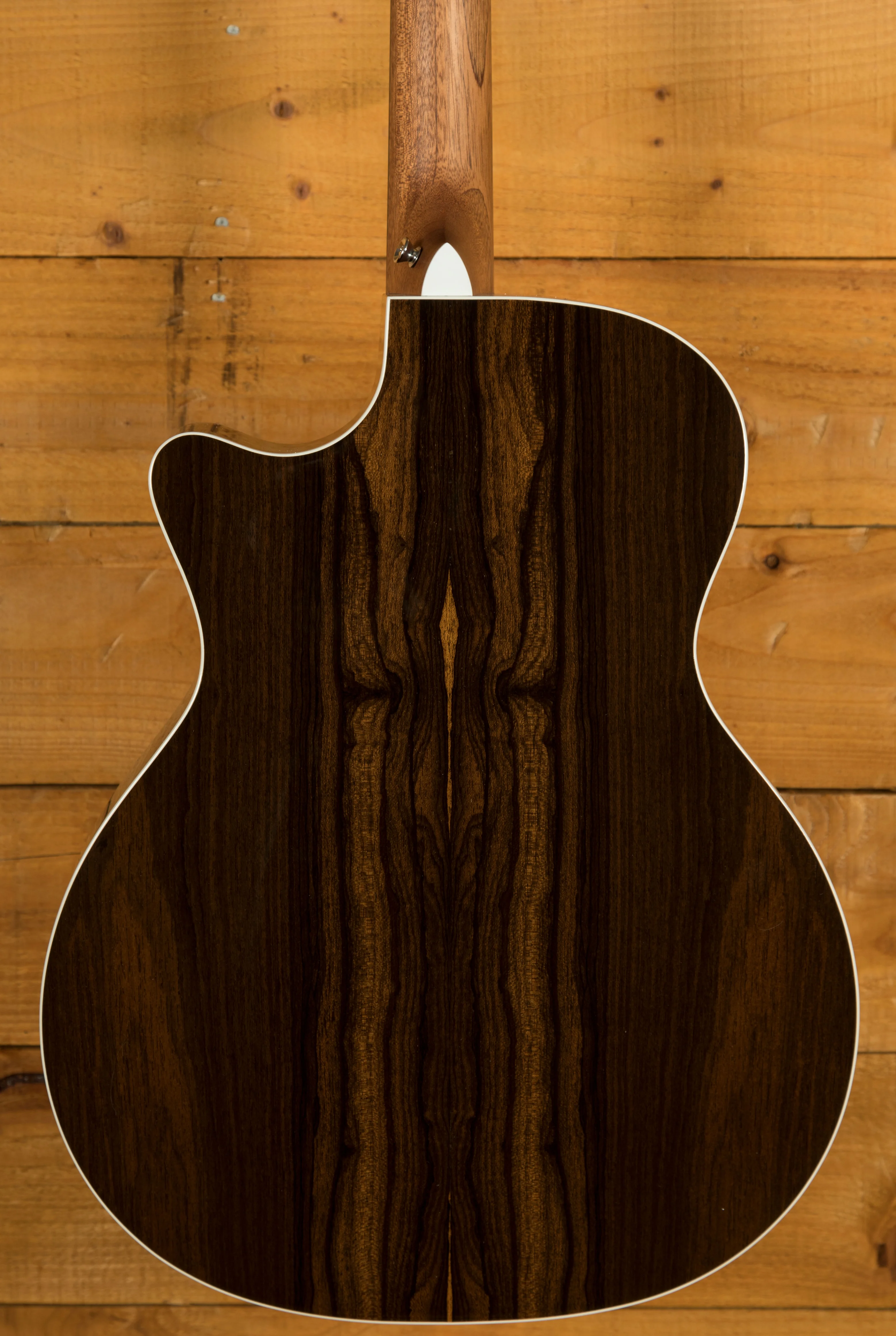 The 14-fret cutaway on this Grand Performance model is striking, but it’s the back and sides that really grab your attention. Constructed with a Fine Ziricote Veneer back & Sides with a lush Sitka Spruce top. This pairing projects extremely well and also with the scalloped X-bracing it has a very loud volume. It is super sweet sounding and cuts through extremely well.