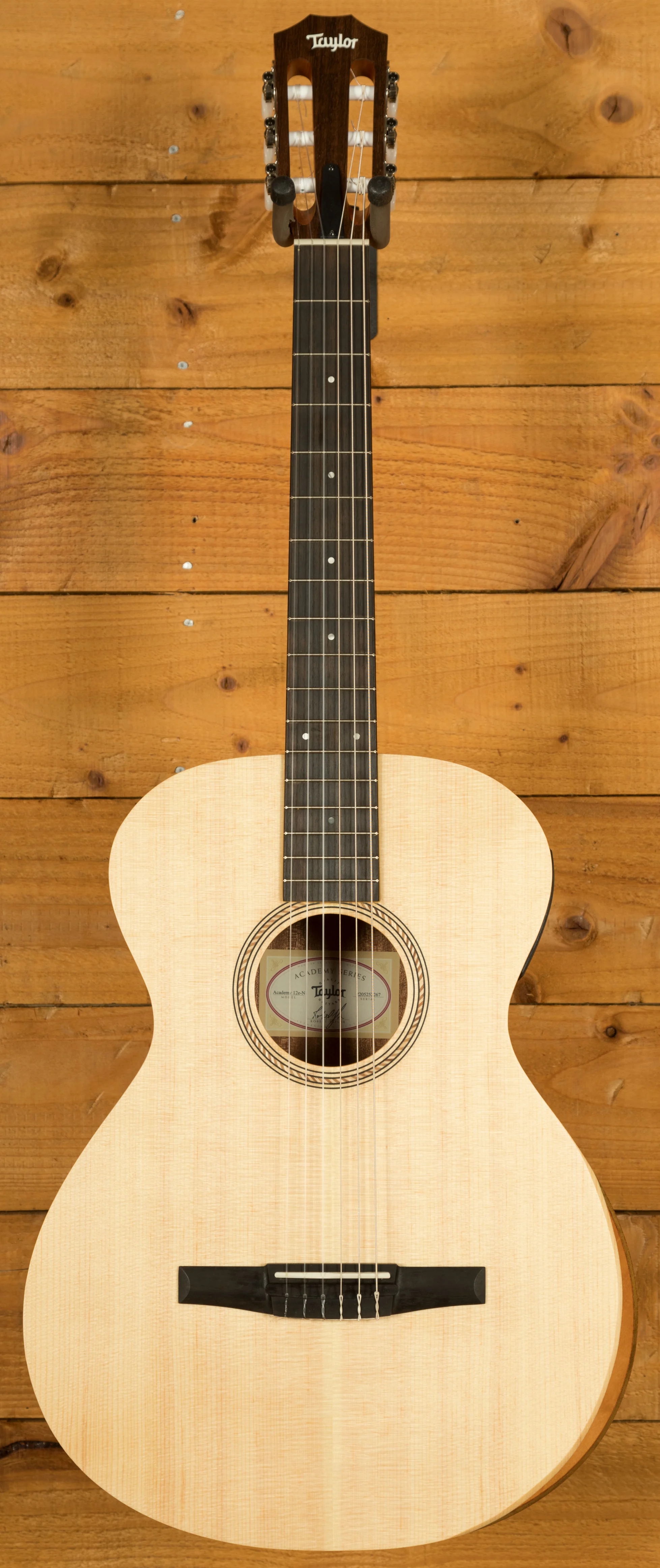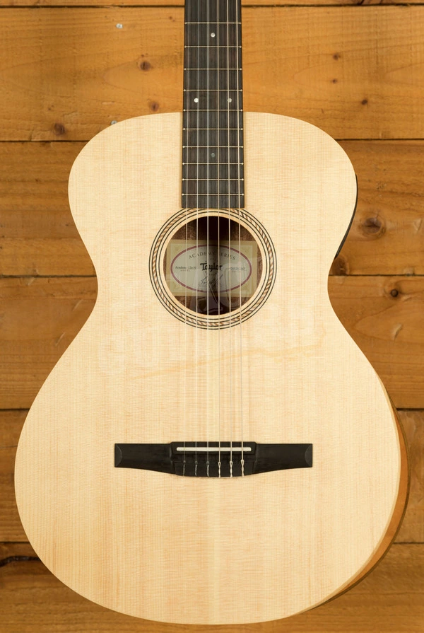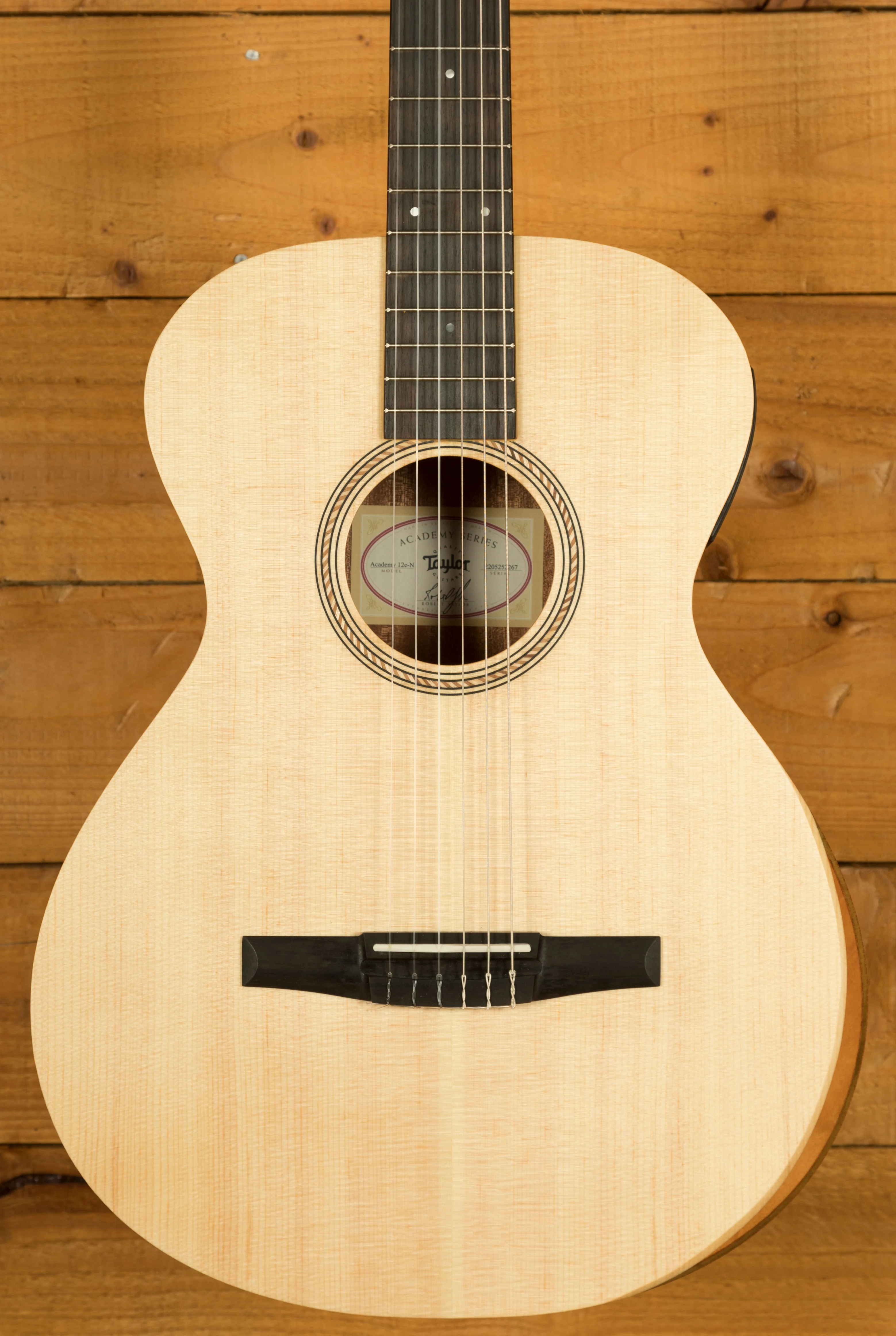 Designed to offer a comfortable, affordable option for players seeking the nylon-string sound with player-friendly appointments, the Academy 12e-N serves up snappy classical tone with a feel that's perfect for new learners and experienced players alike. Built with a solid spruce top for optimal projection, clarity and resonance, this compact Grand Concert acoustic-electric features radiused fretboard and a 1-7/8" nut width that provides ample string spacing for fingerstyle play without putting undue strain on your fretting hand. And with built-in ES-N electronics and a lightweight gig bag for protection, the Academy 12e-N has everything a budding player could need.