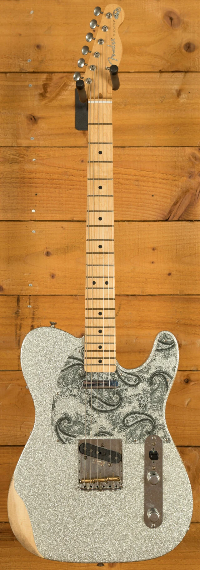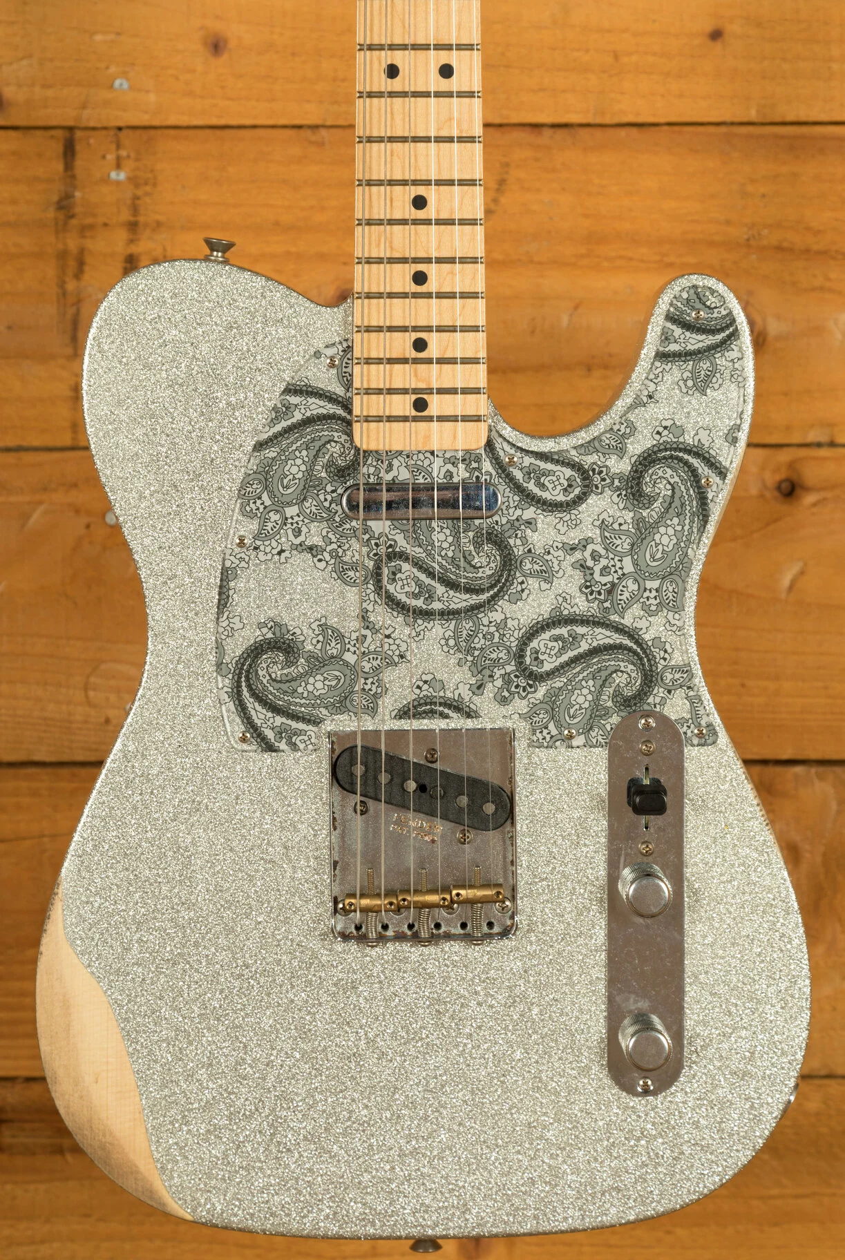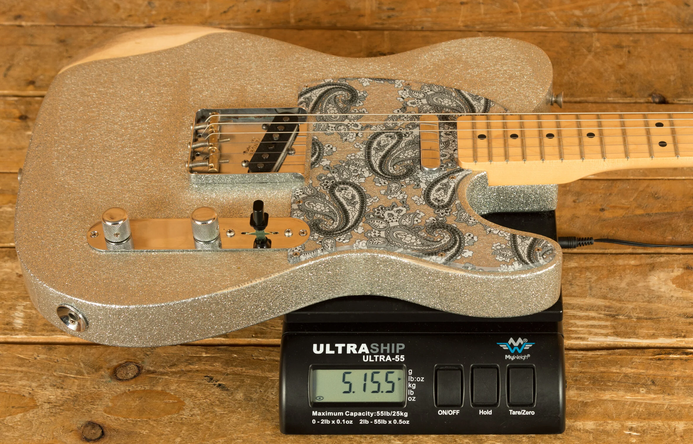 Inspired by Paisley's favourite '63 Tele, a guitar that Paisley toured extensively and had refinished in the same majestic Silver Sparkle, the Road Worn Brad Paisley finish has been designed to give the guitar the same natural feel of worn in nitro lacquer. Not only does this feel super comfortable but it allows the wood to breathe and resonate freely, delivering knock out tone every time you hit the stage.