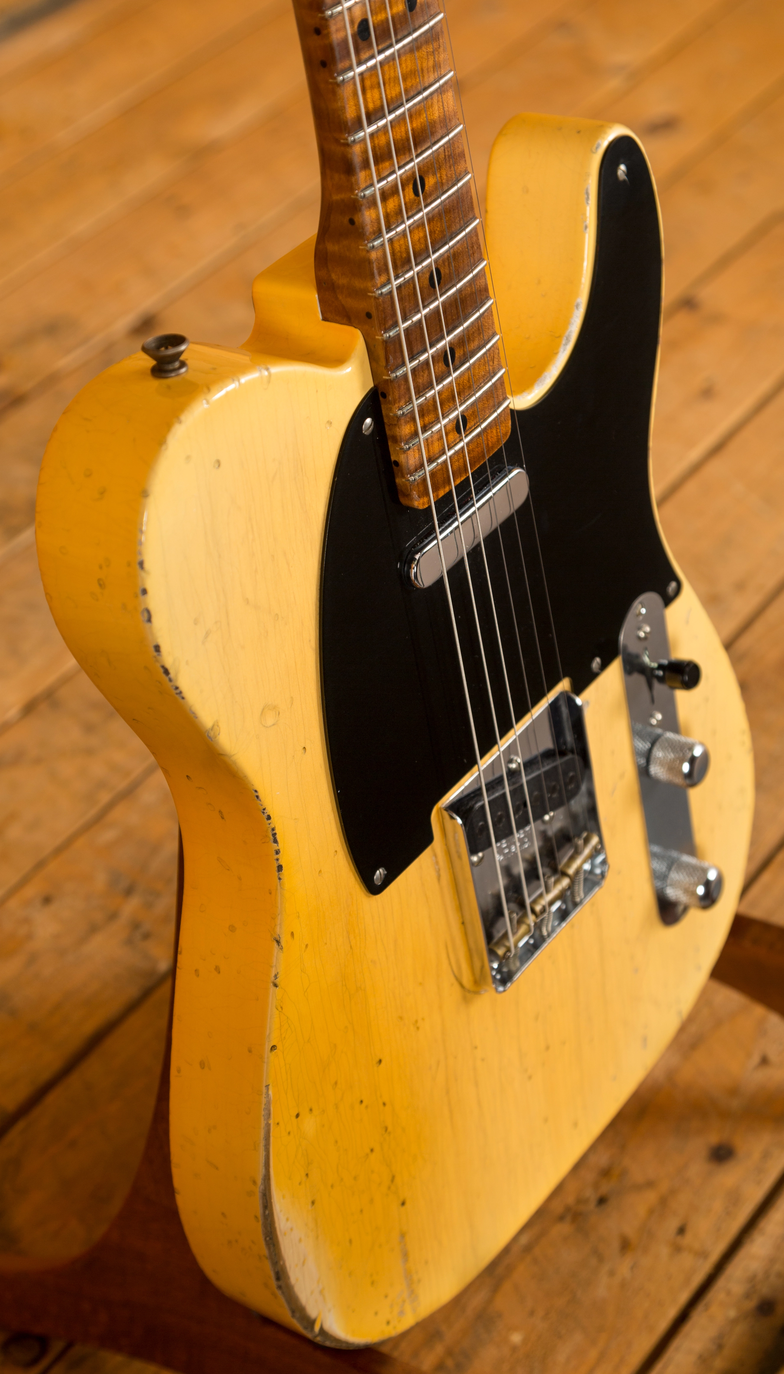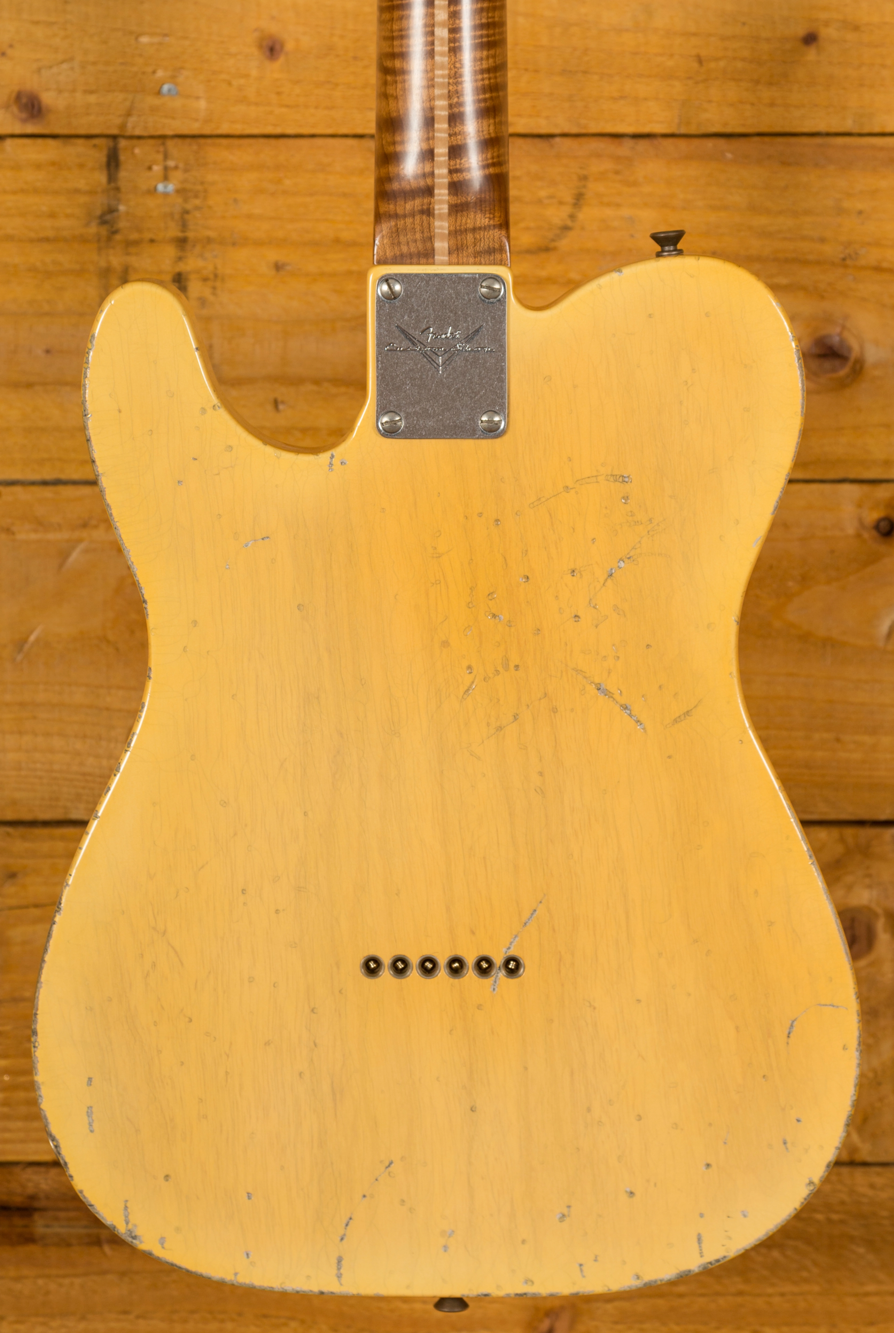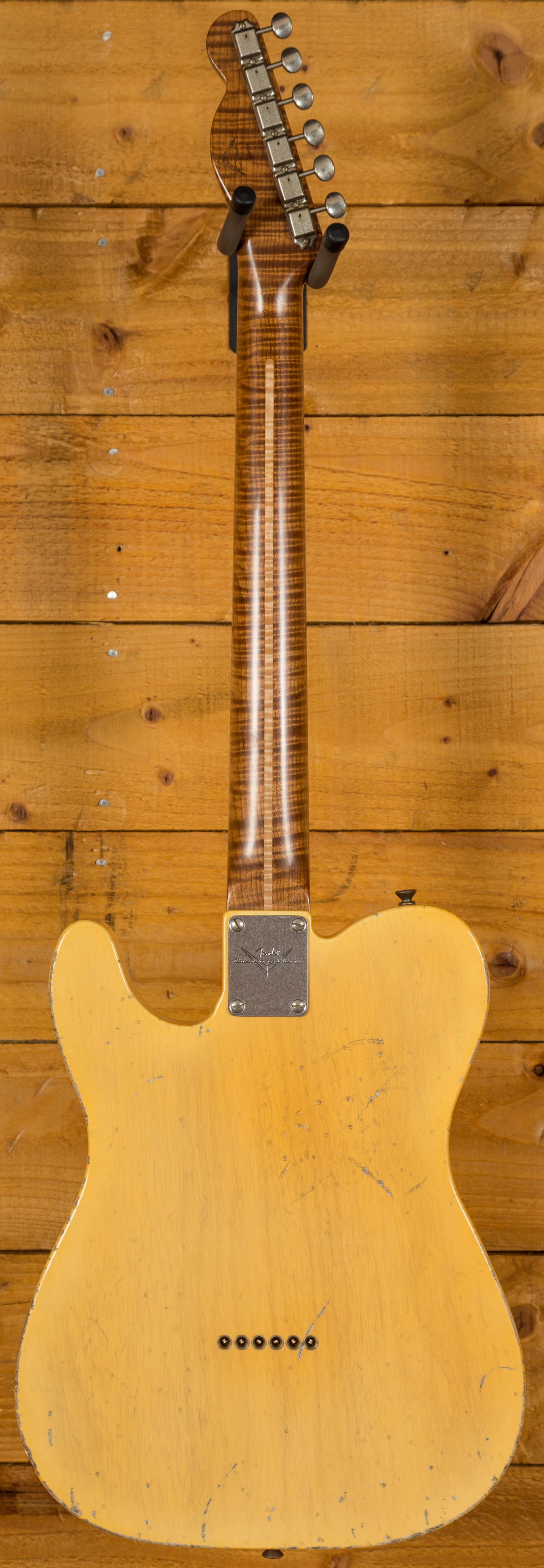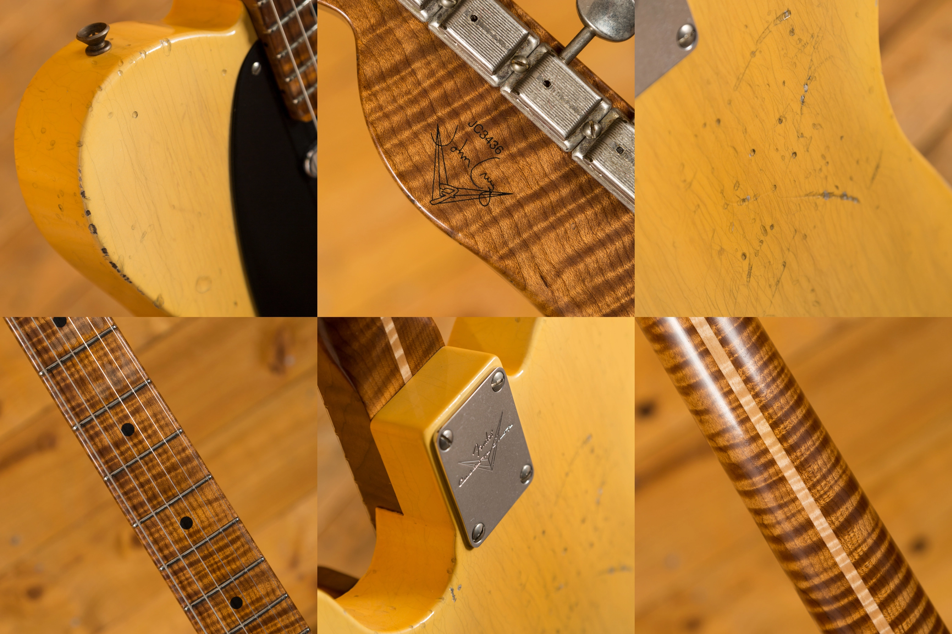 The Ash body is finished in a really authentically aged Nocaster Blonde. This finish will wear beautifully with time and develop its own character even further, it also allows the natural resonance of the body to sing and sustain much more effectively. The wear patterns are incredible, so genuine and authentic, John Cruz is definitely one of the strongest artisans when it comes to relic work at the Custom Shop and it's definitely on display here!