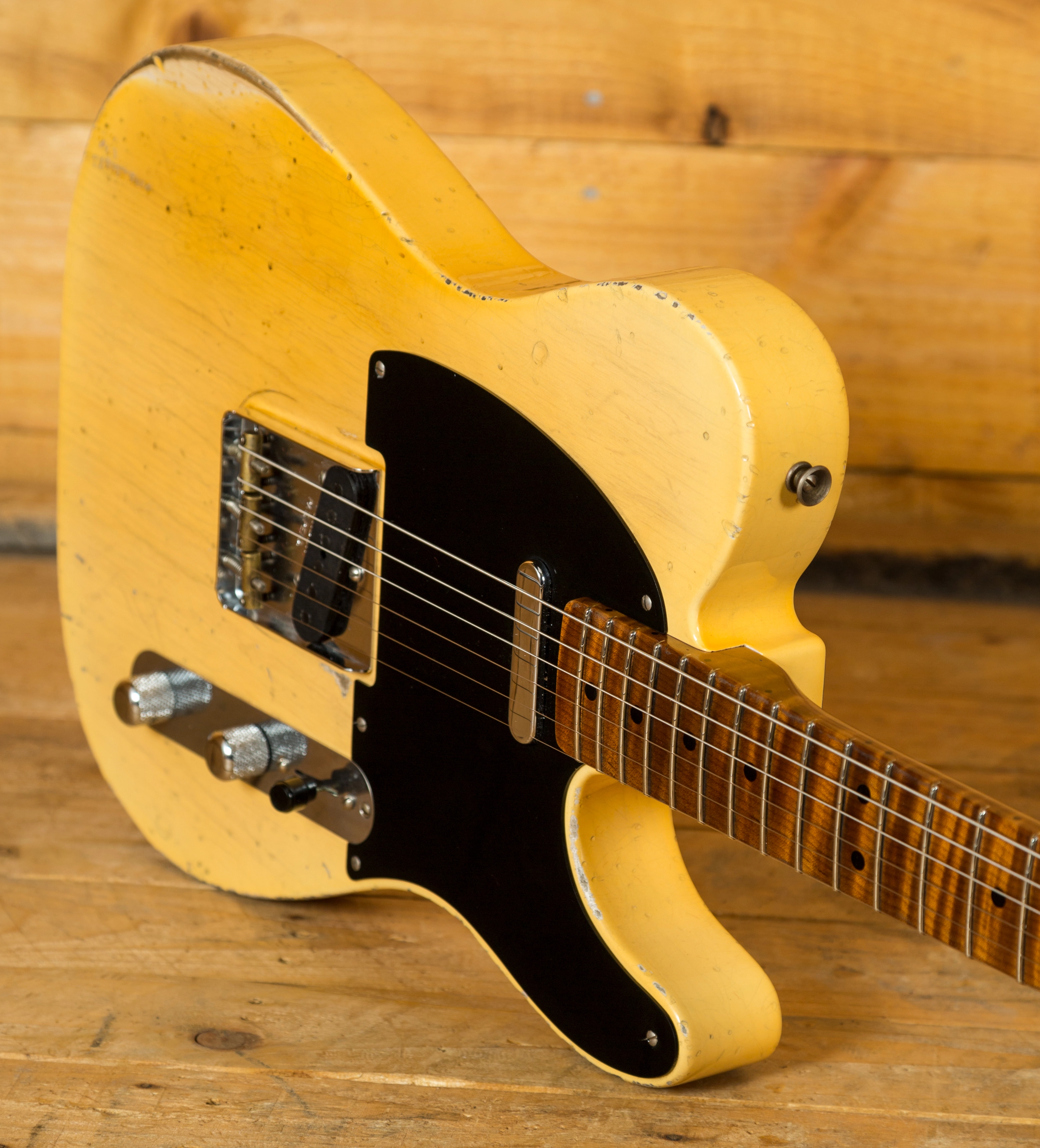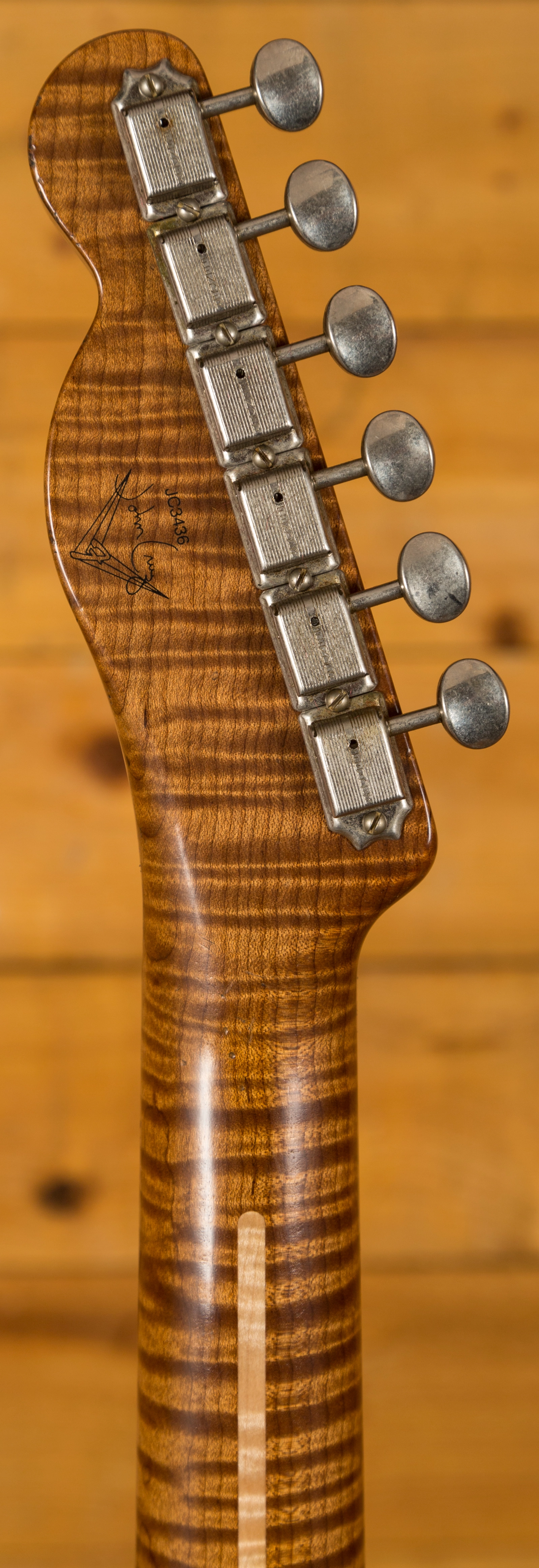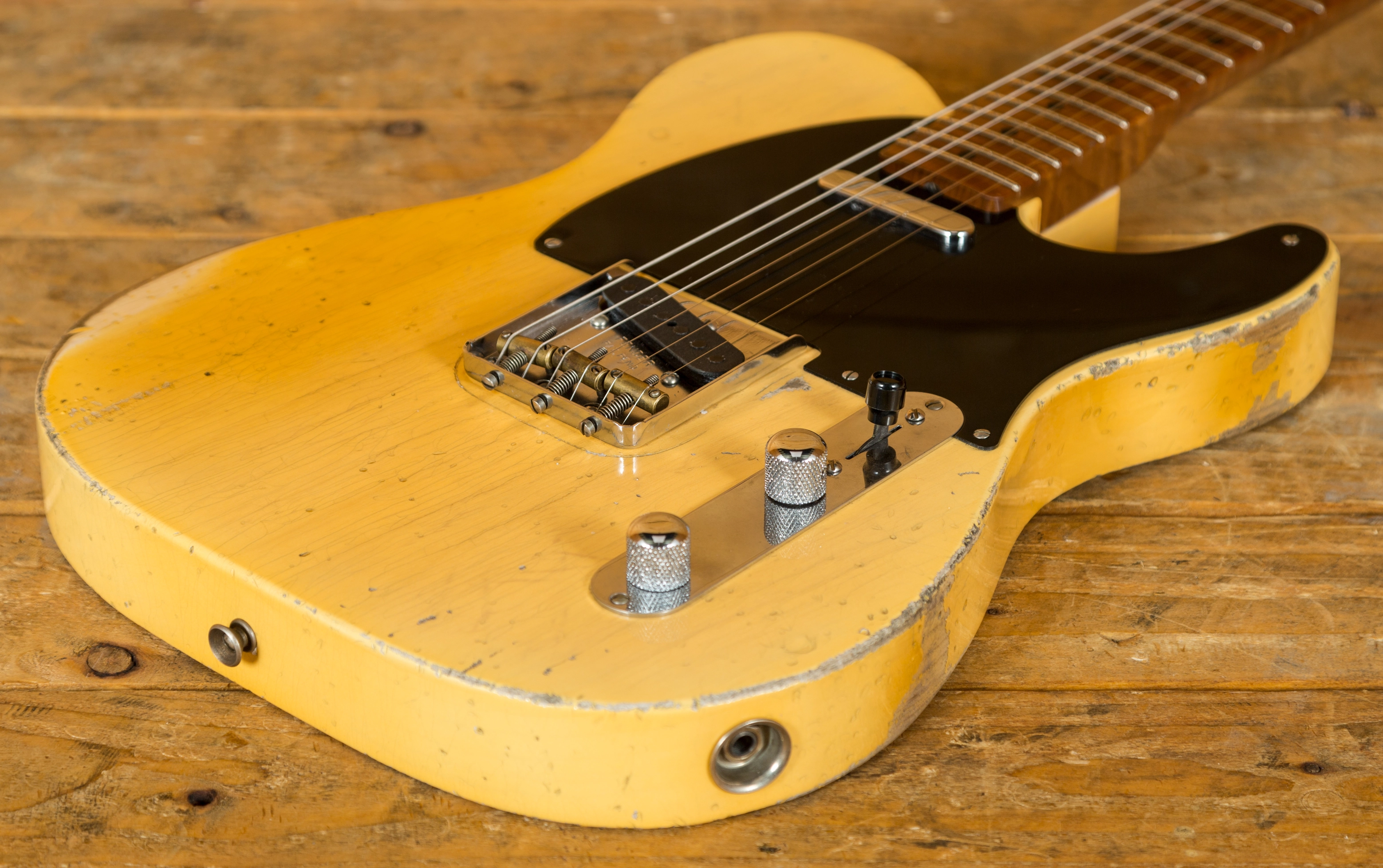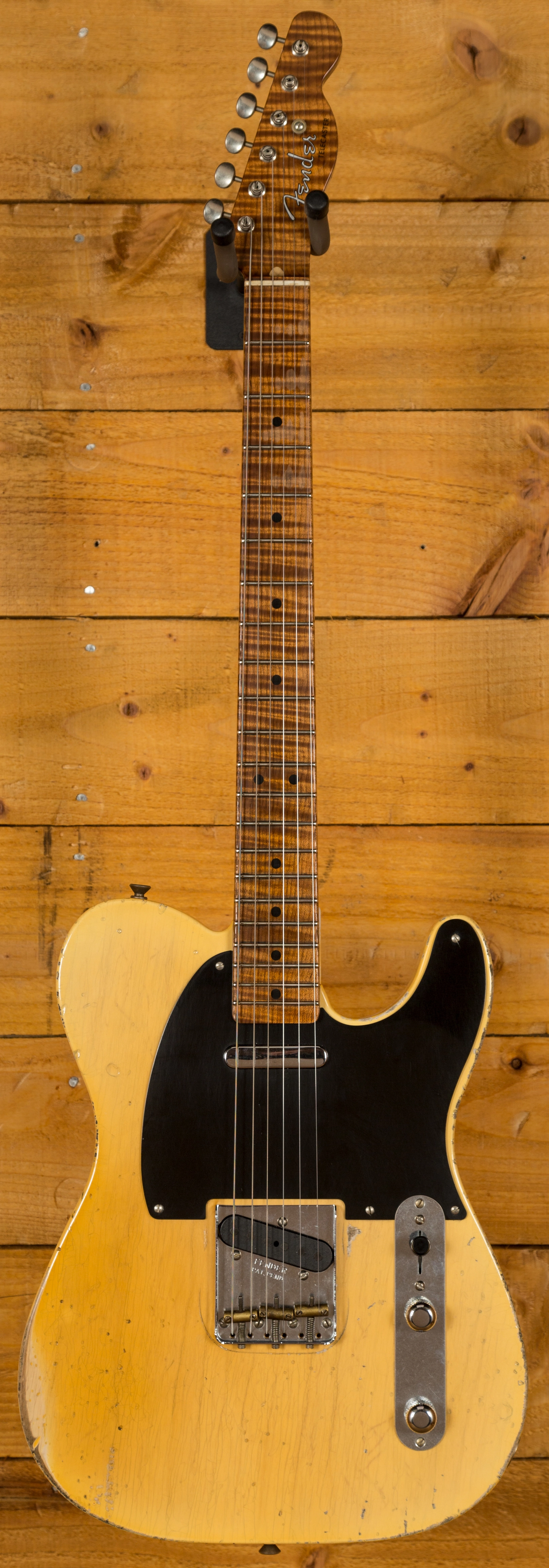 The Ash body is finished in a really authentically aged Nocaster Blonde. This finish will wear beautifully with time and develop its own character even further, it also allows the natural resonance of the body to sing and sustain much more effectively. The wear patterns are incredible, so genuine and authentic, John Cruz is definitely one of the strongest artisans when it comes to relic work at the Custom Shop and it's definitely on display here!
