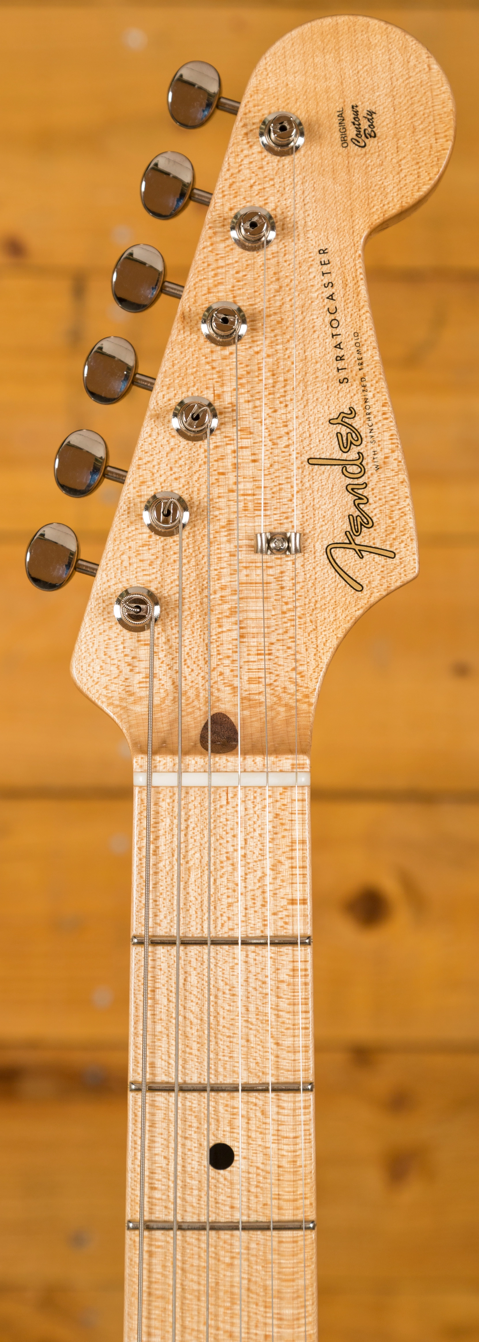 Loaded with a trio of handwound '50s Strat single coils, you get a broad variation of tones. From clean sparkle to a raunchy growl, this guitar really is a players dream. These pickups were handwound by Fender pickup master Josefina Campos, Josefina was apprentice to Fender legend Abigail Ybarra and knows all the secrets to unlock the tonal potential of any guitar.