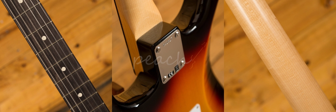 The lightweight Alder body is finished in a Vibrant 3-Tone Sunburst nitro lacquer, period correct, this finish will wear beautifully with time and develop its own character even further. It also allows the natural resonance of the body to sing and sustain much more effectively compared with other finishes. The NOS finish gives the appearance of a New Old Stock guitar, one that has been perfectly preserved since 1961 and doesn't feature any kind of ageing or relic work.