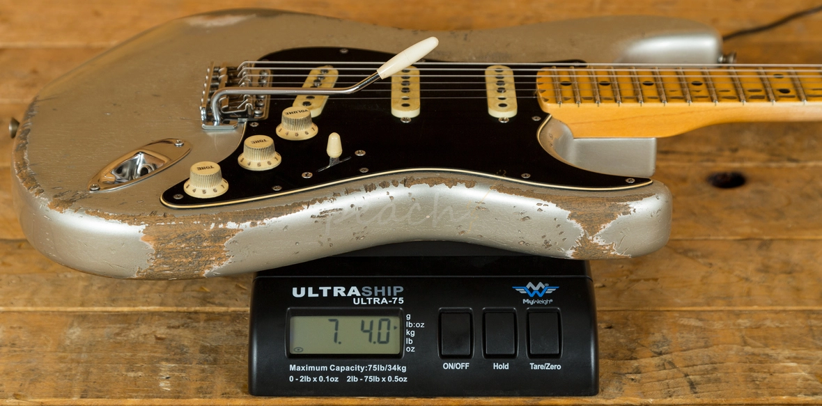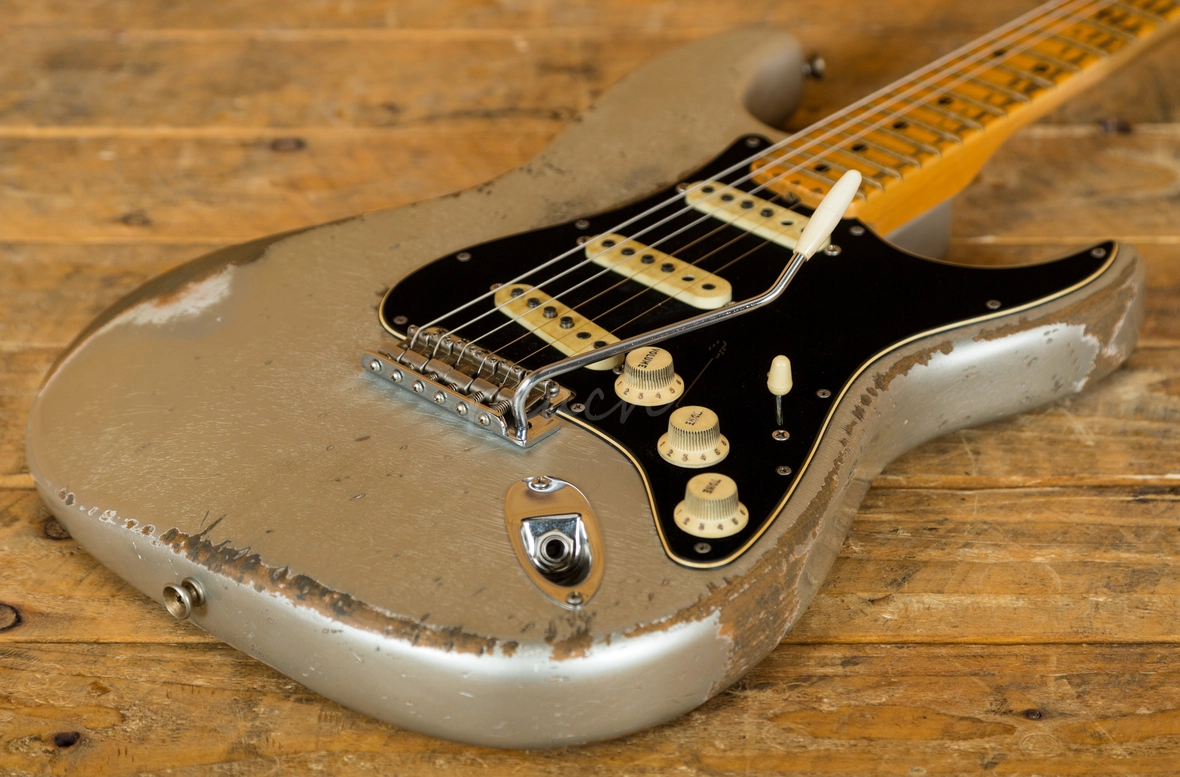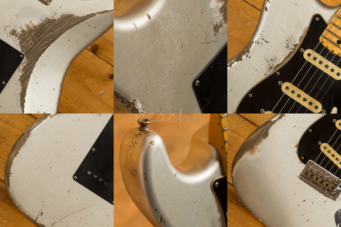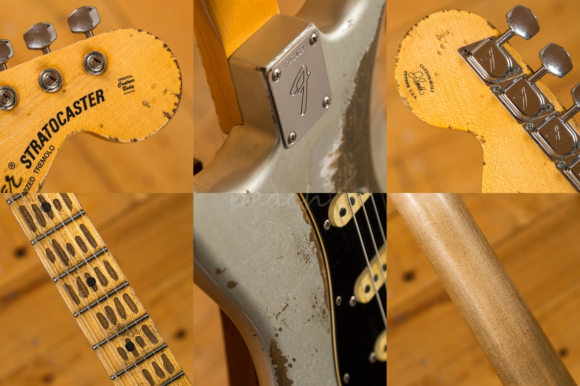 With a two-piece Alder body this guitar is super resonant and has a really bold tone. The heavy relic Inca Silver finish gives the appearance of a well-loved and gigged guitar, it's totally authentic and really cool. The level of attention to detail that has been applied to this guitar is simply out of this world!