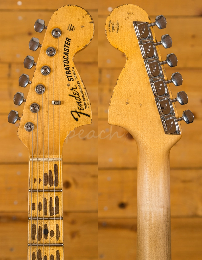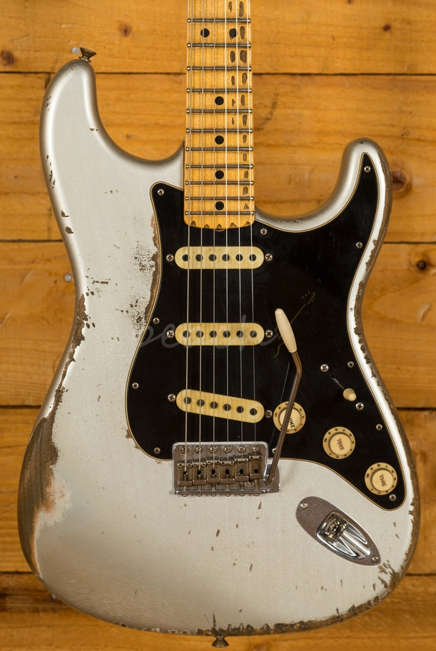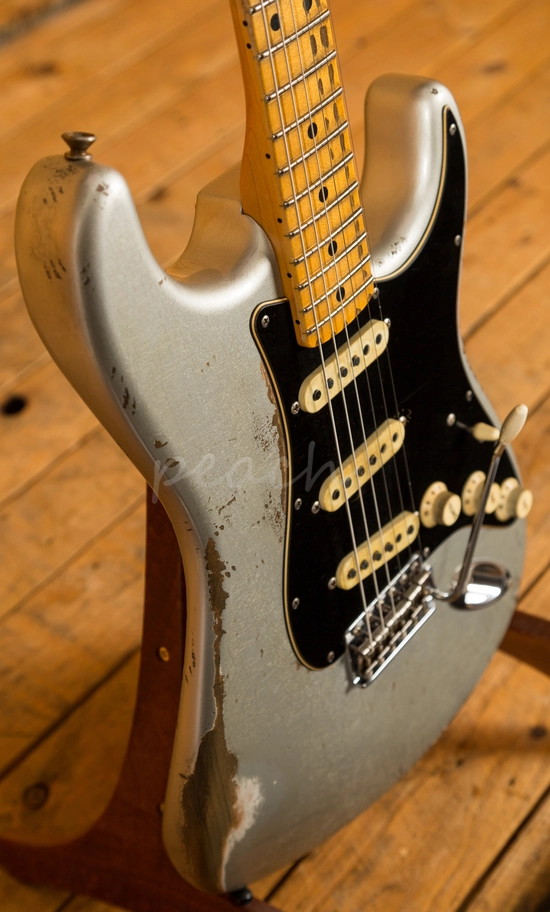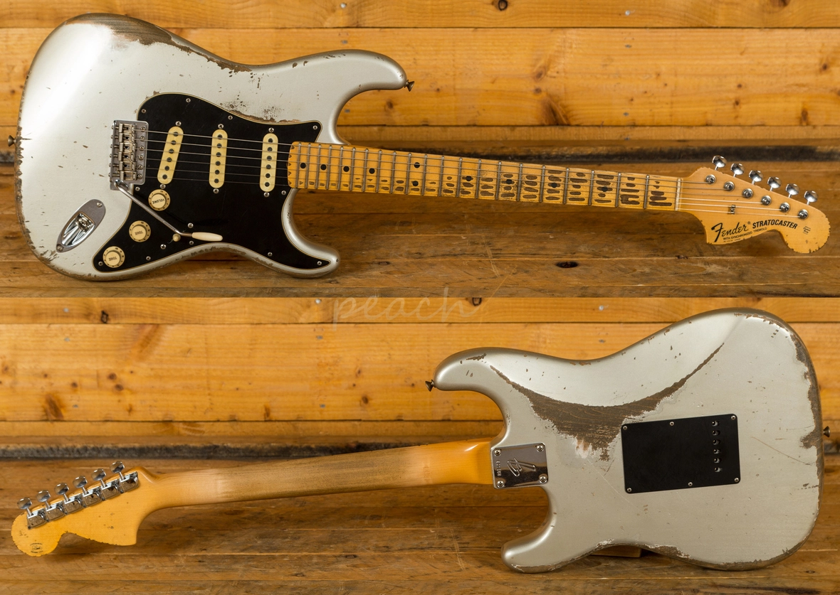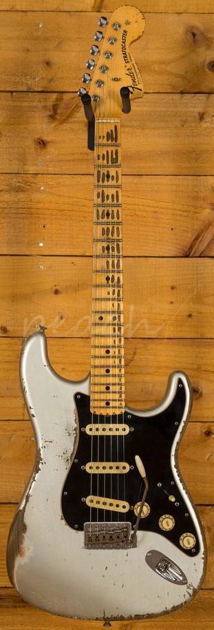 With a two-piece Alder body this guitar is super resonant and has a really bold tone. The heavy relic Inca Silver finish gives the appearance of a well-loved and gigged guitar, it's totally authentic and really cool. The level of attention to detail that has been applied to this guitar is simply out of this world!