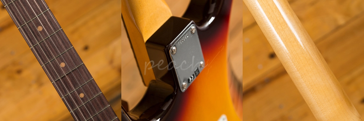The 1-piece tinted rift sawn Maple neck features a 7.25"-9.5" radius for a superb playing action without any choking. The 1959 C profile and 21 medium vintage frets offers a really comfortable playing experience, while the AAA grade Rosewood neck is a real highlight of this guitar and features vintage clay dot inlays.
