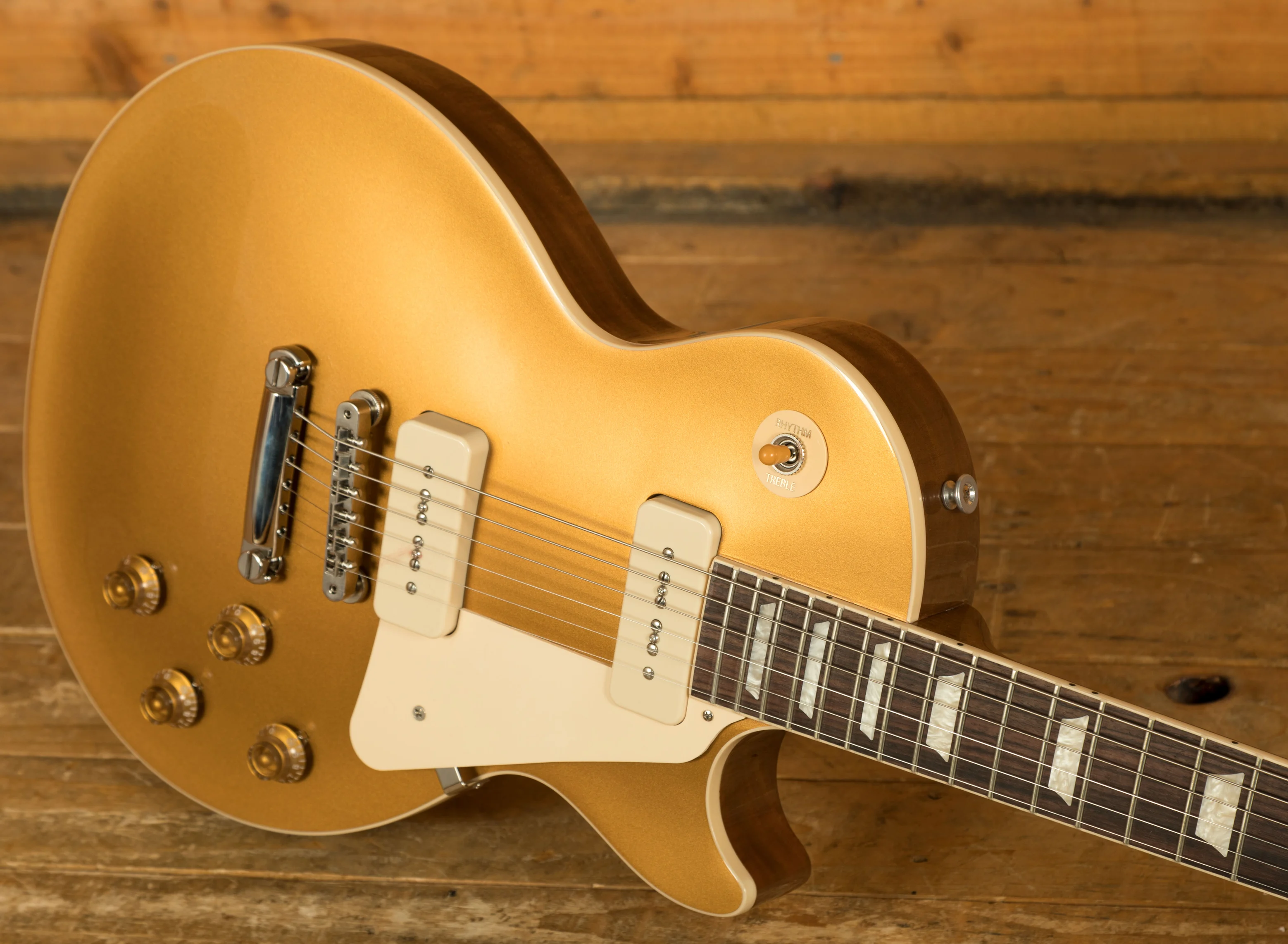 Classic Gibson tones come courtesy of a pair of Gibson P90s. With a really unique sonic character it is versatile, dynamic and offers crystal clear note definition, equipped with Alnico V magnets and orange drop capacitors, this is true vintage tonality!