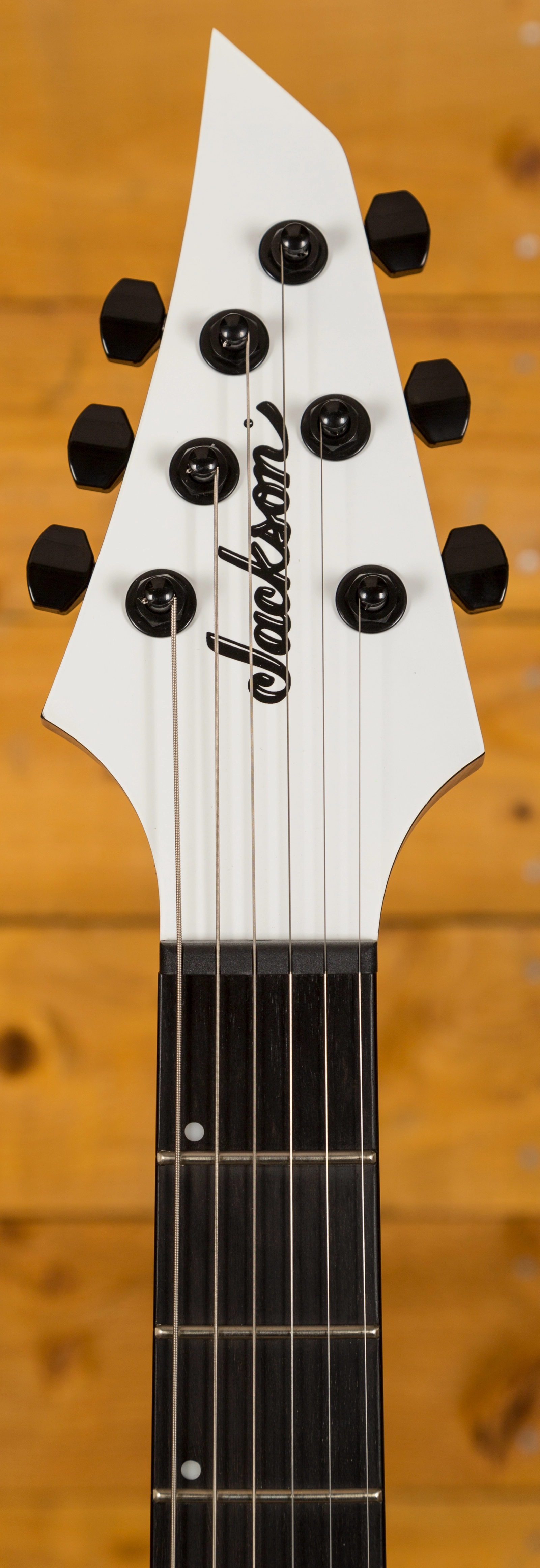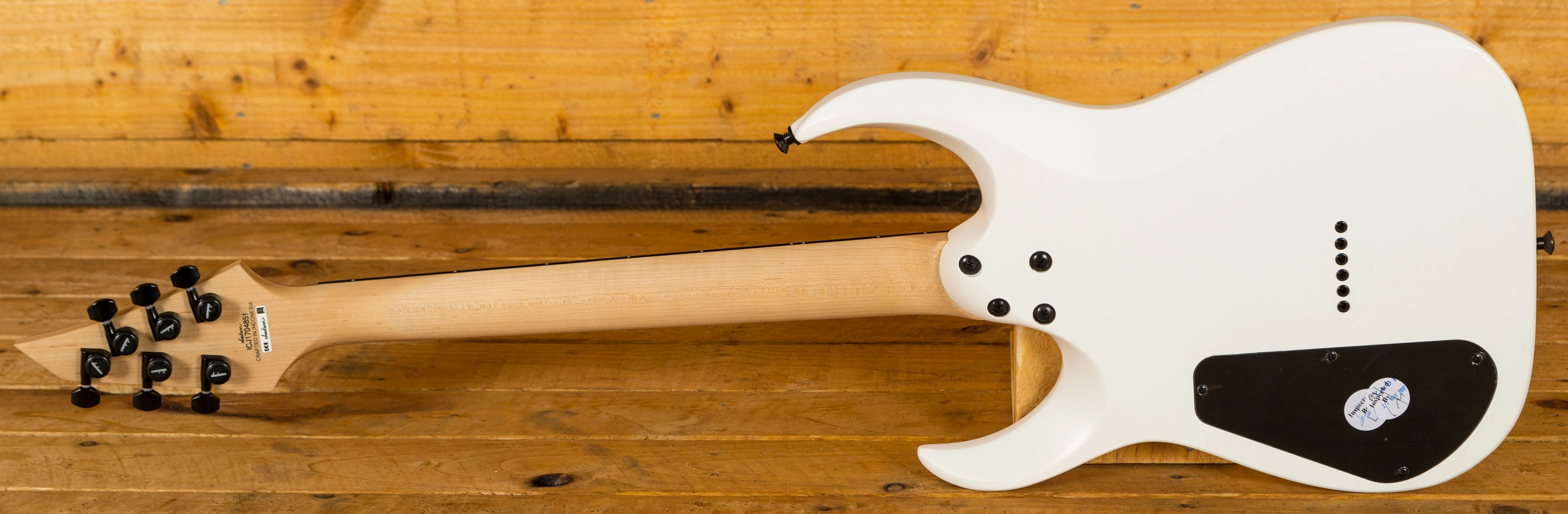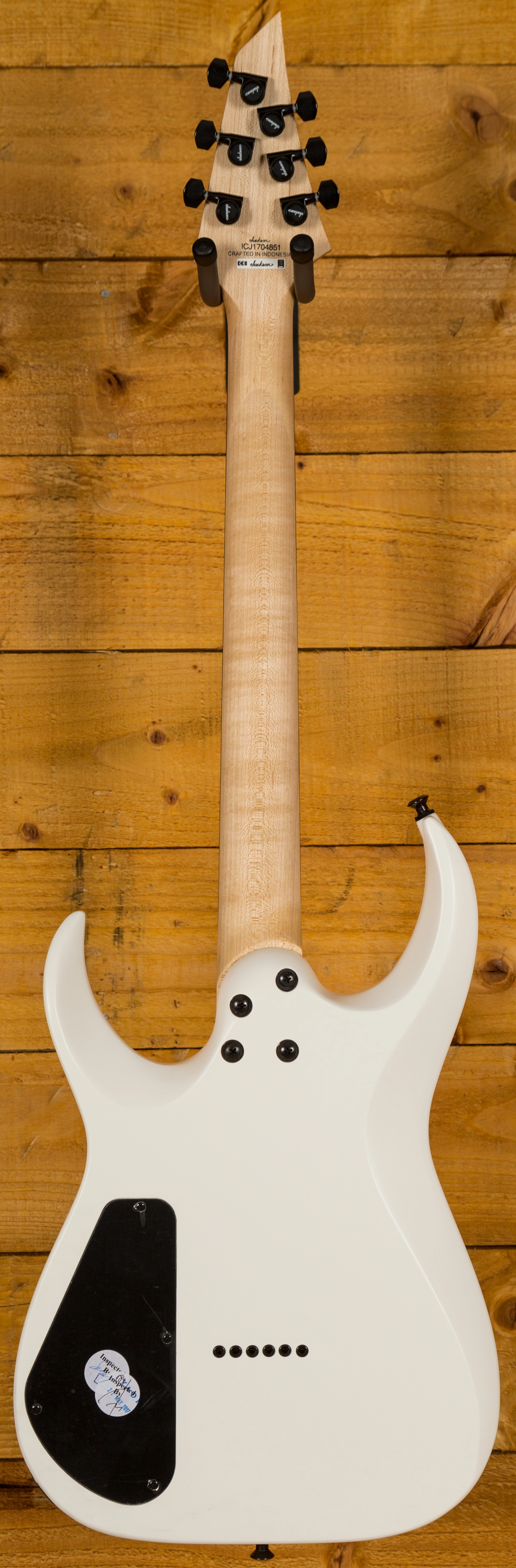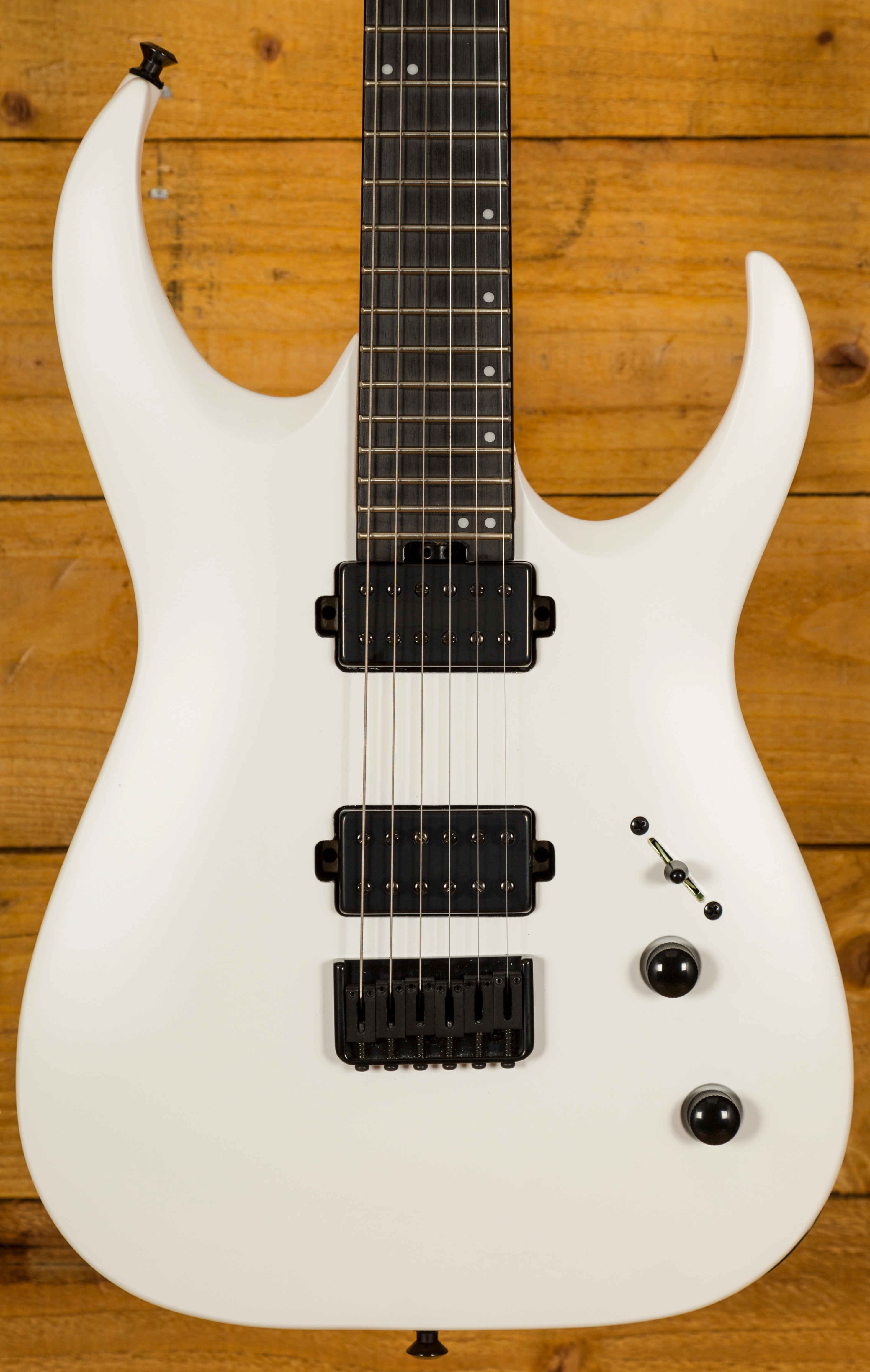 With a Basswood body, finished in Satin White, the HT6 is a comfortable and well balanced shred machine. The one-piece Maple Speed Neck rocks an Ebony fingerboard and Graphite reinforcement for super stability. A 16" flat radius, 24 Jumbo frets and Luminlay side dots help to perfectly recreate the Juggernauts that Mansoor uses to create his mammoth Periphery tone.