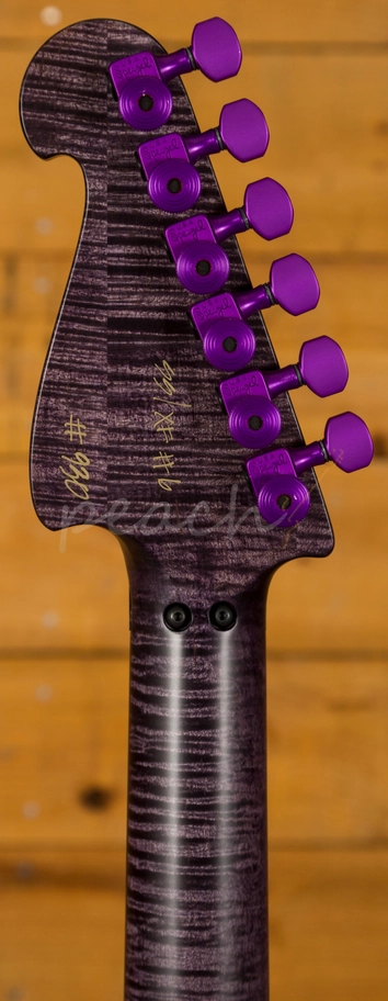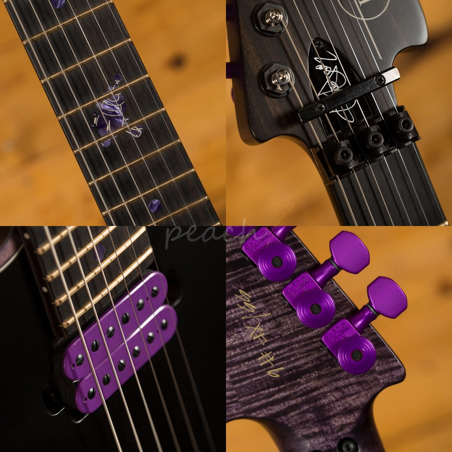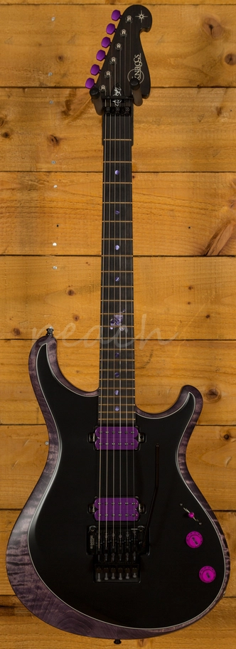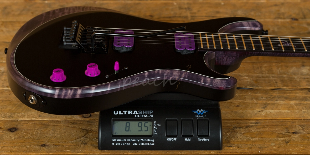 The Maple neck features an Ebony fingerboard with purple dot inlays and the signature RayGun at the 12th; with great access right up the neck this guitar is at home playing a wide range of styles. Loaded with a Floyd Rose tremolo bridge, this guitar has great tuning stability and a really nice playing action. With a duo of Bareknuckle SSC pickups, which are based on the popular Mule model and feature Alnico IV magnets, these PAF inspired pups were selected for their supreme versatility.