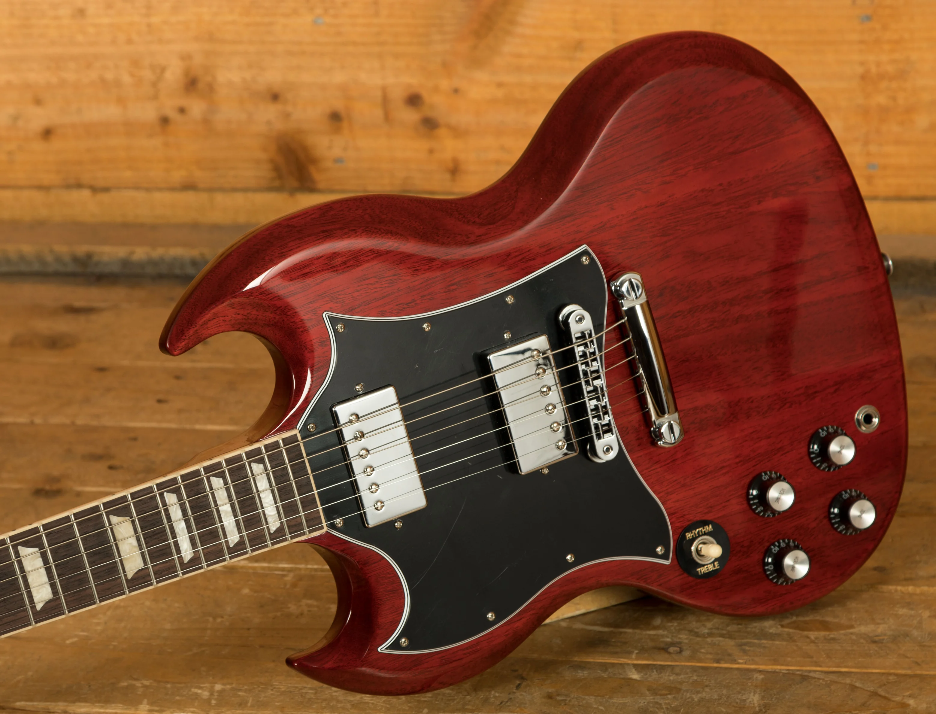 Originally launched in 1961 as a temporary replacement for the single cutaway Les Paul, the SG gained favour with rock and blues players who were impressed by its innovative design. Now, the Gibson SG Standard represents a great mix of early '60s vision with contemporary versatility and feel.