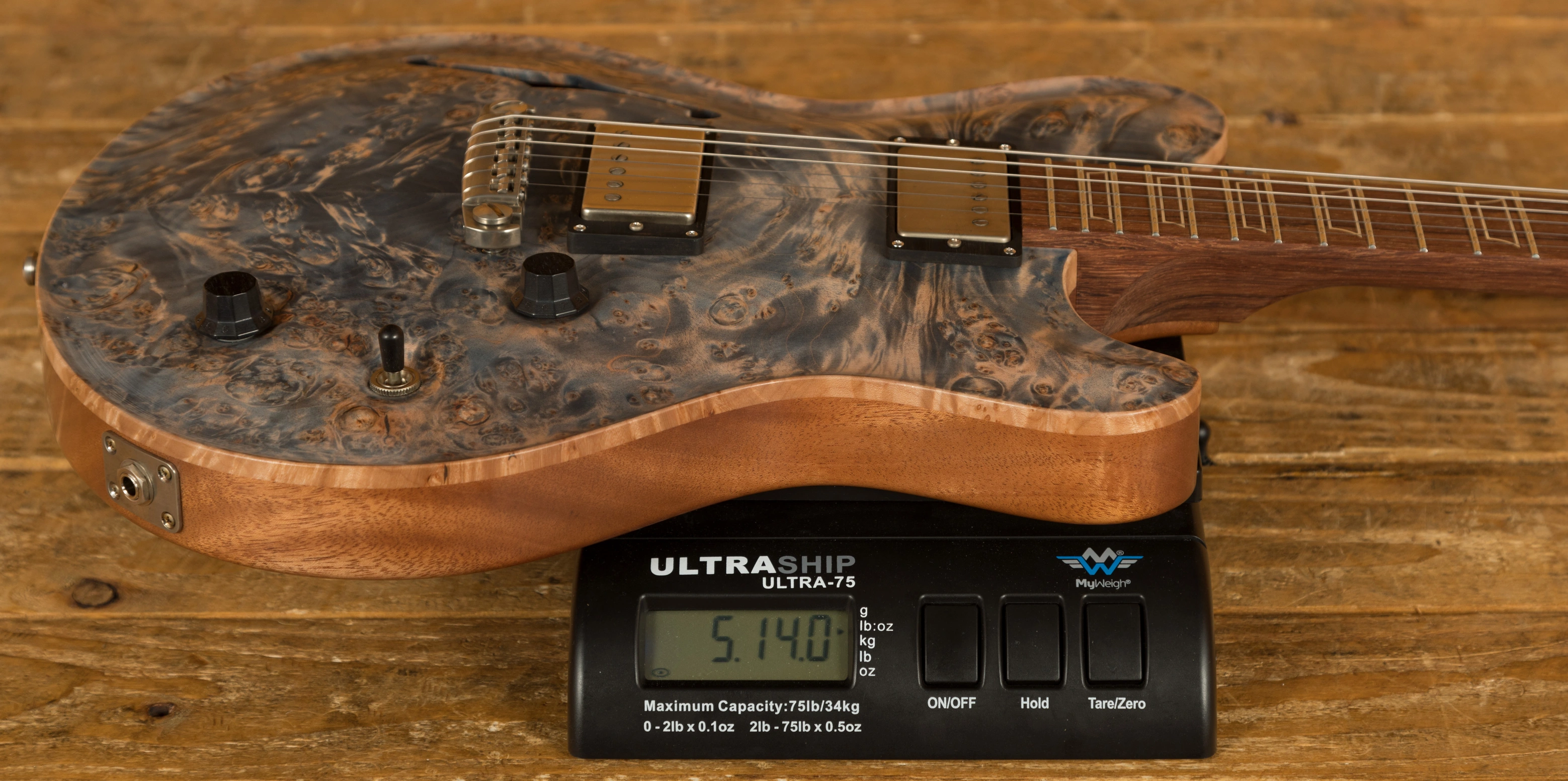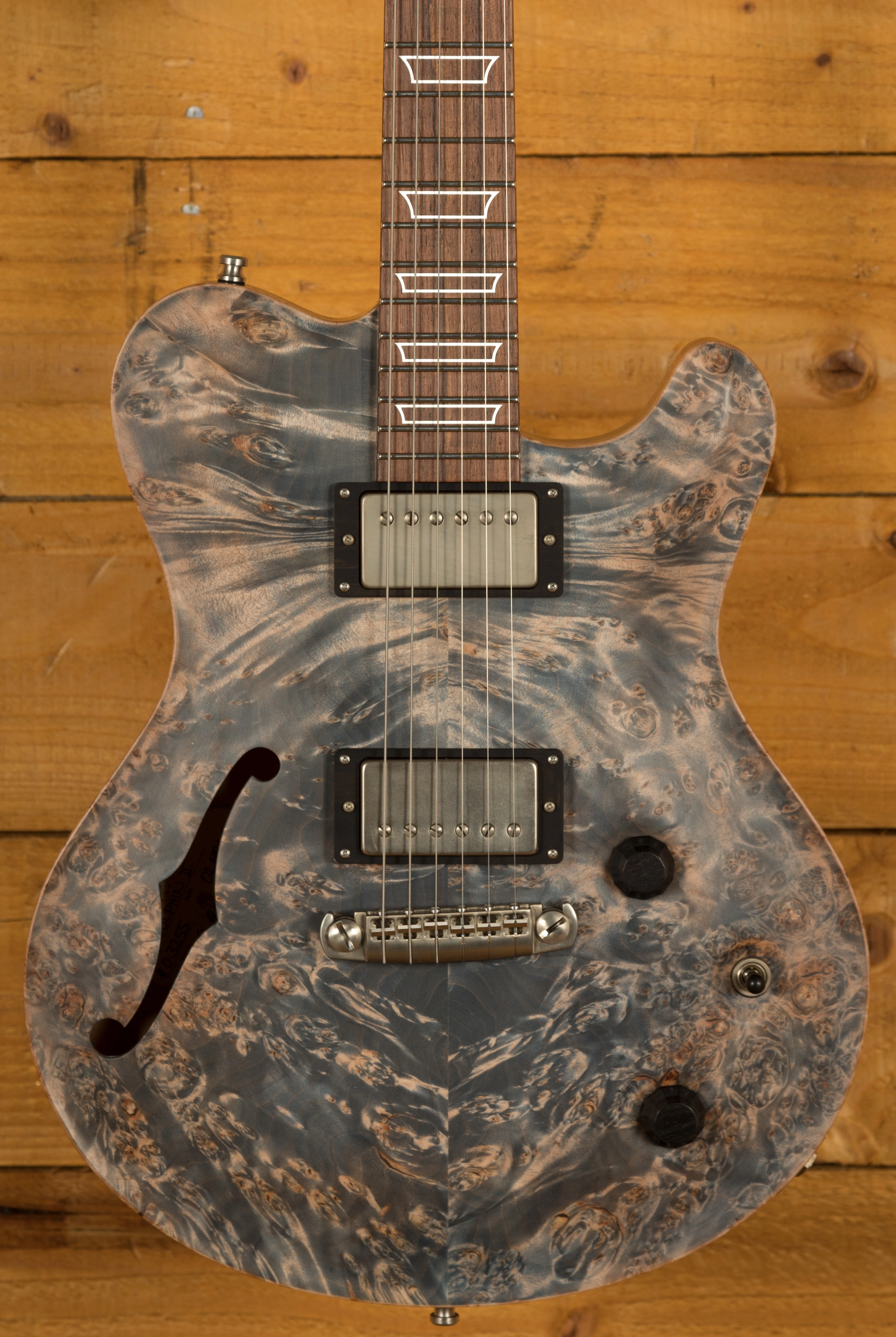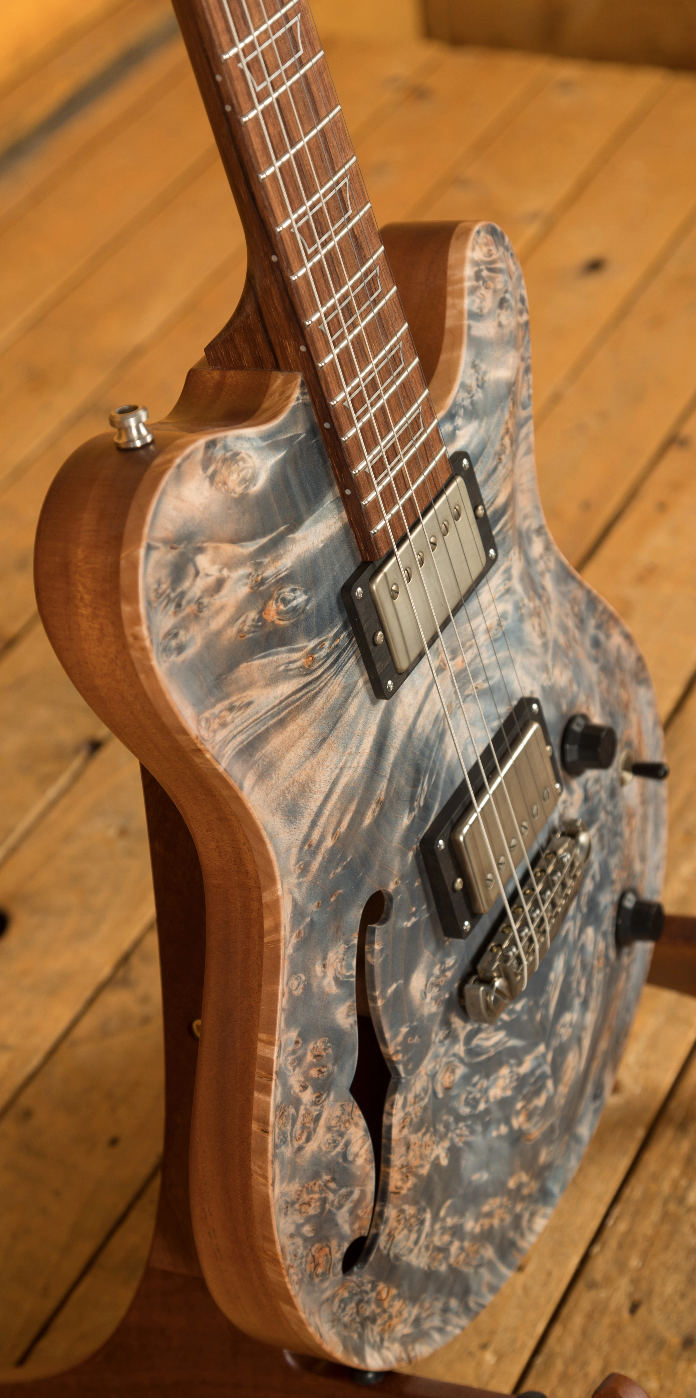 The Dolphin II is one of the most instantly recognisable models in the Huber arsenal, designed for precision and incredible style, it's a masterpiece of epic proportions. This uber cool version features a superhollow body with one of the most exceptional Burl Maple tops you will ever see, it is beautifully balanced and poised and the custom colour Stone Grey finish is just stunning.