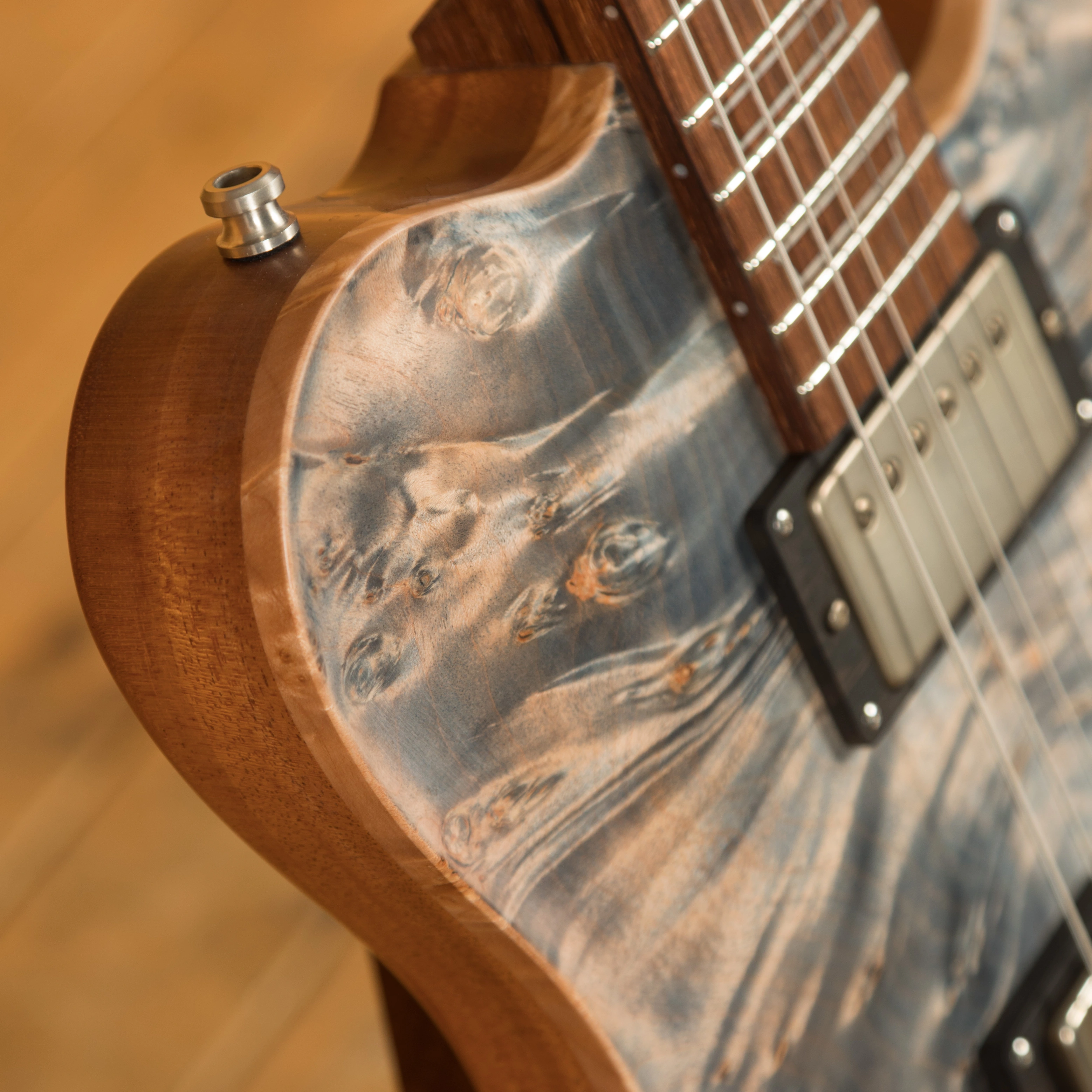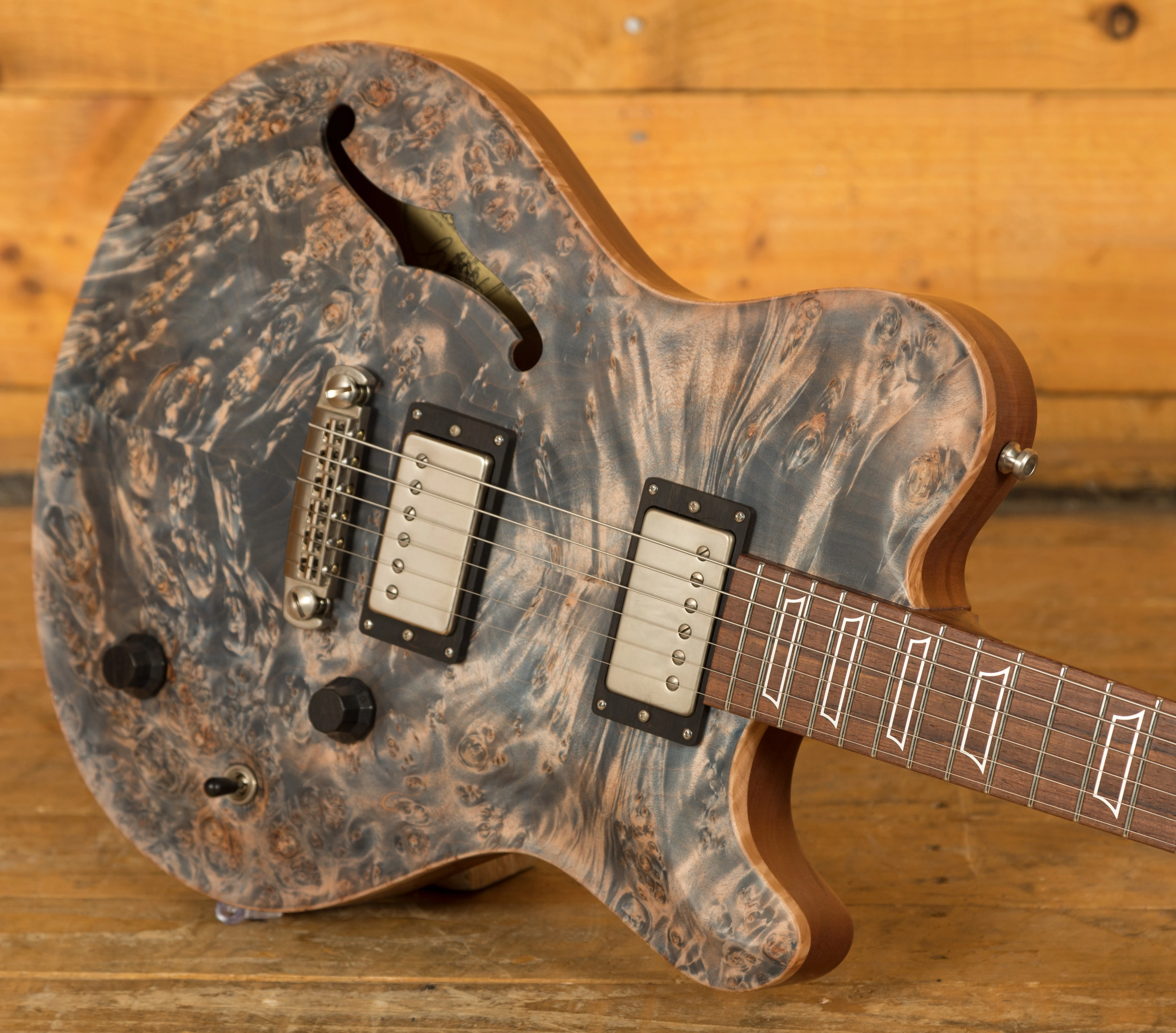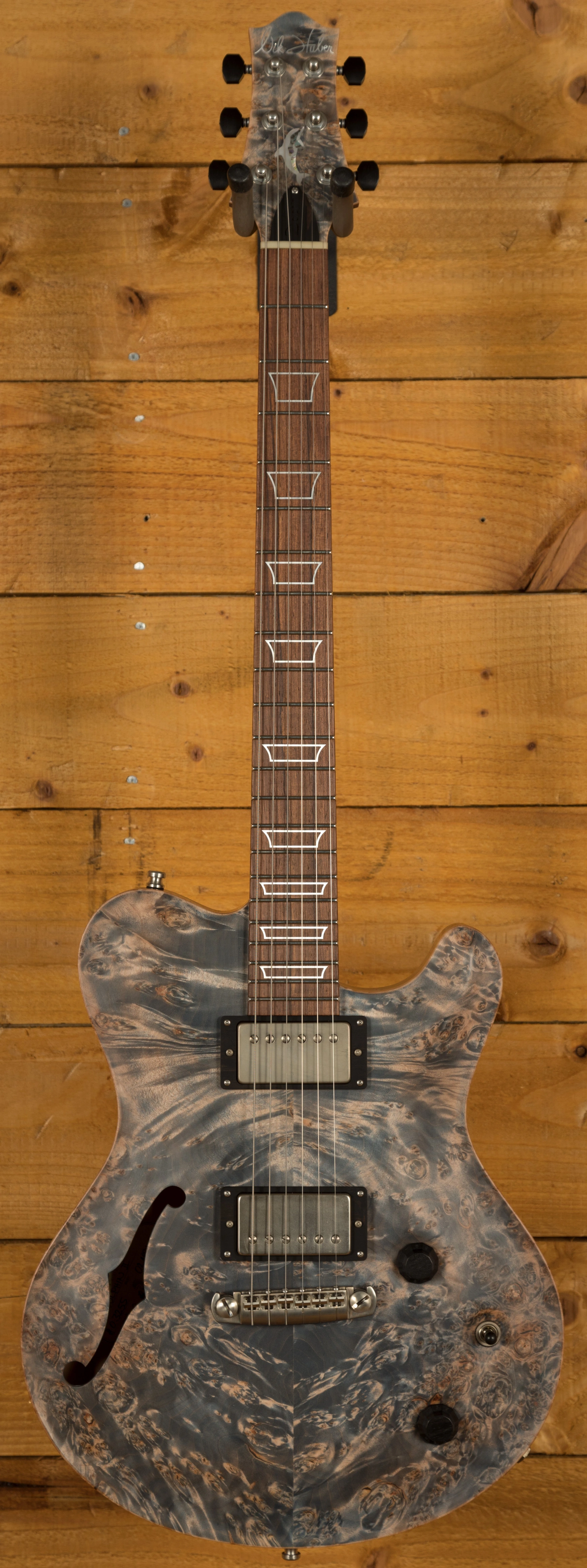 The Dolphin II is one of the most instantly recognisable models in the Huber arsenal, designed for precision and incredible style, it's a masterpiece of epic proportions. This uber cool version features a superhollow body with one of the most exceptional Burl Maple tops you will ever see, it is beautifully balanced and poised and the custom colour Stone Grey finish is just stunning.