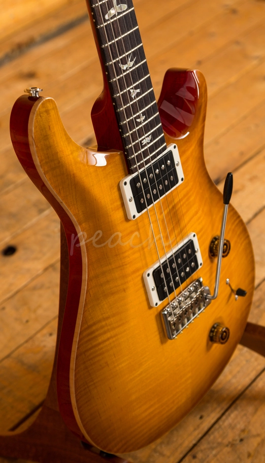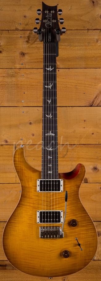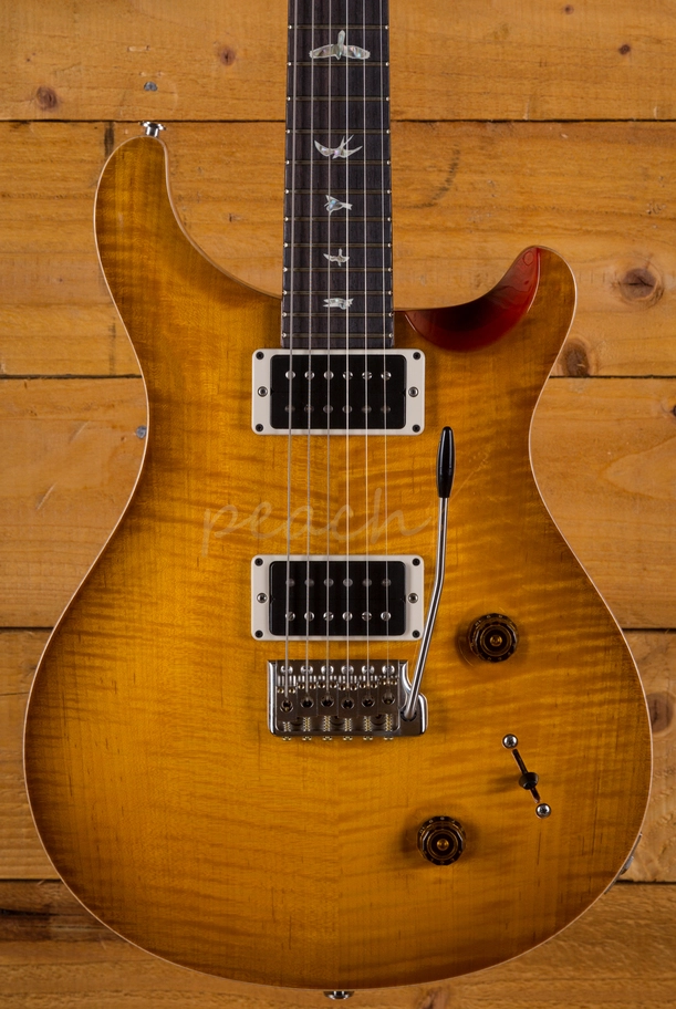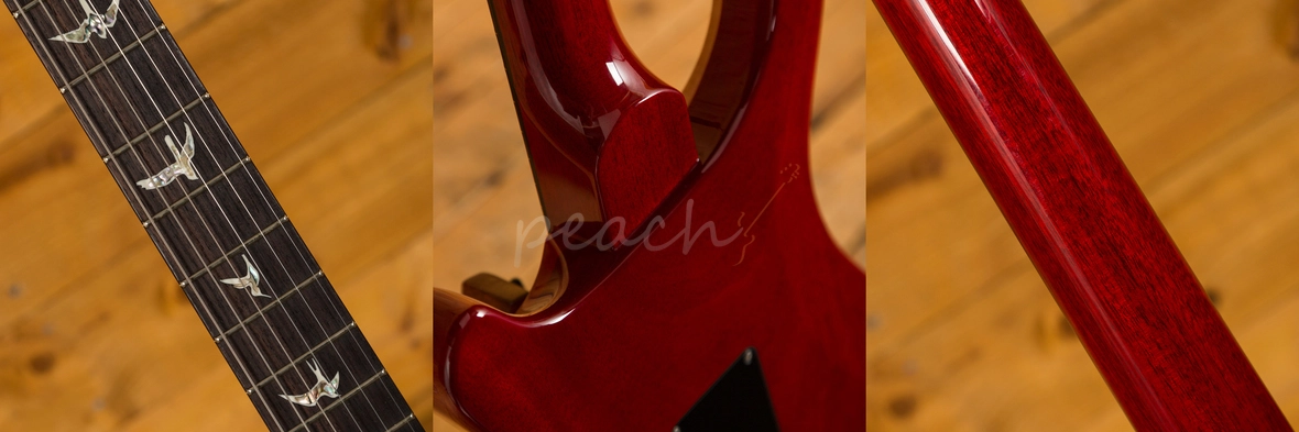 A comfortable 22 fret Rosewood fingerboard proudly bears the signature PRS birds and its 25" scale length Mahogany neck and pattern profile offers a comfortable and stable performance. With the PRS patented Gen III tremolo and Phase III locking tuners, you get flawless tuning stability and great intonation, the trem is super responsive and allows you to add some lush texture to your sound.