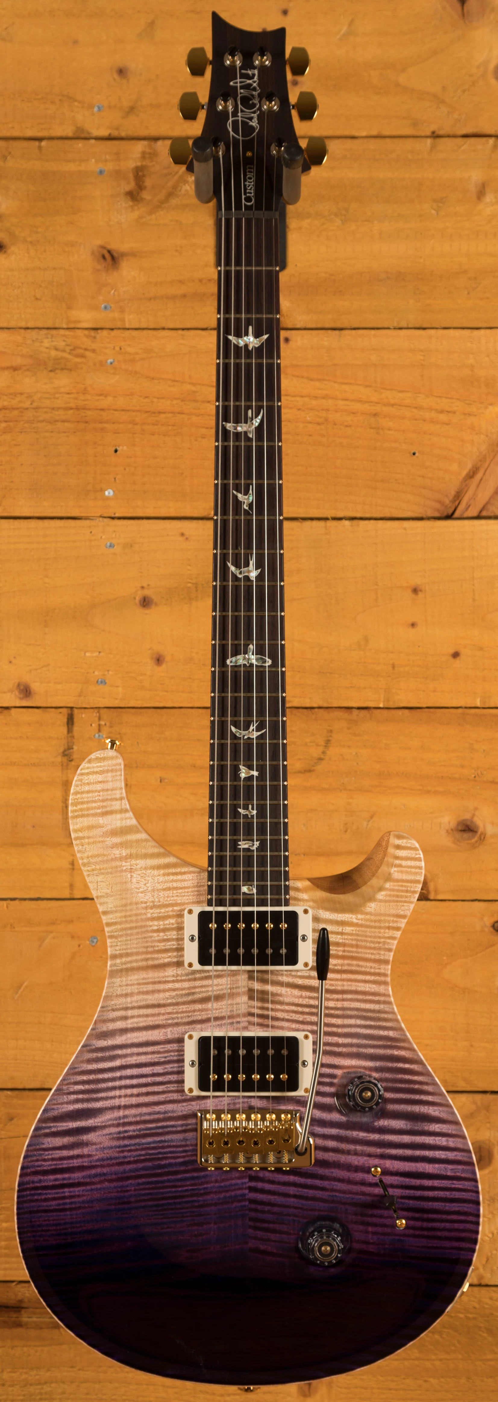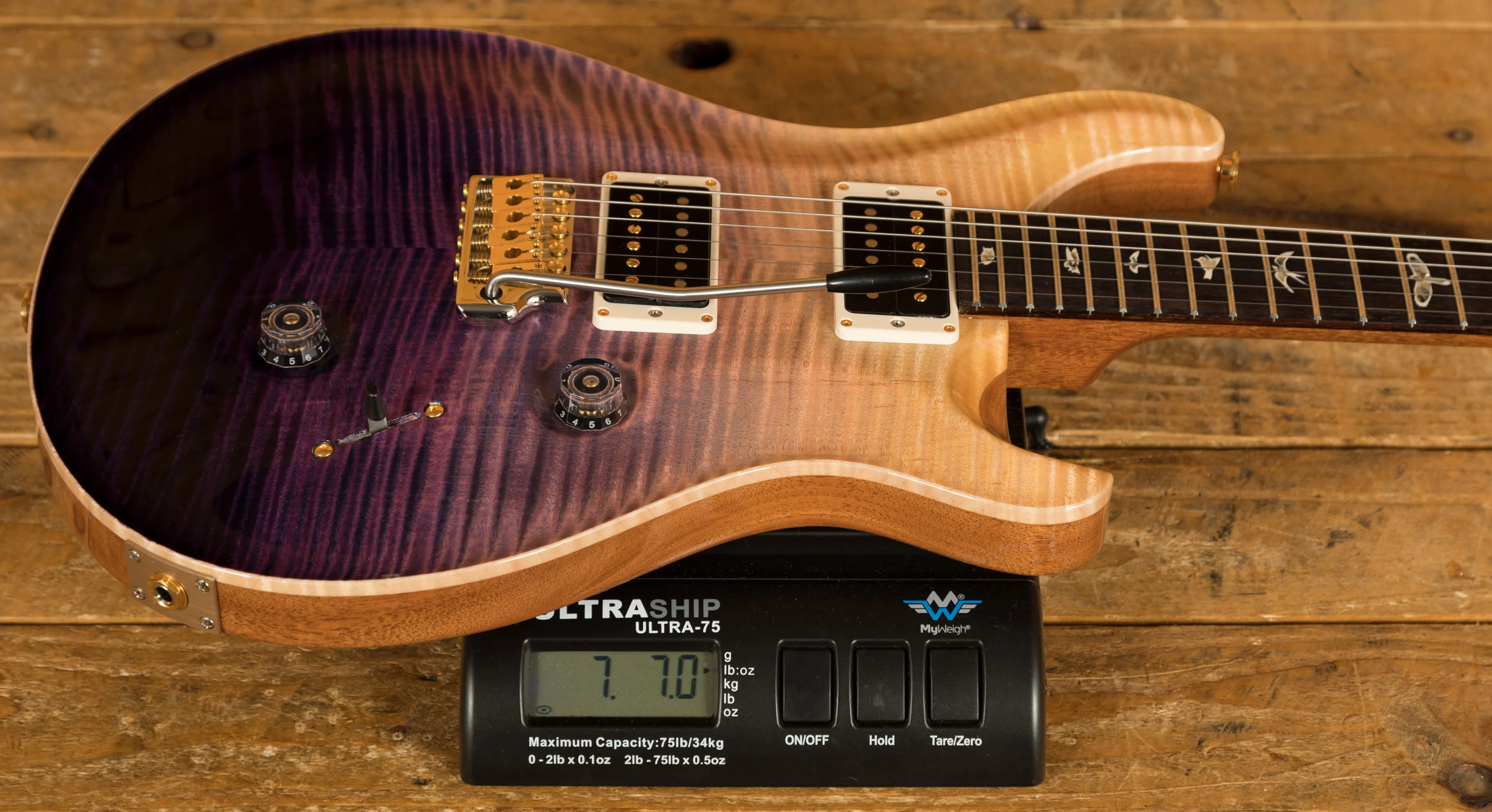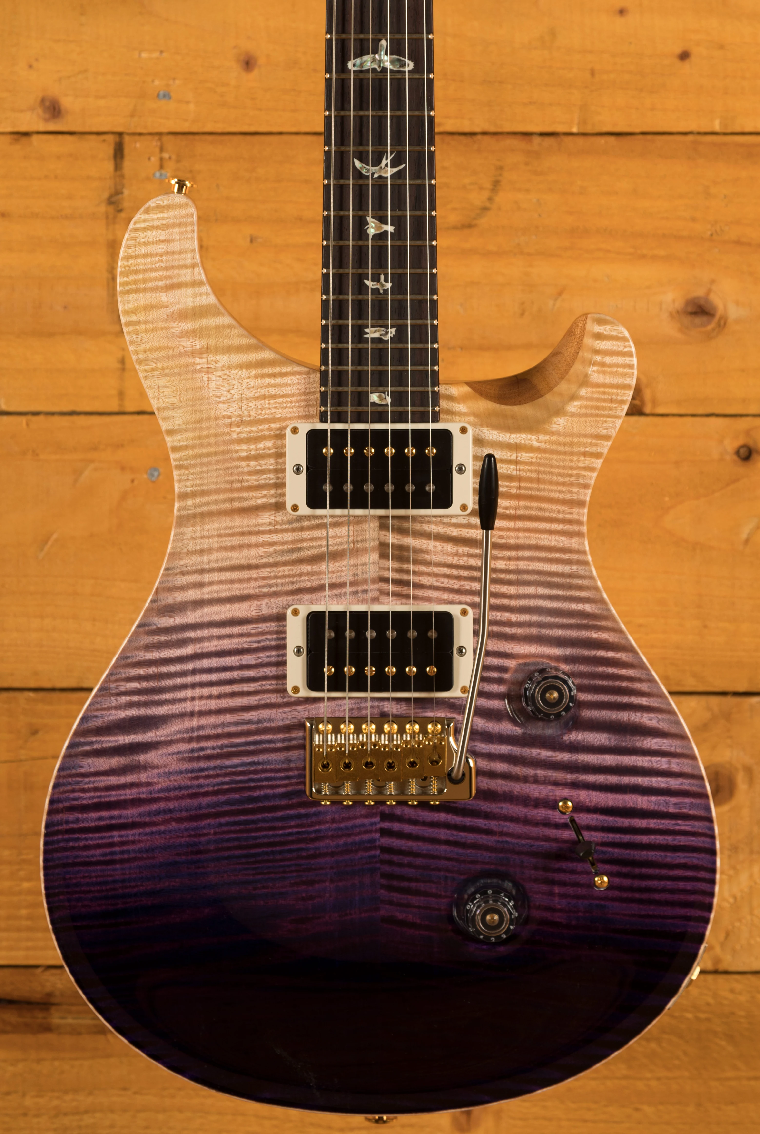 The Mahogany body with carved figured Maple top a offers a rich warmth and depth that complements the beautiful custom colour Purple Fade finish. With a 25" scale length, Pattern Regular profile and of course, 24 frets, the Mahogany neck feels really comfortable and familiar. The iconic PRS birds sit proudly atop the Rosewood fingerboard for the definitive PRS experience.