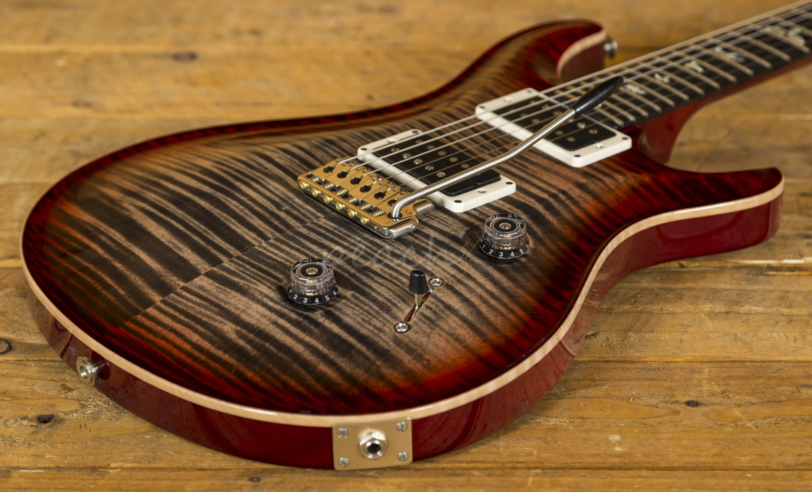 Another absolutely sweet PRS Custom 24 model in a wicked finish called "Charcoal Cherry Burst" - Almost like the "Burnt Maple" finish we've recently seen on some PRS guitars, just with some extra red around the edge.