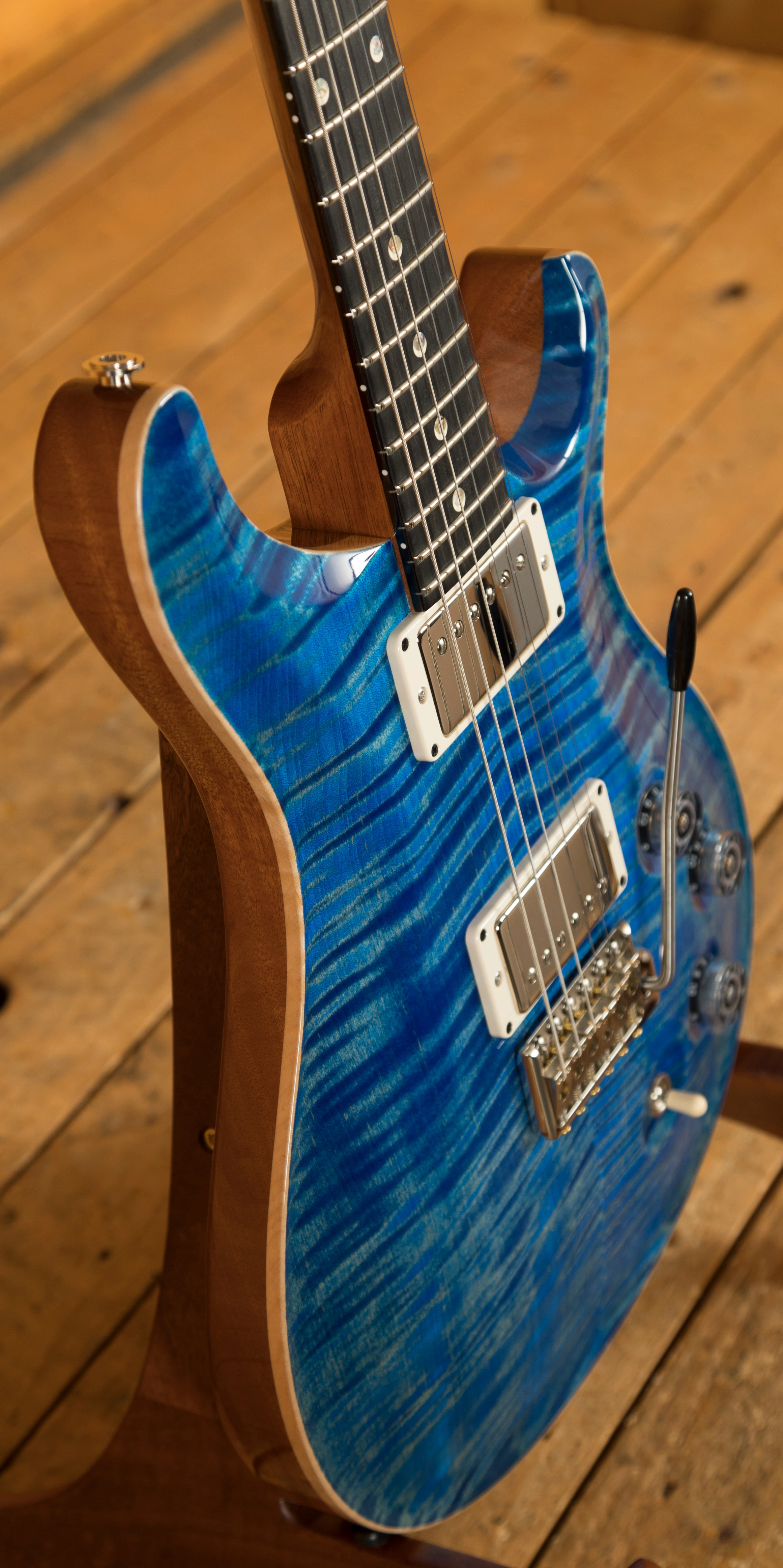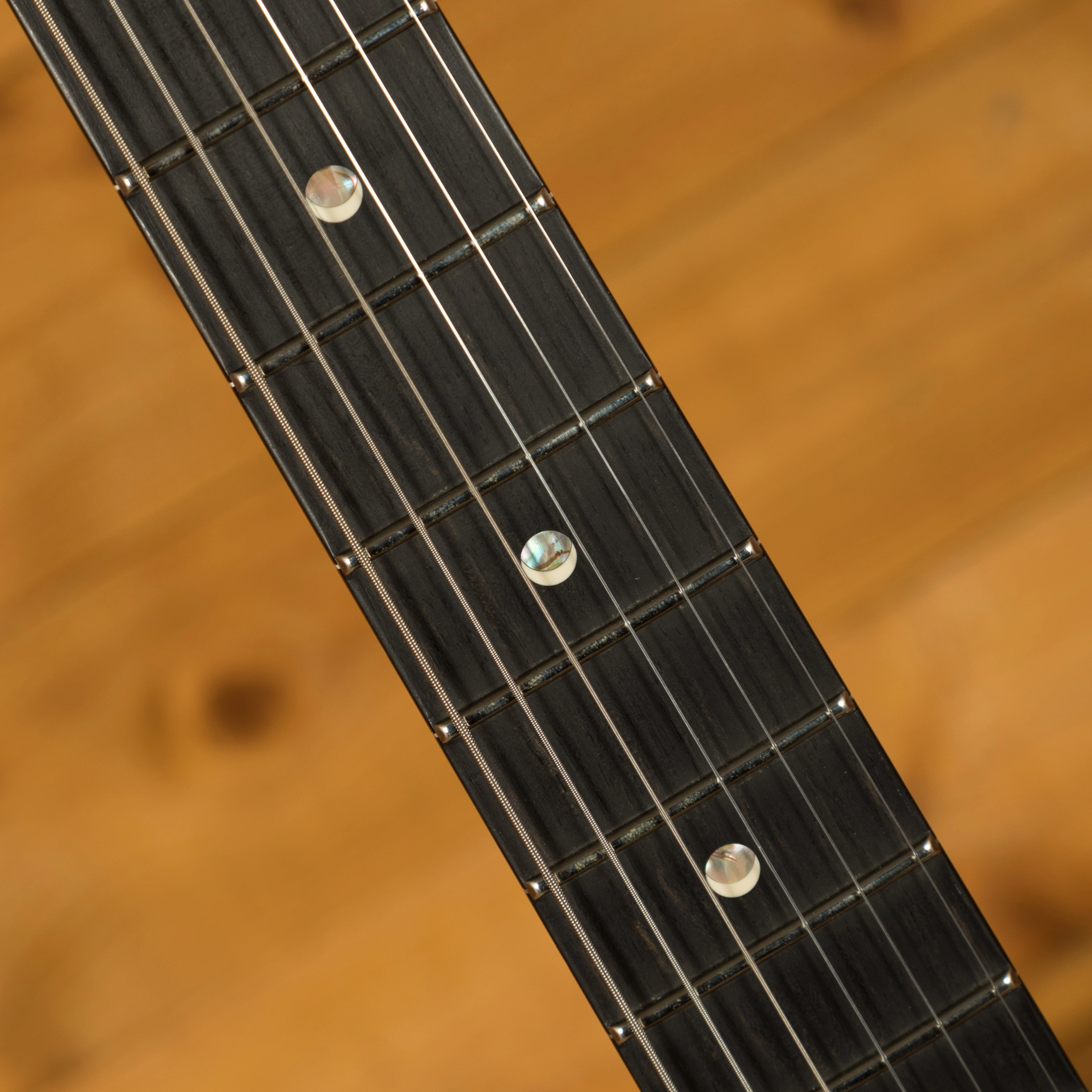 With a stunning carved figured maple top and mahogany back, it looks every bit as good as it sounds. Finished with in a stunning 'faded blue jean", the DGT is a real tone machine! A 22 fret Ebony fingerboard proudly bears the classic moon inlays and with its 25" scale length Mahogany neck it feels supremely comfortable.