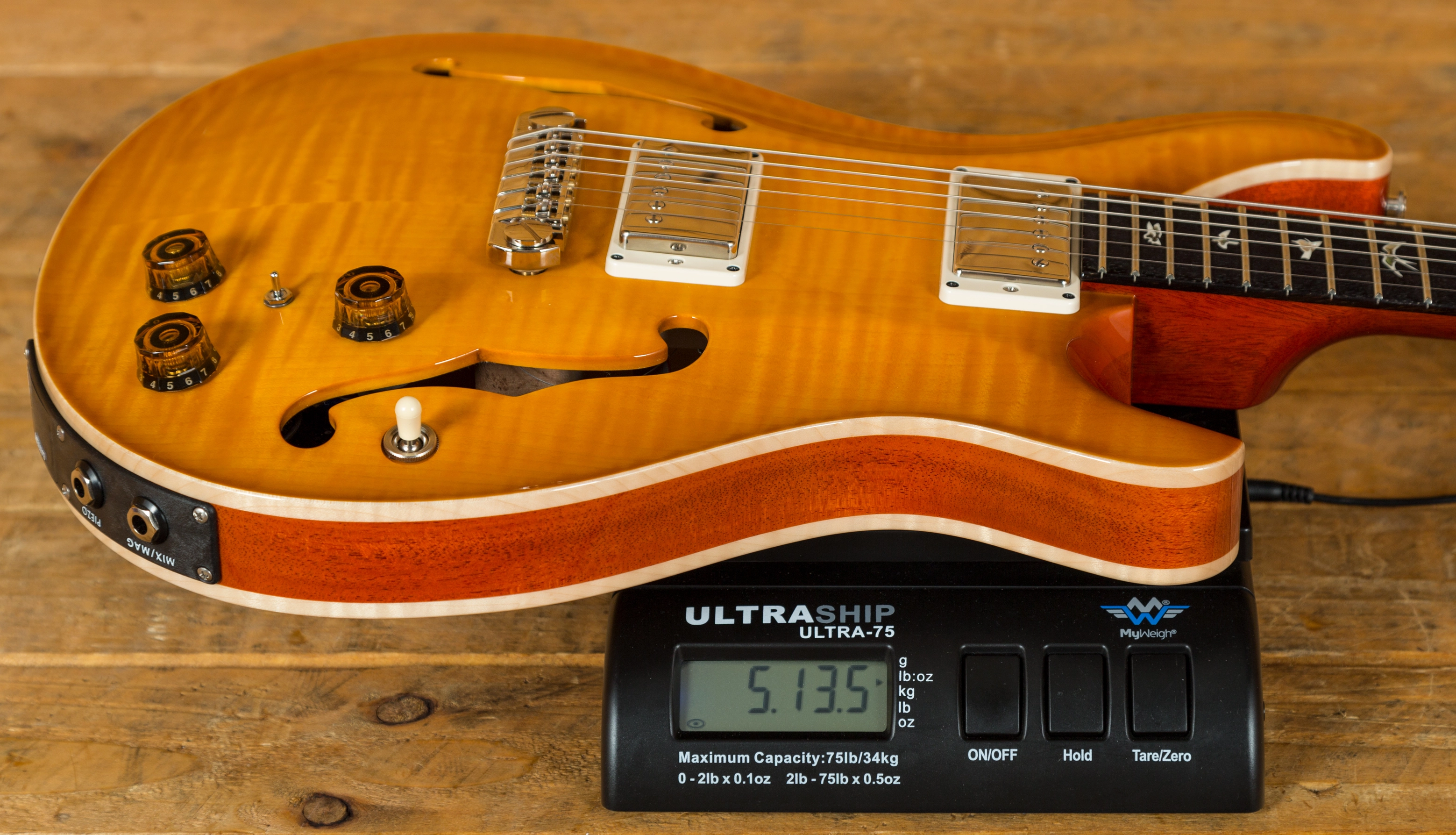 With a stunning carved Figured Maple top and back, finished in McCarty Sunburst, the Hollowbody II looks every bit as good as it sounds. With a lightweight Mahogany middle it is perfectly weighted and balanced while the hollowbody design offers incredible resonance and sustain.