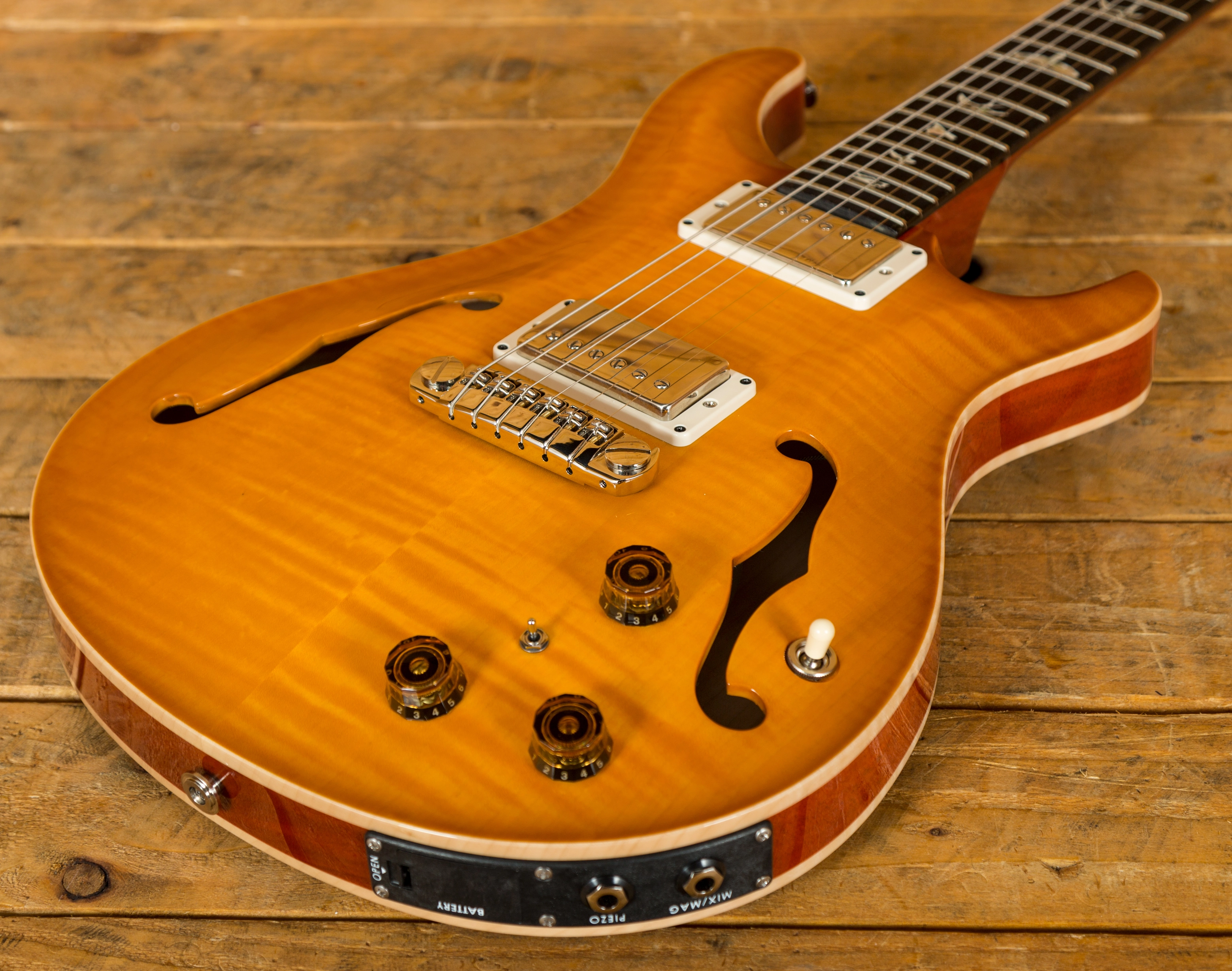 Every once in a while a guitar will come along that perfectly embraces modern design, playability and tone, the end result being a guitar that is perfect for home, stage and studio. The PRS Hollowbody II Piezo is one of those guitars.