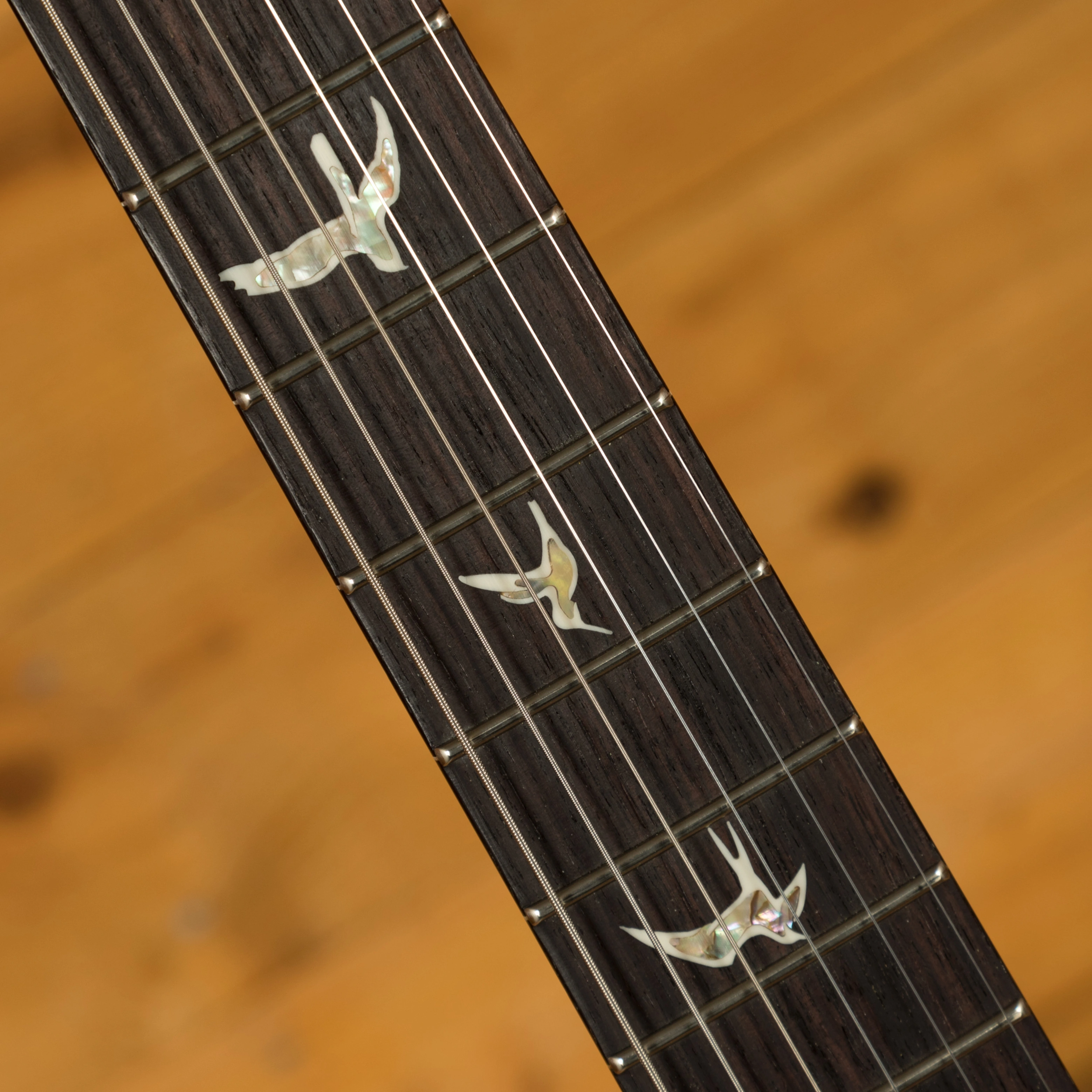 The 22 fret Mahogany neck features a Rosewood fingerboard and pattern profile, offering a warm tone and loads of sustain it feels great underhand. Proudly bearing the classic Mother of Pearl bird inlays, this is every bit the premium guitar.