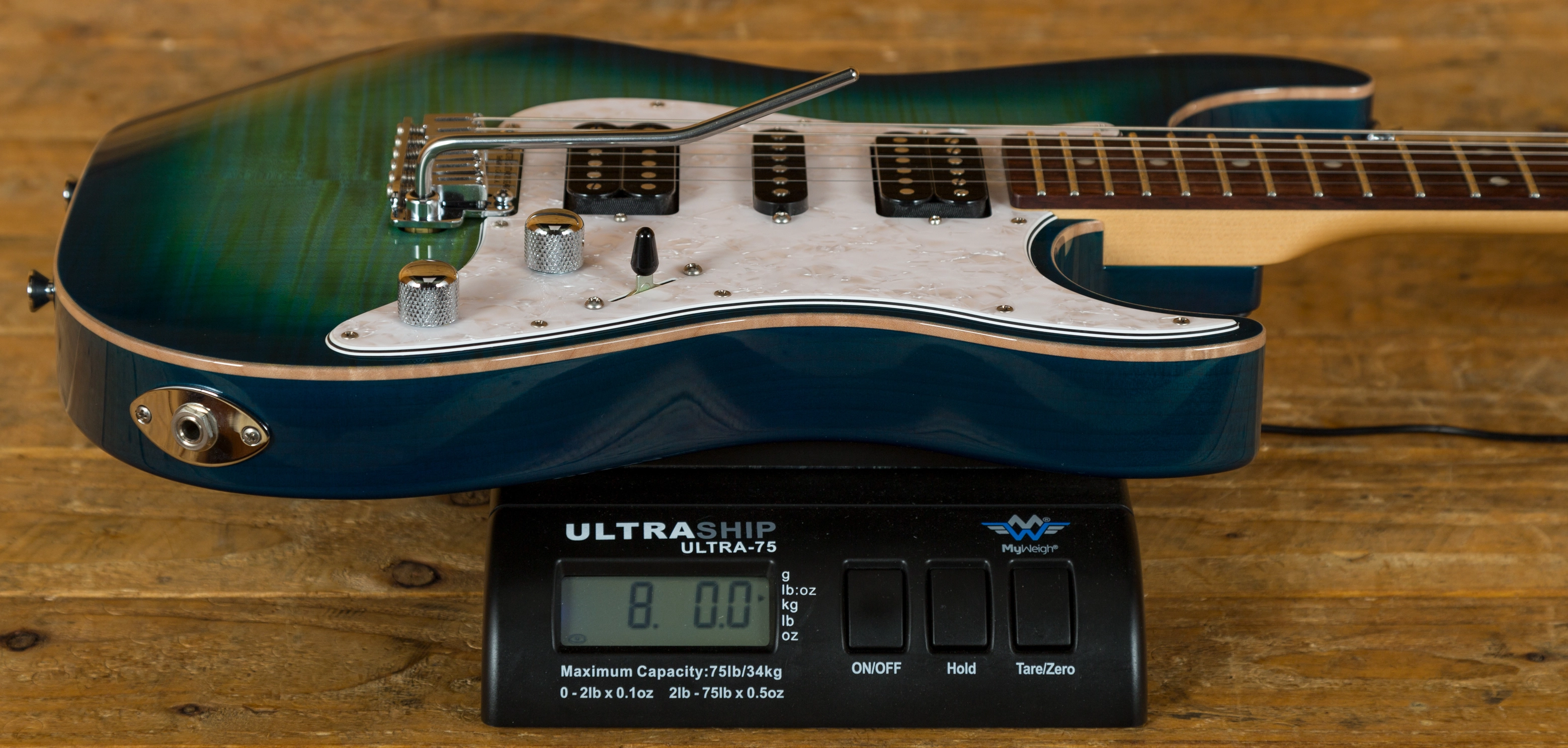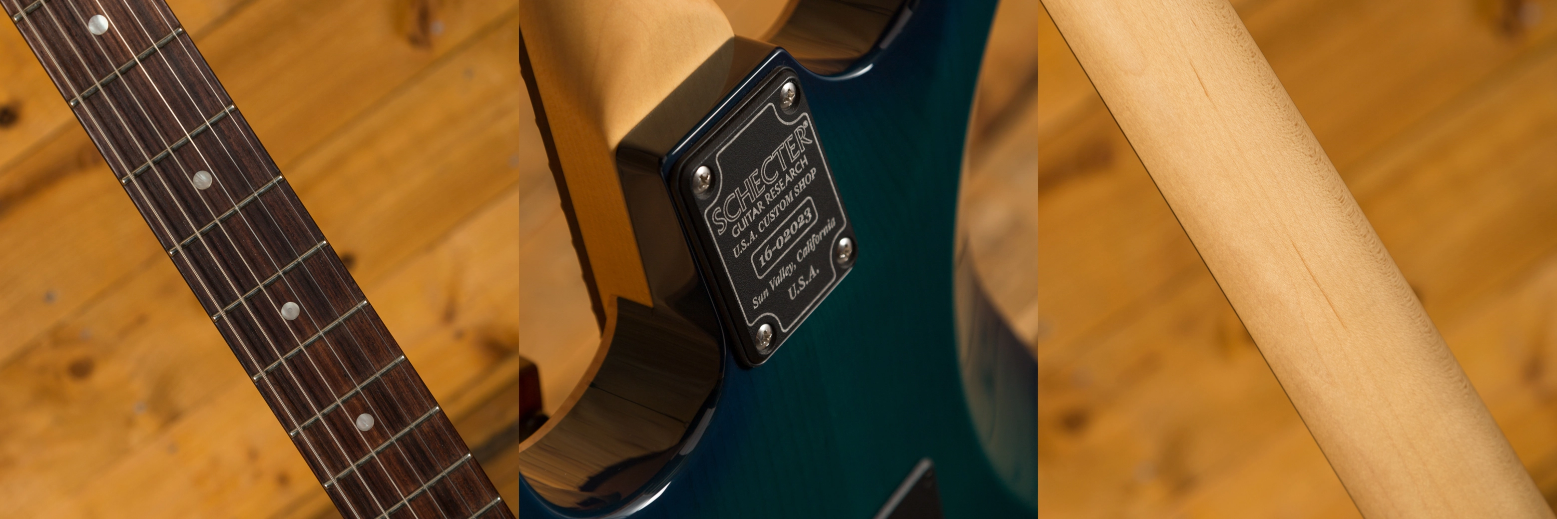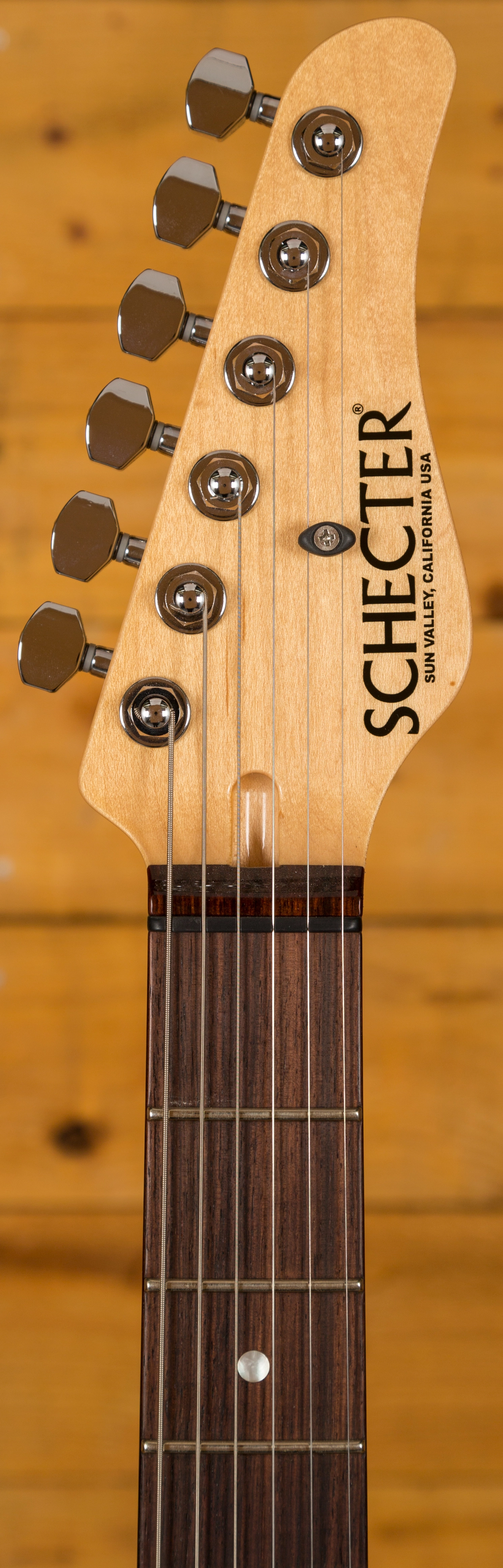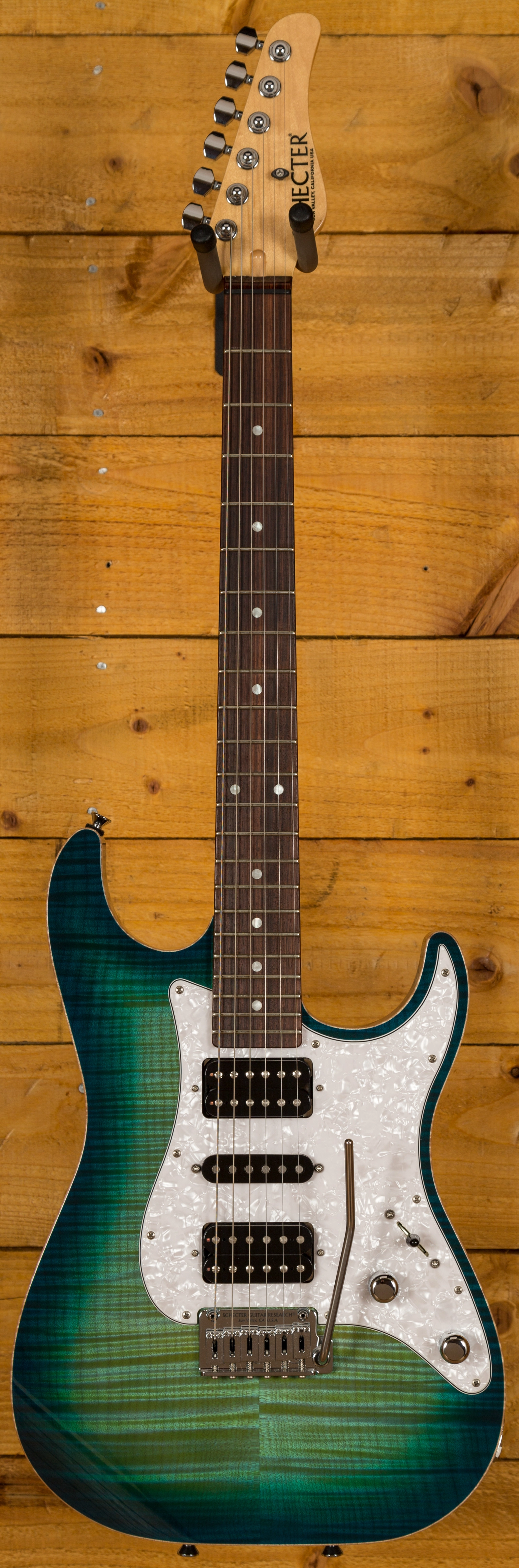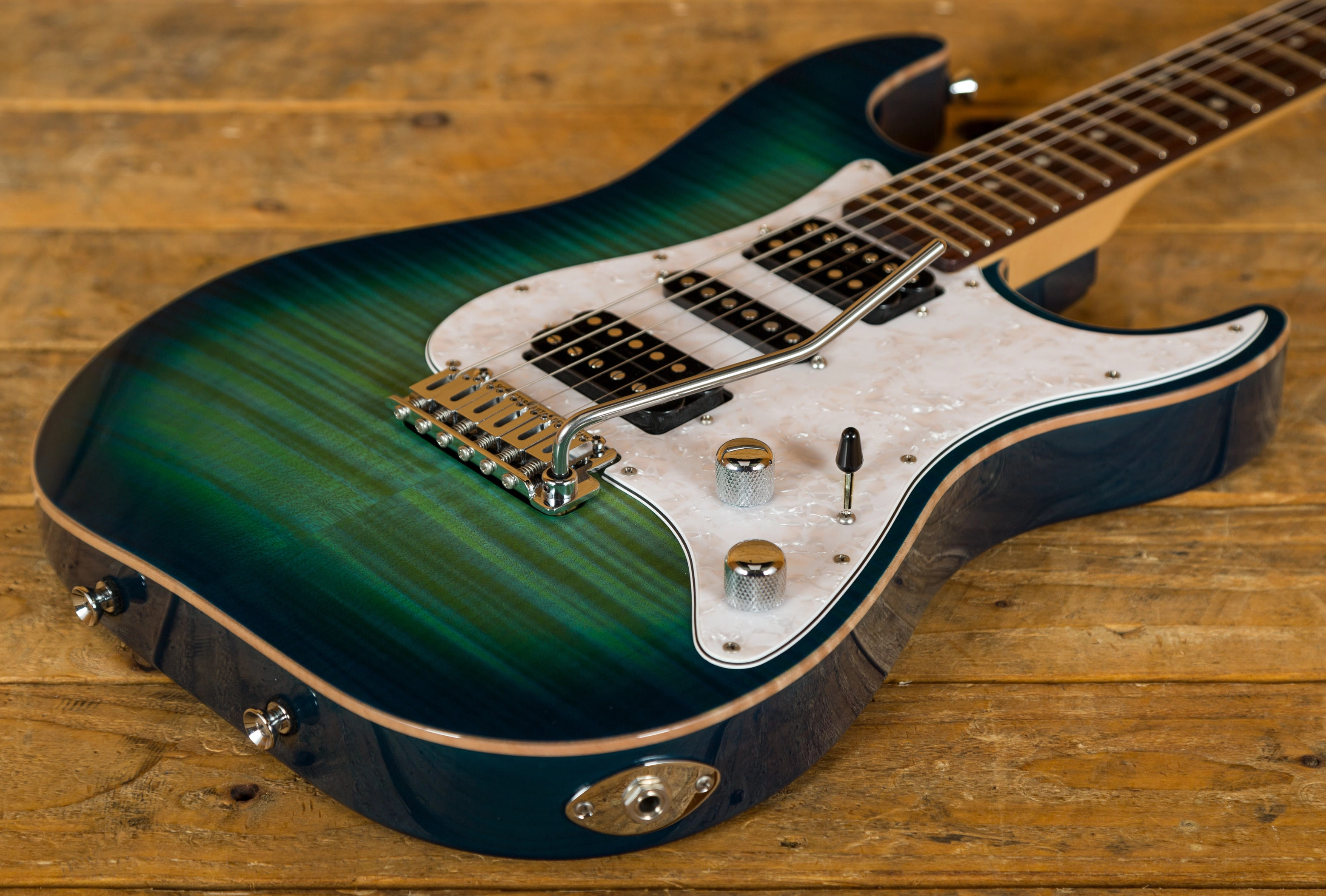 An absolutely stunning example of what the fine folks at the Schecter Custom Shop can offer! I originally saw this model in this finish at the 2016 NAMM show and despite my pathetic begging they wouldn't sell me the one on display, so they encouraged me to place a re-order. I'm pleased i did as the top on this one is even better than the NAMM show guitar!