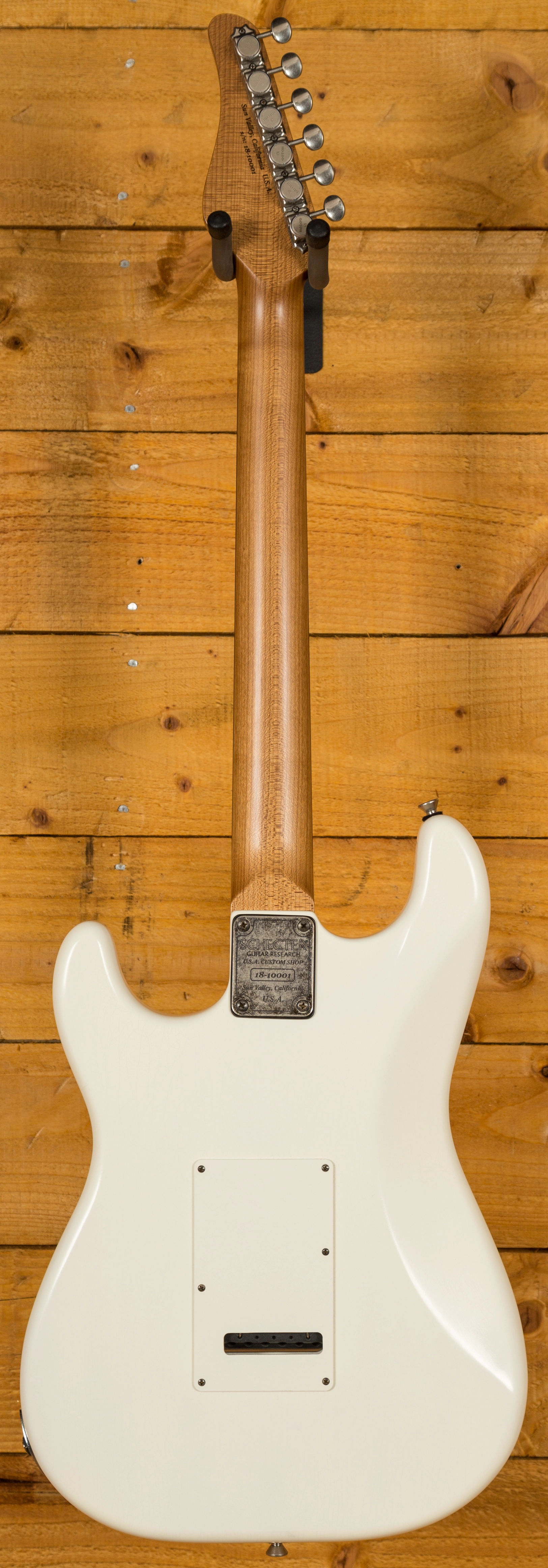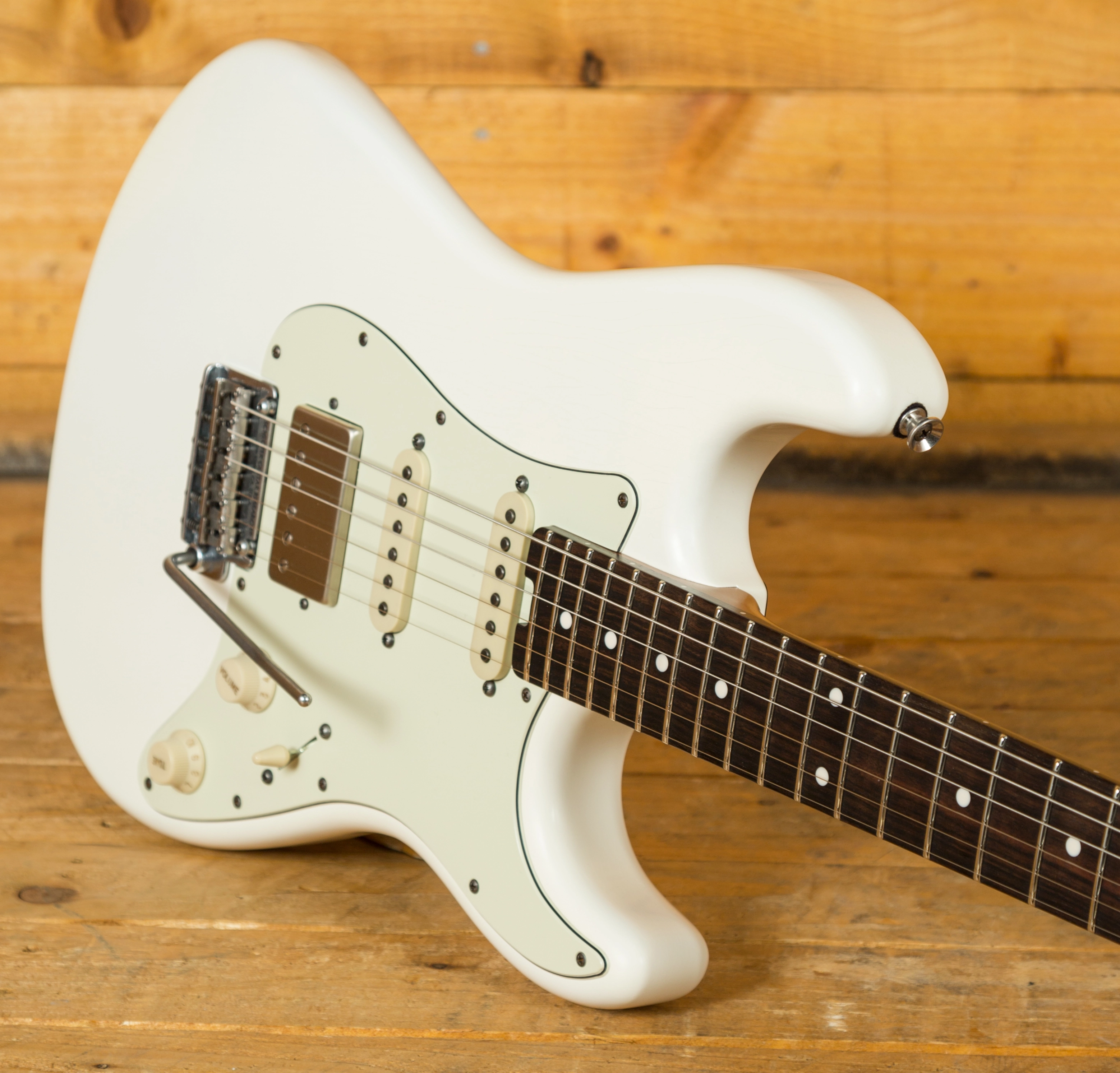 It's pretty clear where the inspiration for this guitar came from, and they have done a really great job of delivering vintage spec with flawless modern construction. The Alder body is finished in the classic Vintage White (they have called it Vintage White but its very much more of an Olympic White!) nitro cellulose lacquer, this finish allows the wood to breathe and resonate really freely for crystal clean tones. The lacquer has some beautiful crazing and up close looks every bit the vintage guitar.