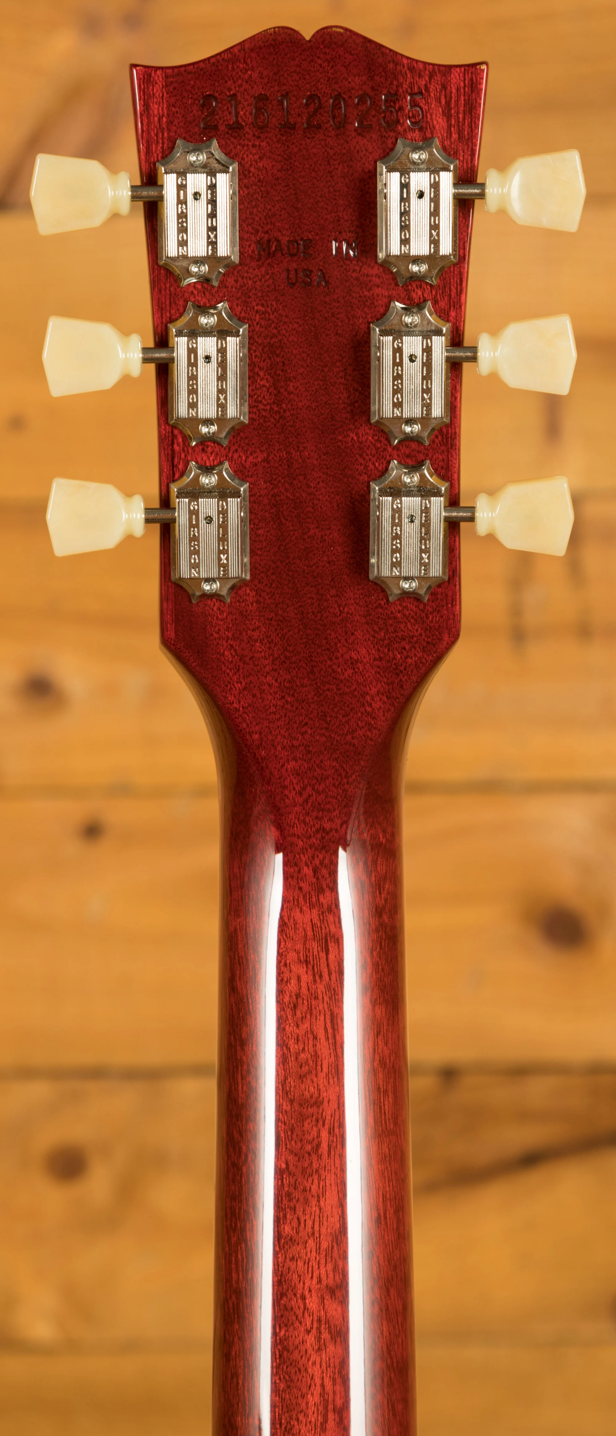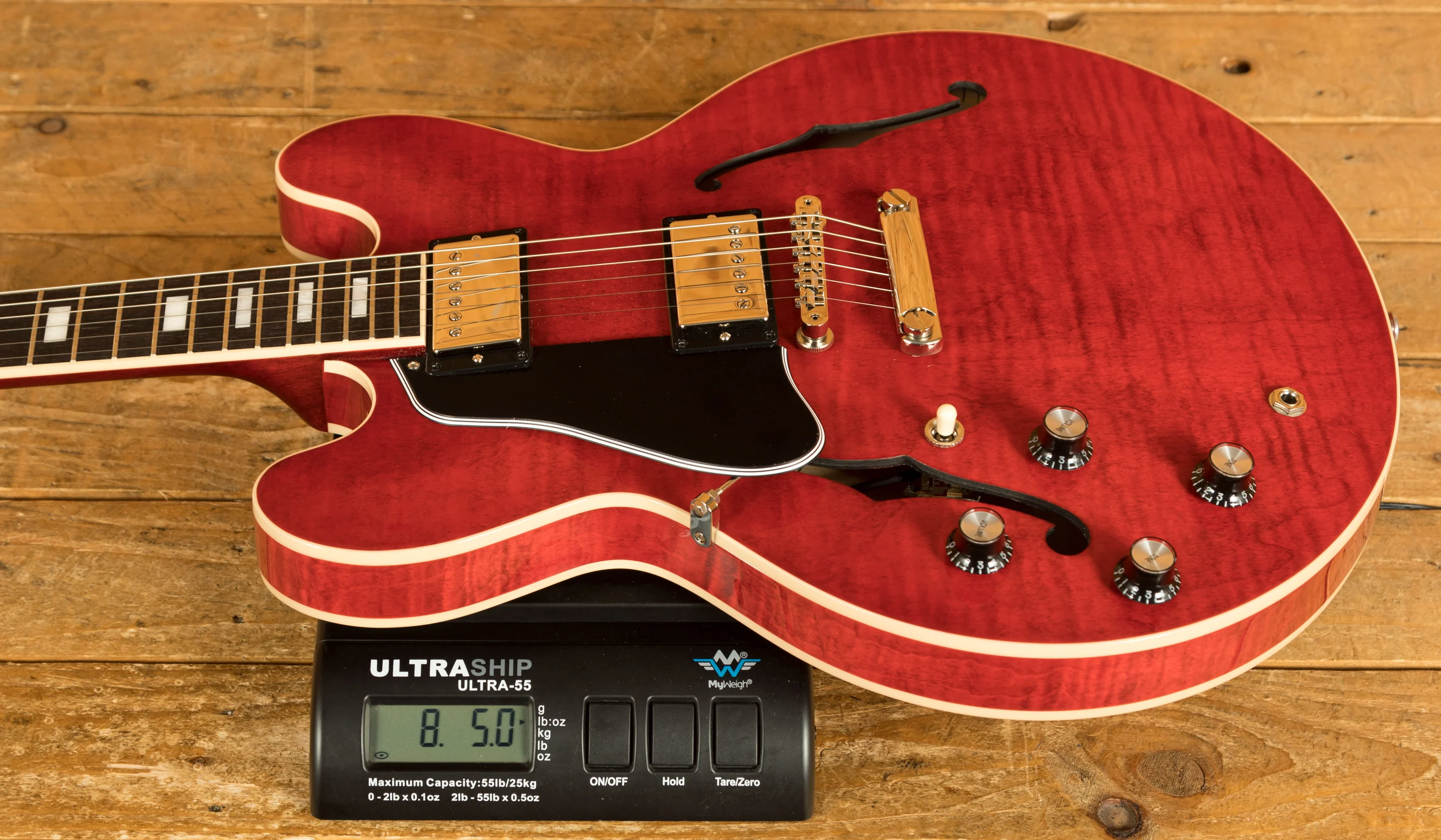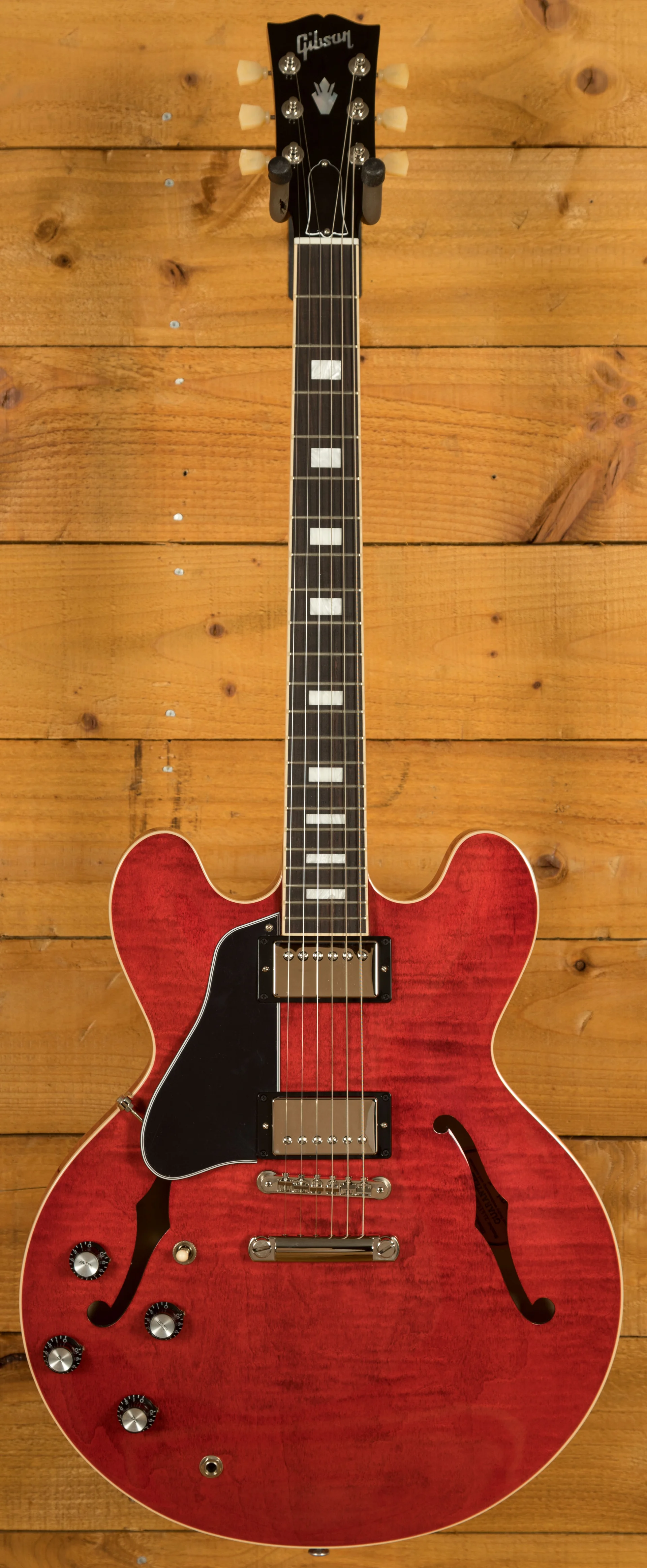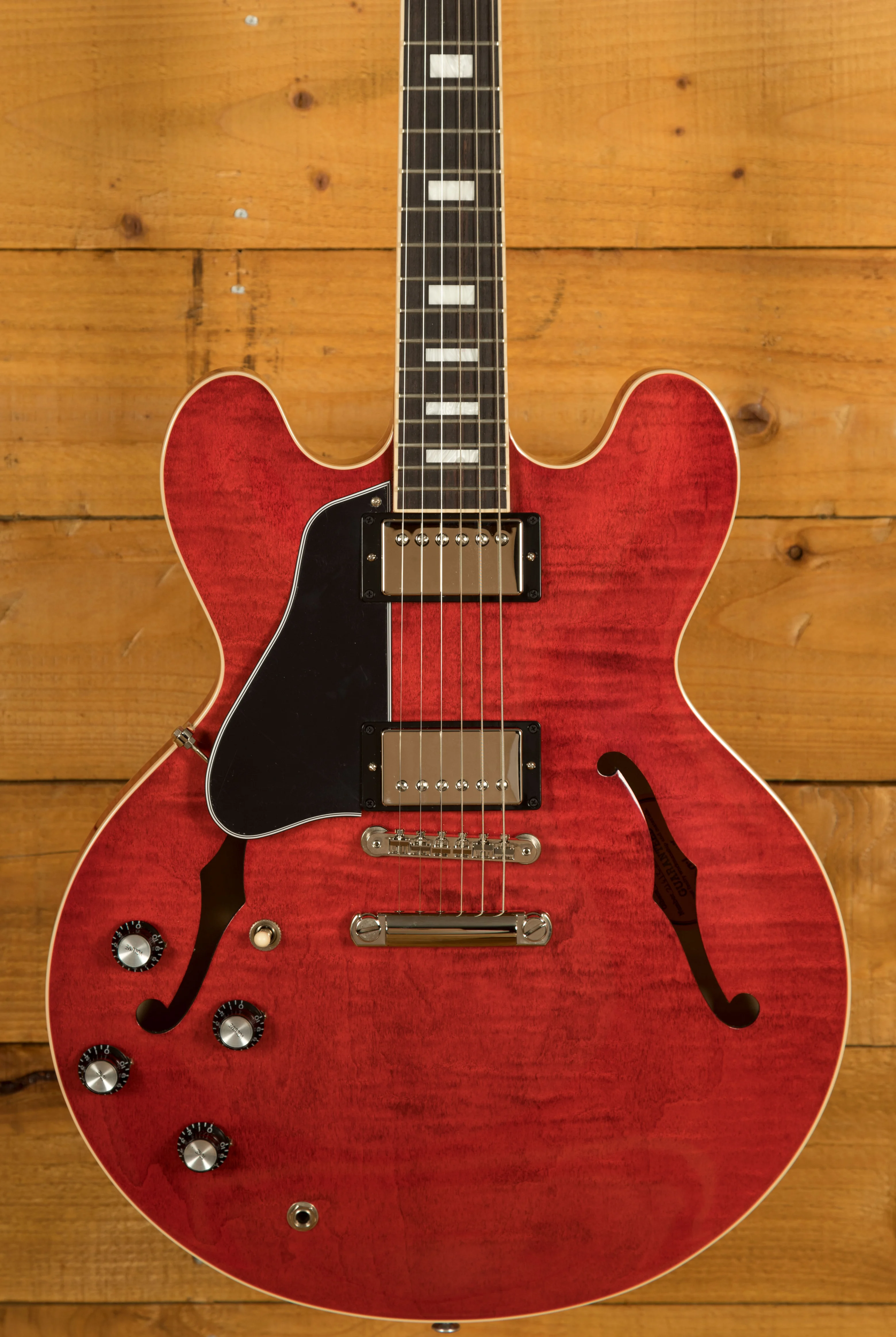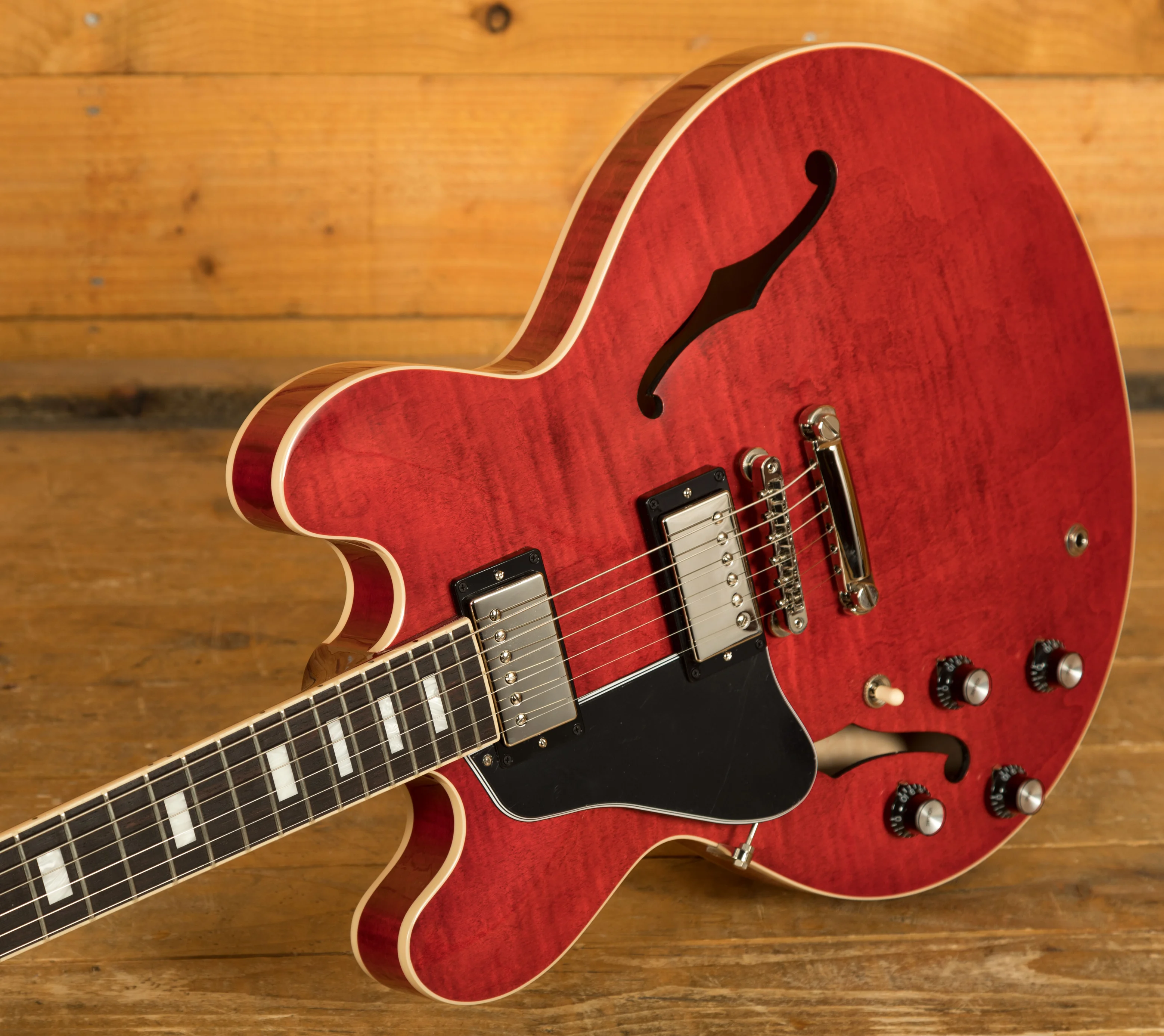 Featuring a 3-ply AAA Figured Maple/Poplar/Maple body, it's finished in a slick, old school vibe Sixties Cherry. Delivering a rich and authentic tone, this ES-335 is super resonant and beautifully balanced; it just oozes that vintage Gibson appeal. The figuring on this guitar is incredible and offers a great really unique look.