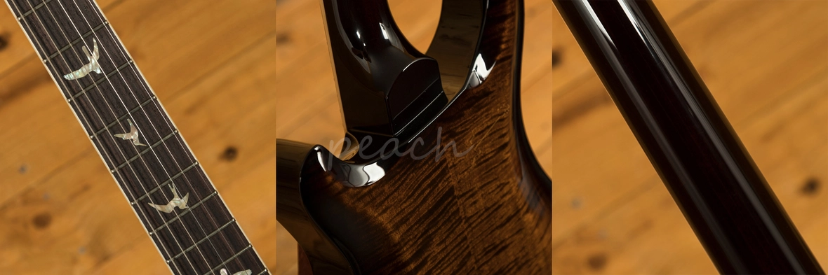 With a PRS adjustable stoptail and tweaked Phase III locking tuners you get great tuning stability and intonation.