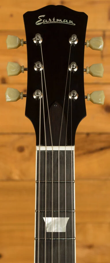 To enhance its visual appeal, the SB59 features elegant binding on both the body and neck, made of high-quality ivoroid. The pearl headstock logo and pearl crown inlays add a touch of sophistication and luxury. Even the backplates are meticulously designed, with sleek black plastic.