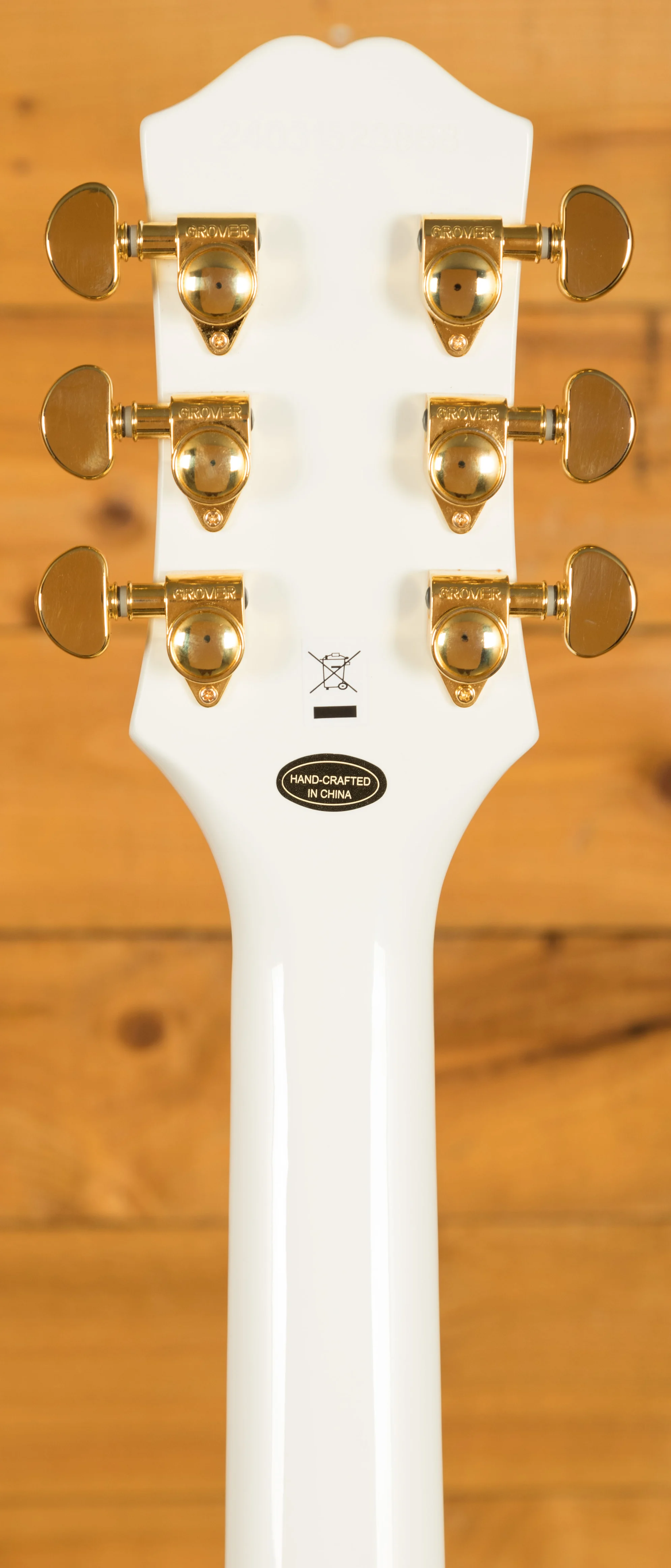 The Epiphone Les Paul Custom is equipped with a host of premium components that ensure unparalleled performance. Its gold Epiphone LockTone Tune-O-Matic bridge and Stop Bar tailpiece guarantee impeccable tuning stability and enhanced sustain. The Grover Rotomatic 18:1 tuners provide precise and reliable tuning adjustments, allowing you to focus on your performance with confidence. To capture the true essence of the Les Paul Custom's iconic tone, this model features a pair of critically acclaimed Epiphone ProBucker humbuckers, delivering rich, warm, and articulate sounds that are versatile enough to handle any musical genre or playing style.