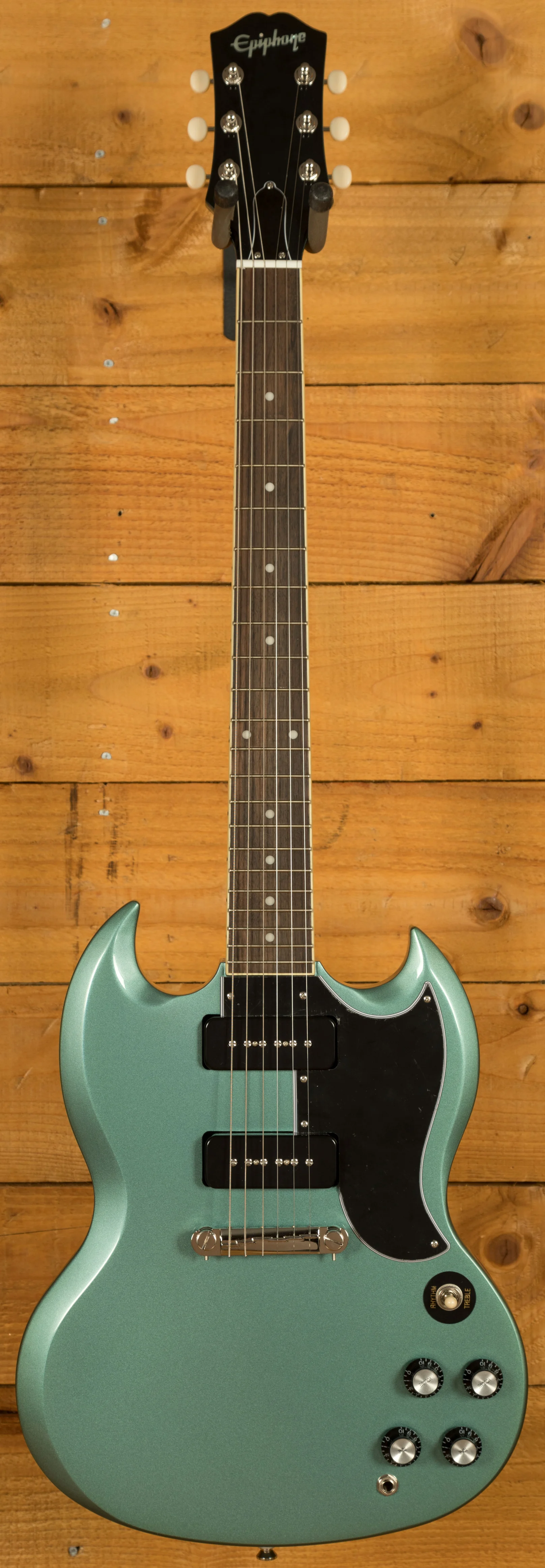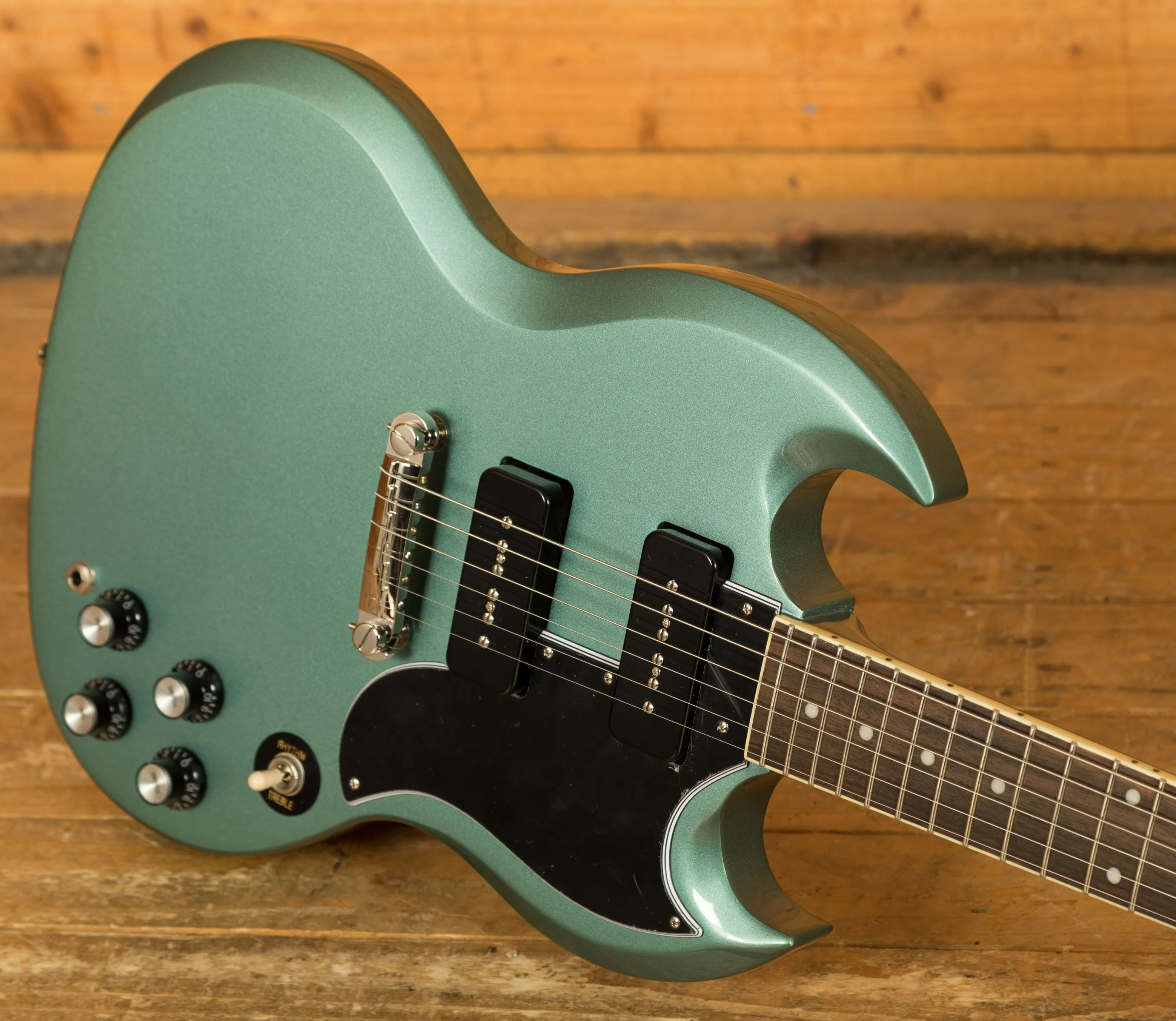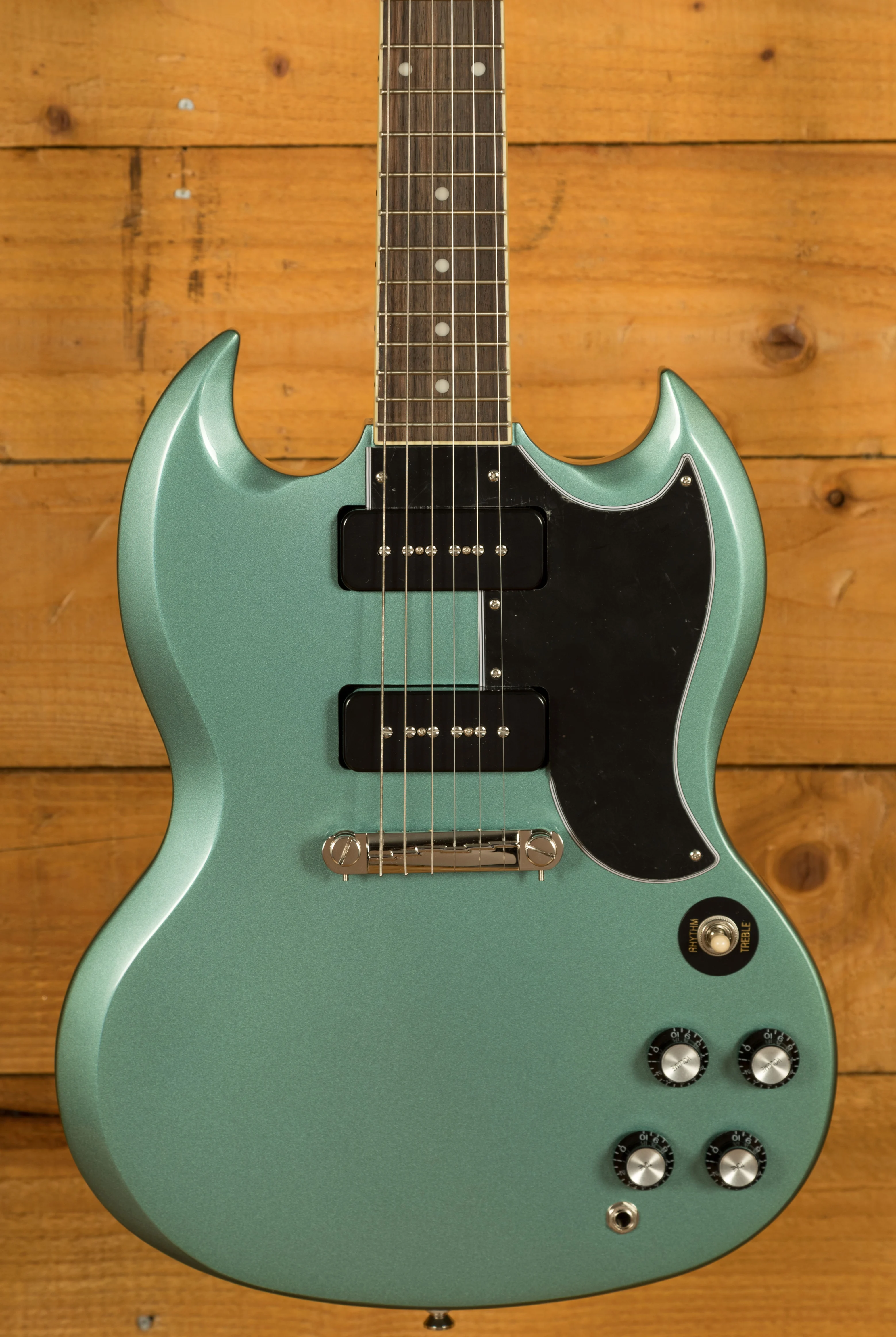 Introducing the Epiphone SG Special: Unleash the Power of Rock Royalty with the Authentic Sound of P-90s. Step into the world of timeless music and experience the iconic design that has captivated generations and defined genres. The Epiphone SG Special pays homage to its early 60's roots, offering you a classic style that has been cherished, played, and loved by musicians worldwide.