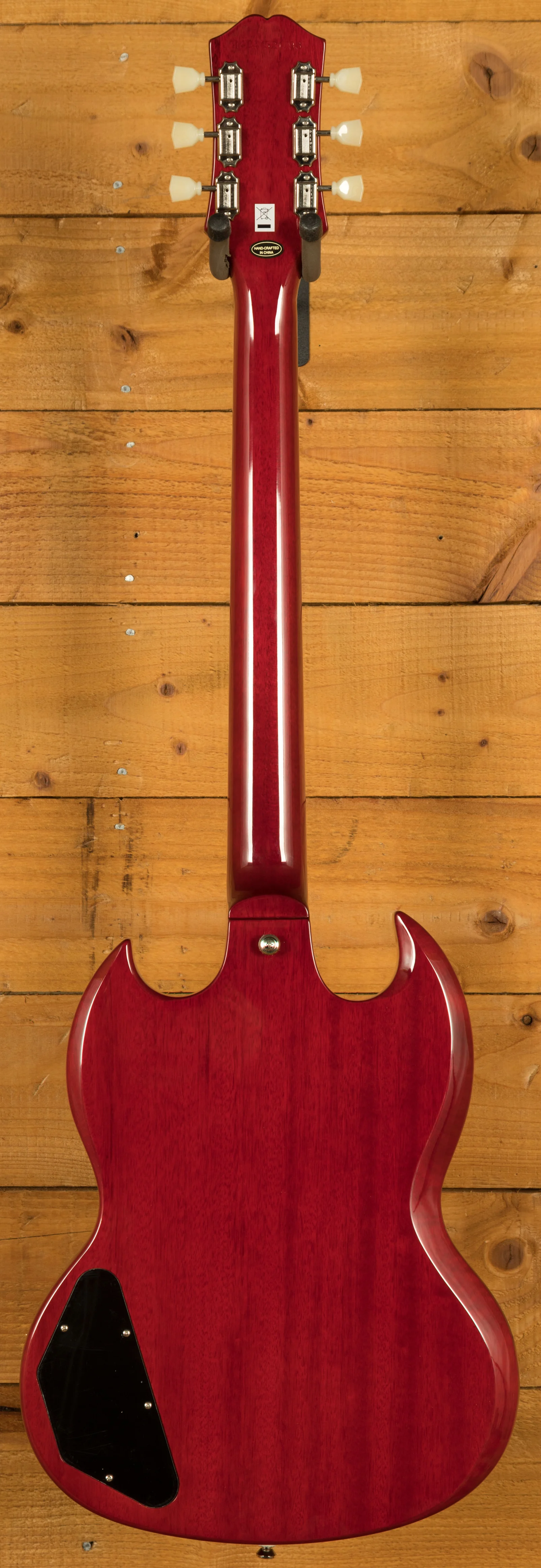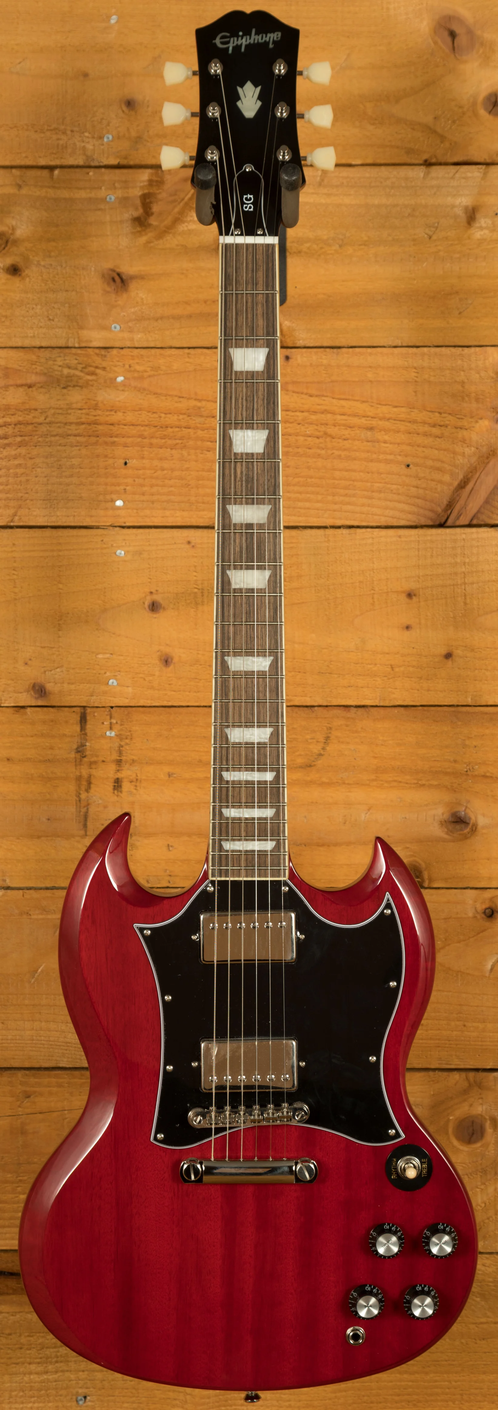 Introducing the Epiphone SG Standard from the highly acclaimed Inspired by Gibson Collection, a remarkable recreation of the iconic 1960s classic that revolutionised the world of hard rock and heavy metal. This magnificent instrument pays homage to the legendary SG that powered the explosive sound of bands like The Who, Cream, AC/DC, and Black Sabbath, establishing itself as an emblem of rock music's raw energy and rebellious spirit.