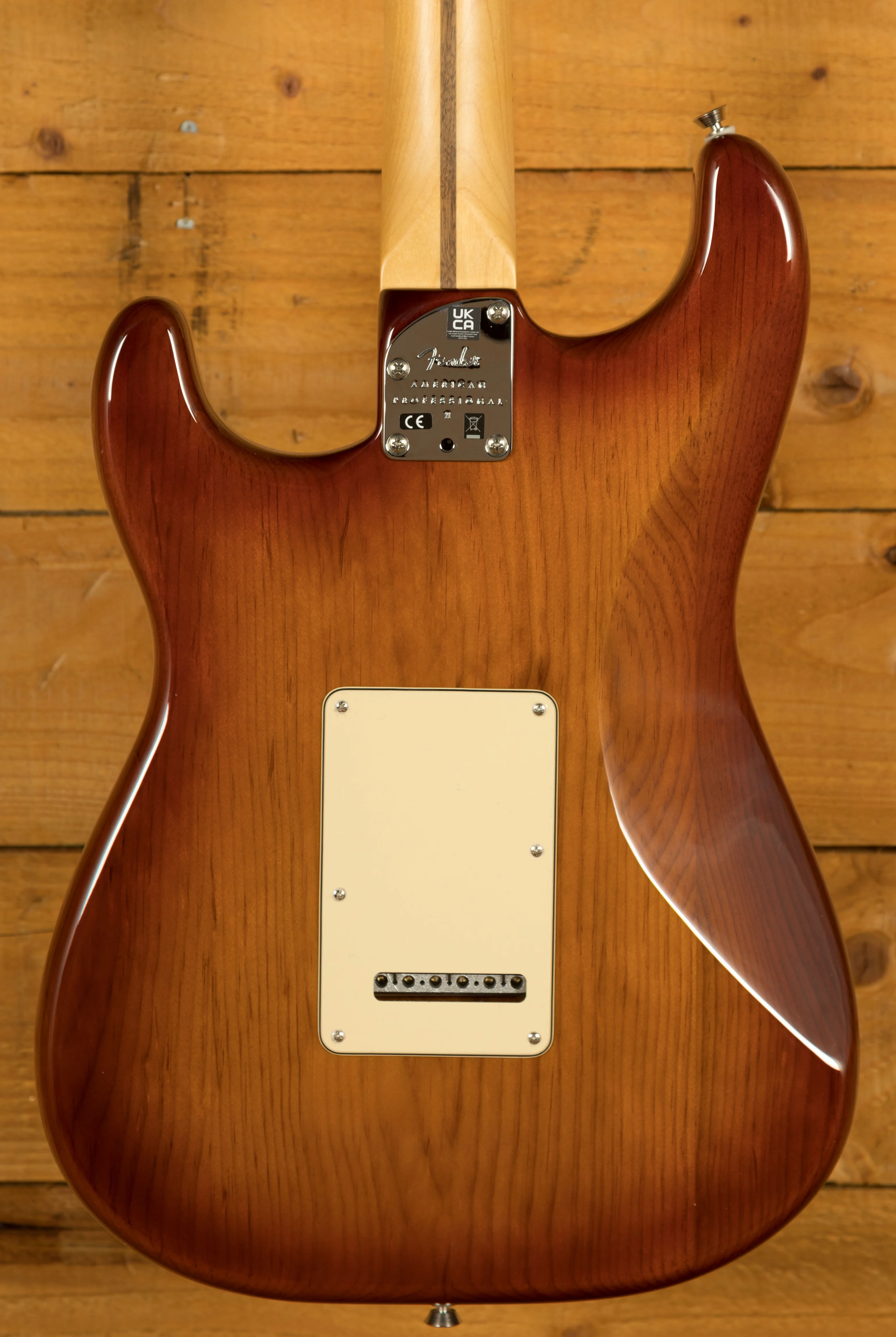 The Roasted Pine body is typically comfortable,as all Strat's are, Finished in the brilliant Sienna Sunburst option, it looks real slick. The Maple neck and fingerboard feature a Deep C profile, designed for speed and comfort; it's equally at home playing big chords or intricate lead work. 22 frets, a 9.5" radius and 25.5" scale length make this Stratocaster feel familiar and supremely comfortable. The Professional II range brings a new contoured neck heel , soft rolled fingerboard edges and a super natural finish for improved feel and comfort