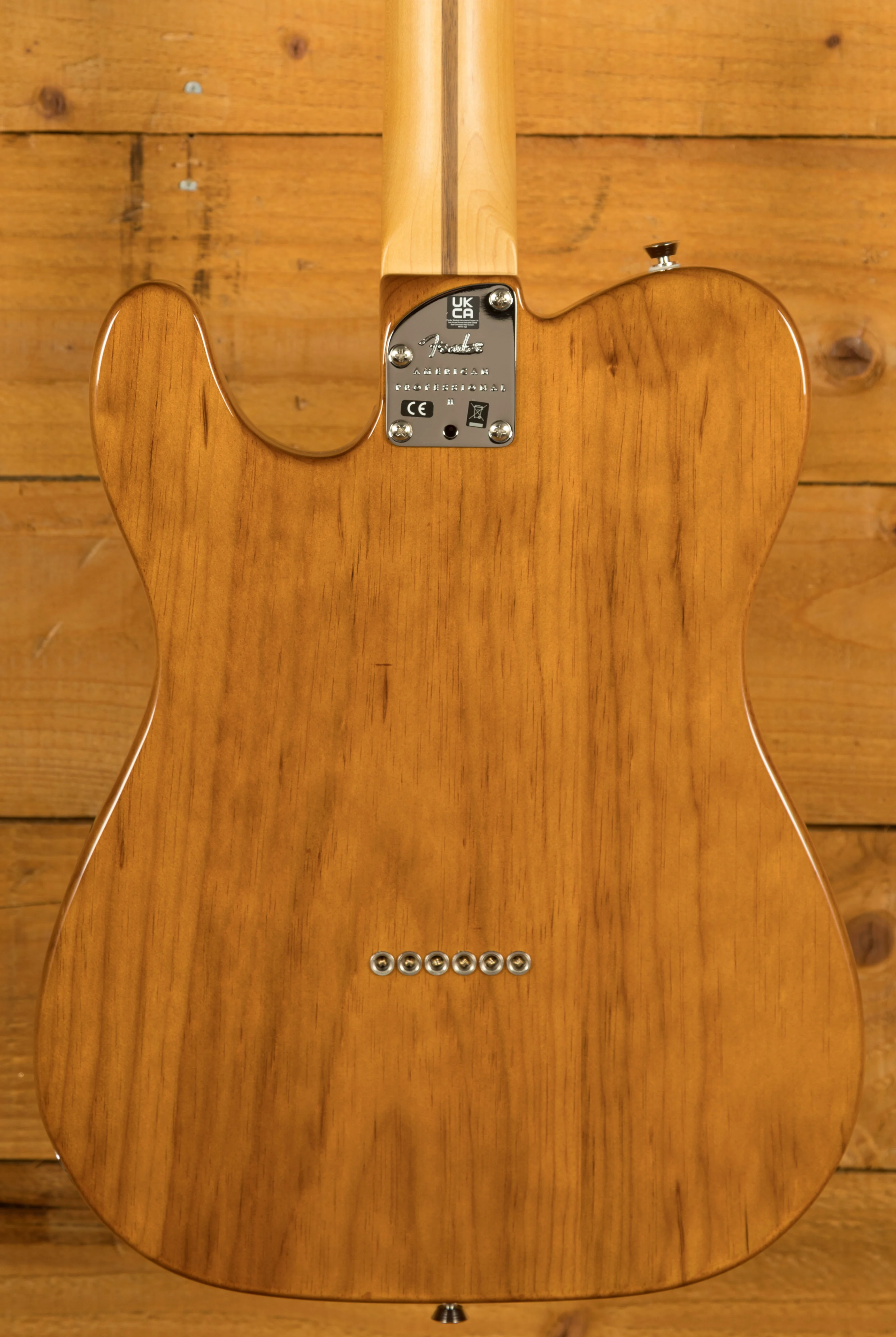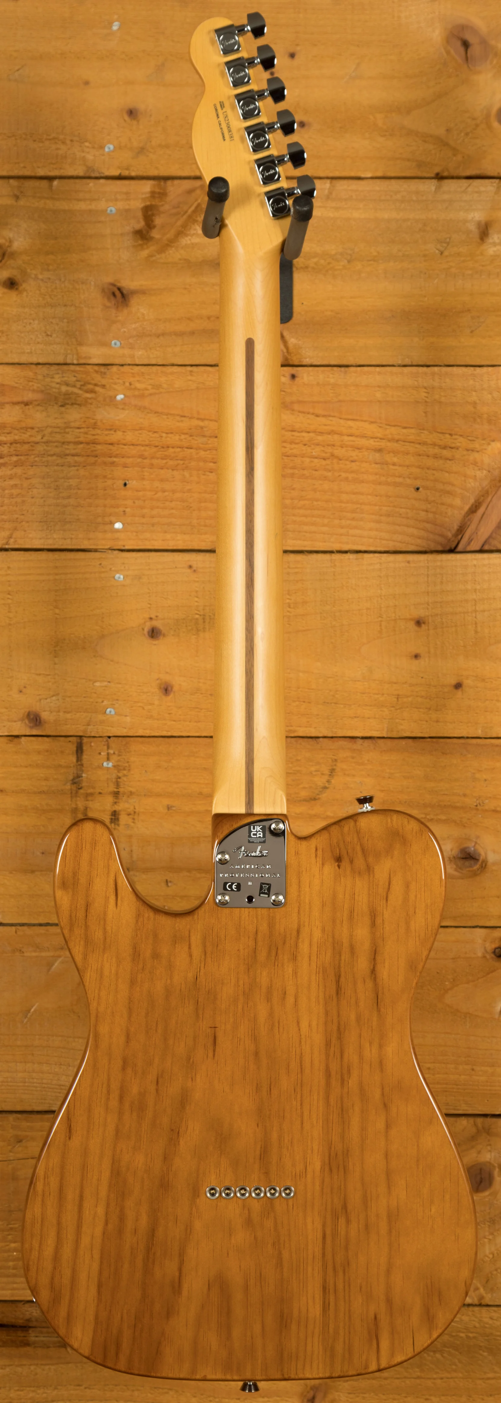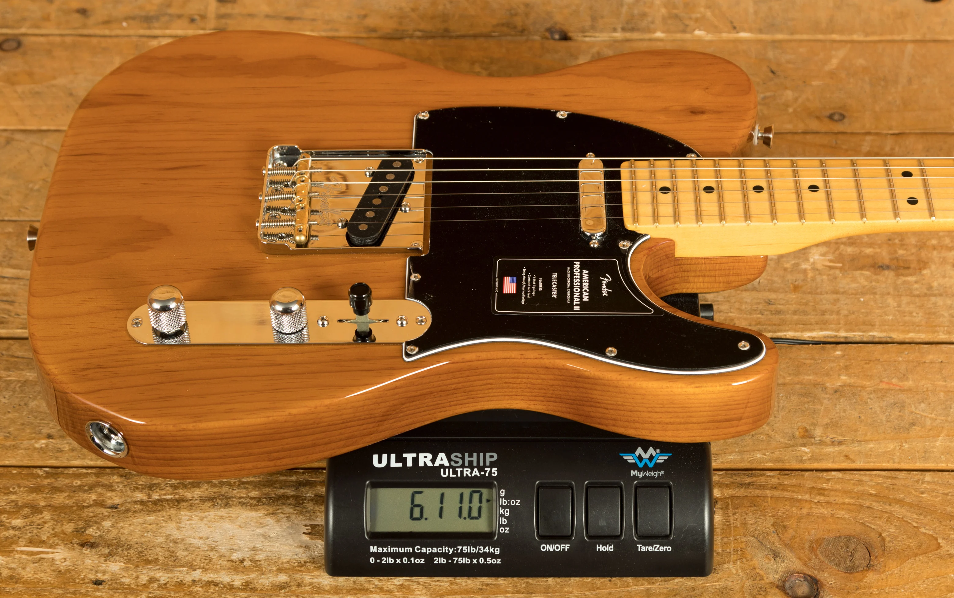 The Roasted Pine body is typically comfortable, as all Tele's are, it looks real slick. The Maple neck and fingerboard feature a Deep C profile, designed for speed and comfort; it's equally at home playing big chords or intricate lead work. 22 frets, a 9.5" radius and 25.5" scale length make this Tele feel familiar and supremely comfortable. The Professional II range brings a new contoured neck heel , soft rolled fingerboard edges and a super natural finish for improved feel and comfort