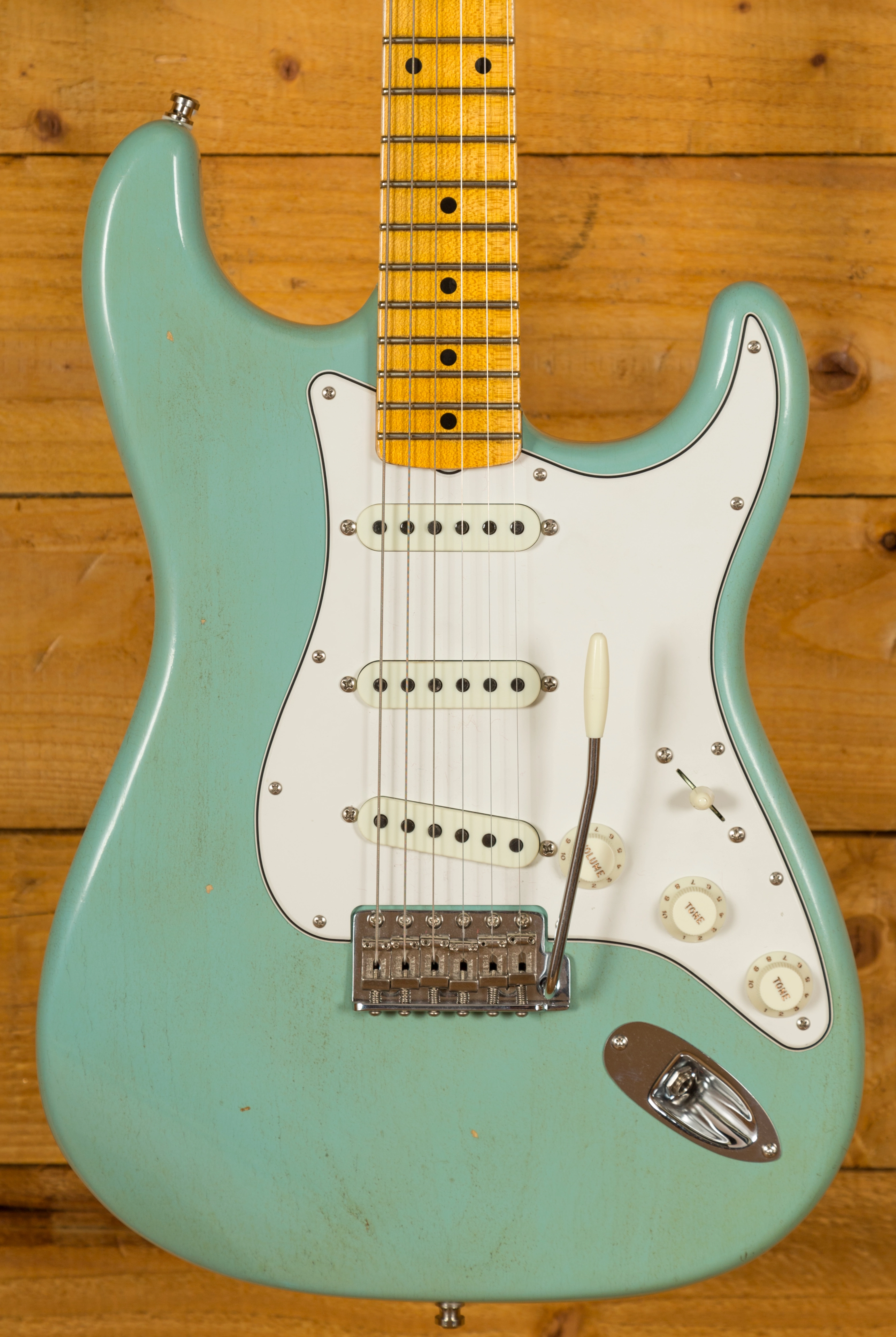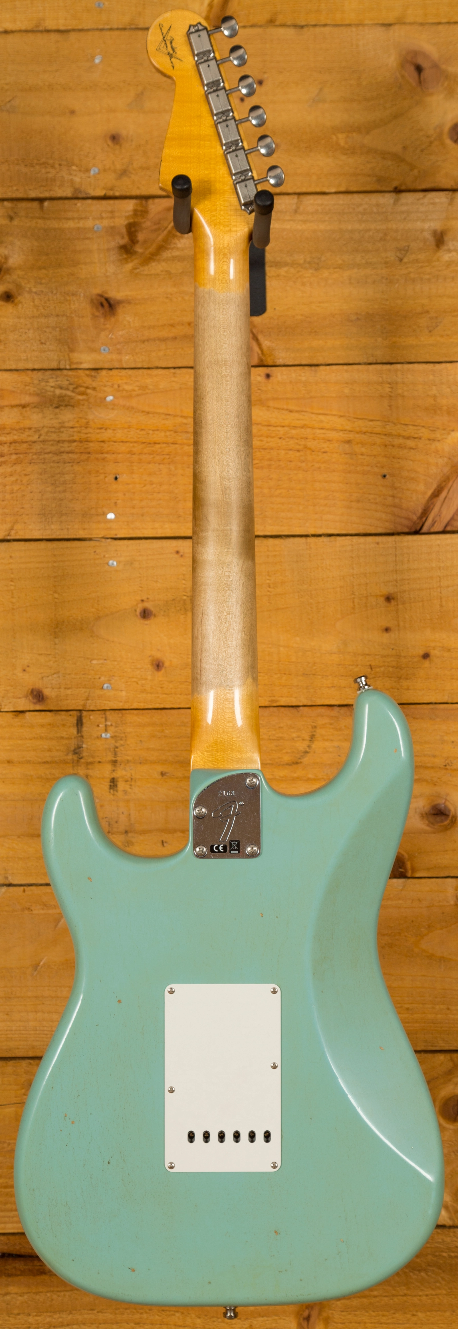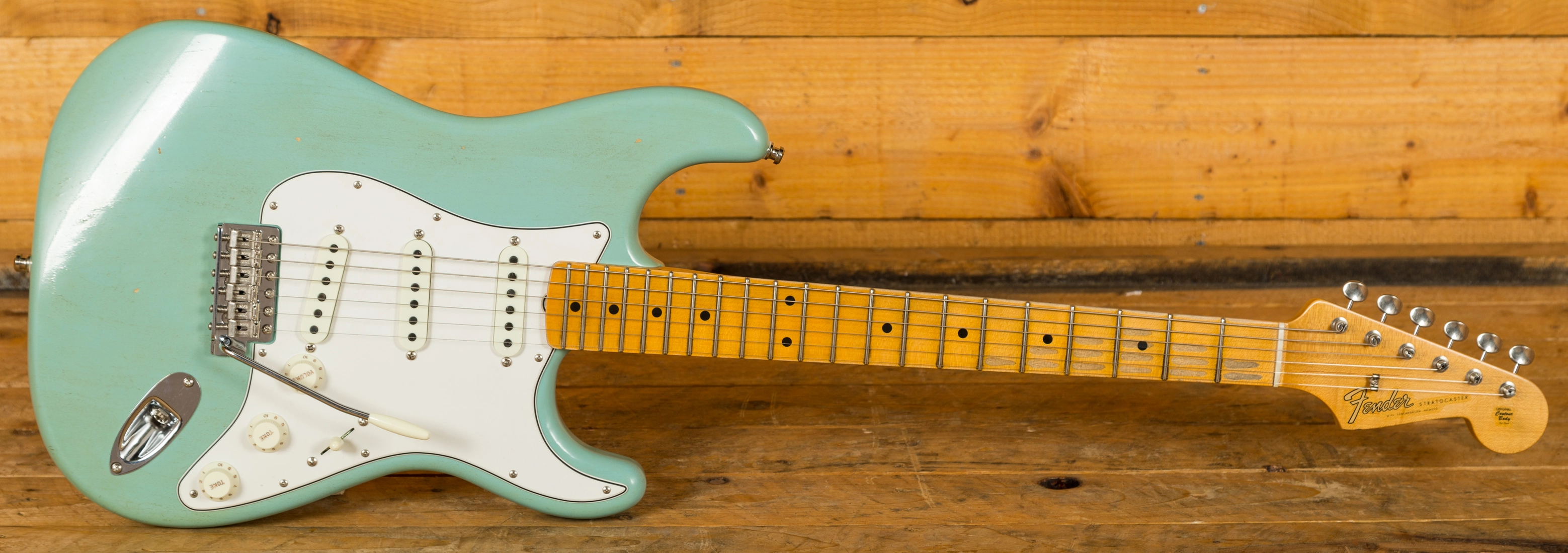 A lightweight Ash body is finished in the iconic Closet Classic Aged Daphne Blue, one of Fenders all time classic finishes, it's a real beauty! As a closet Classic model it features an aged nitro finish, there is no playing wear but plenty of other indications of the guitars age. The thin lacquer finish is heavily checked, especially on the back, the hardware is lightly oxidized and there are minor surface scratches across the body. It's inspired by guitars that have spent their lives hidden away in their case, maybe even forgotten about; this finish is distinctive and authentic.