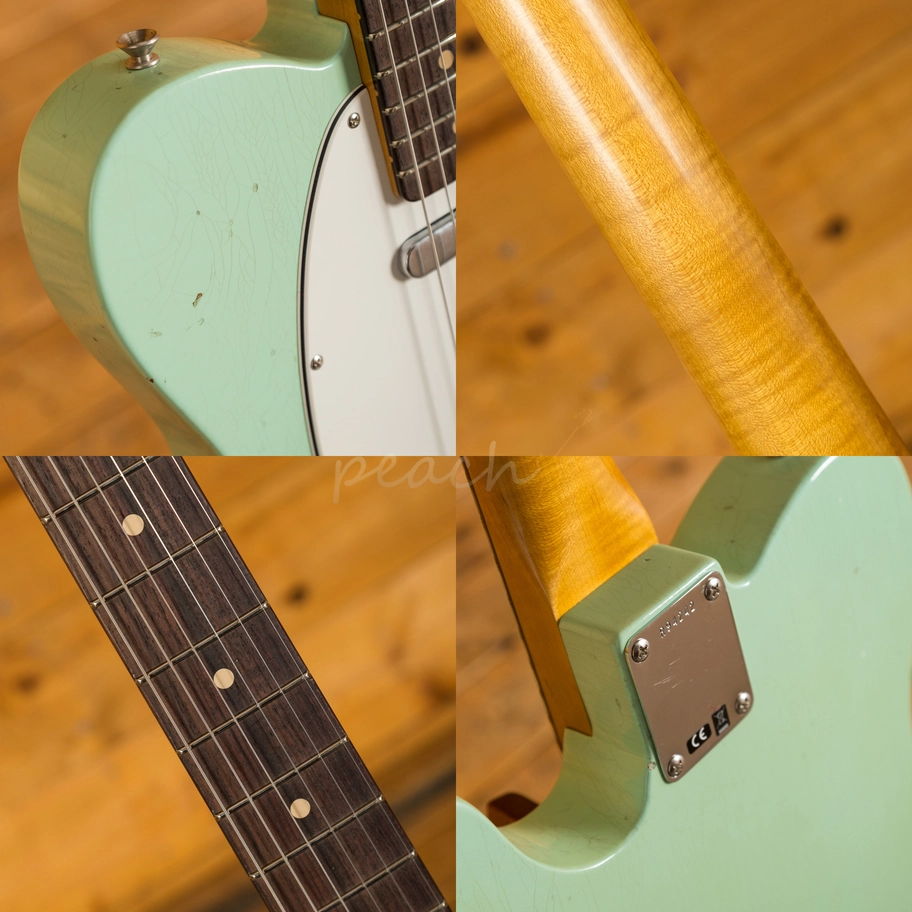With the appearance of a vintage guitar this Custom Shop model benefits from all the playability and reliability of a brand new one. The Alder body is finished in an incredible Aged Surf Green Journeyman finish. The Journeyman is a very lightly aged nitro finish; this gives the look and feel of a vintage guitar that has been lovingly cared for over the years. This finish will wear beautifully with time and develop its own character even further. It also allows the natural resonance of the body to sing and sustain much more effectively compared with other more modern finishes.