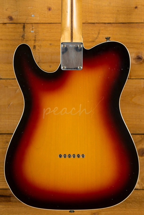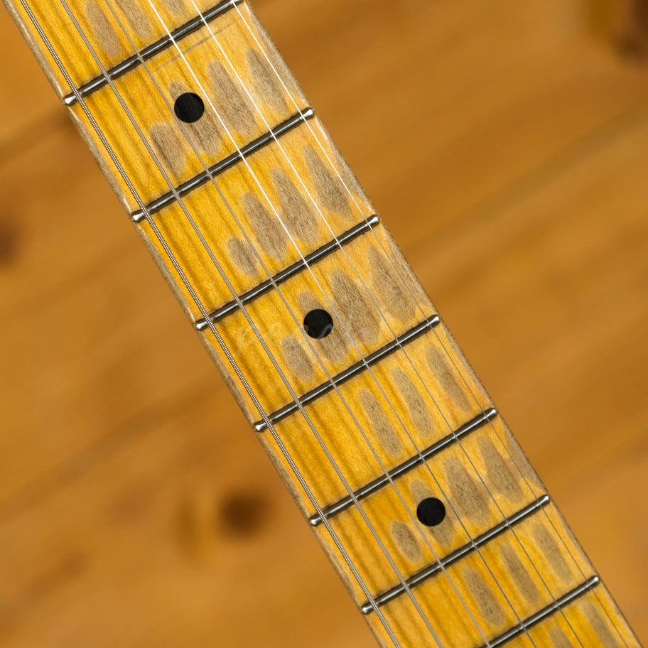 The lightweight Alder body is finished in a classic Faded 3-Colour Sunburst Journeyman nitro lacquer. The Journeyman is a very lightly aged nitro finish; this gives the look and feel of a vintage guitar that has been lovingly cared for over the years. This finish will wear beautifully with time and develop its own character even further. It also allows the natural resonance of the body to sing and sustain much more effectively compared with other more modern finishes.