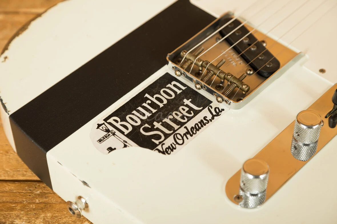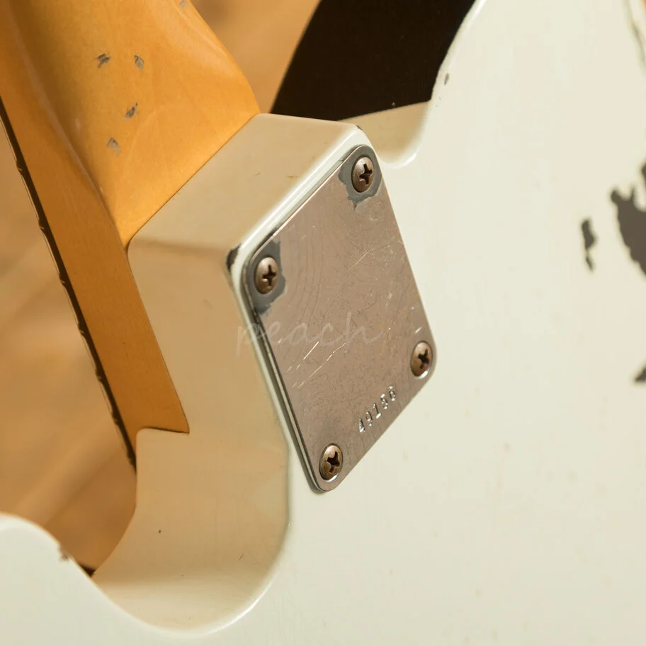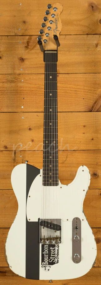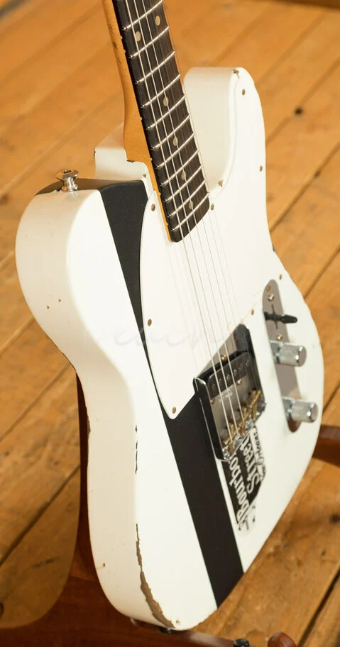A 2-Piece offset seam Alder body is finished in a super awesome Olympic White with an awesome custom paint work, designed to really capture the visuals of one of Joe's most iconic instruments. This guitar has gone through the full Master builder treatment, beautifully aged by Jason Smith to ensure he creates a faithful replica of one of Punk Rocks most infamous instruments. The relic is truly unbelievable; the attention to detail here is meticulous and super authentic.