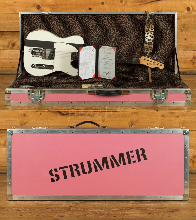 The Joe Strummer Esquire beautifully captures the magic of the rise of Punk Rock in Great Britain, this guitar not only created a culture shift in both music and culture, it is a representation of change and defiance, everything Joe stood for. With a Certificate of Authenticity, strap and a custom pink anvil case with "Strummer" stencil and leopard lining. This is one super slick guitar.