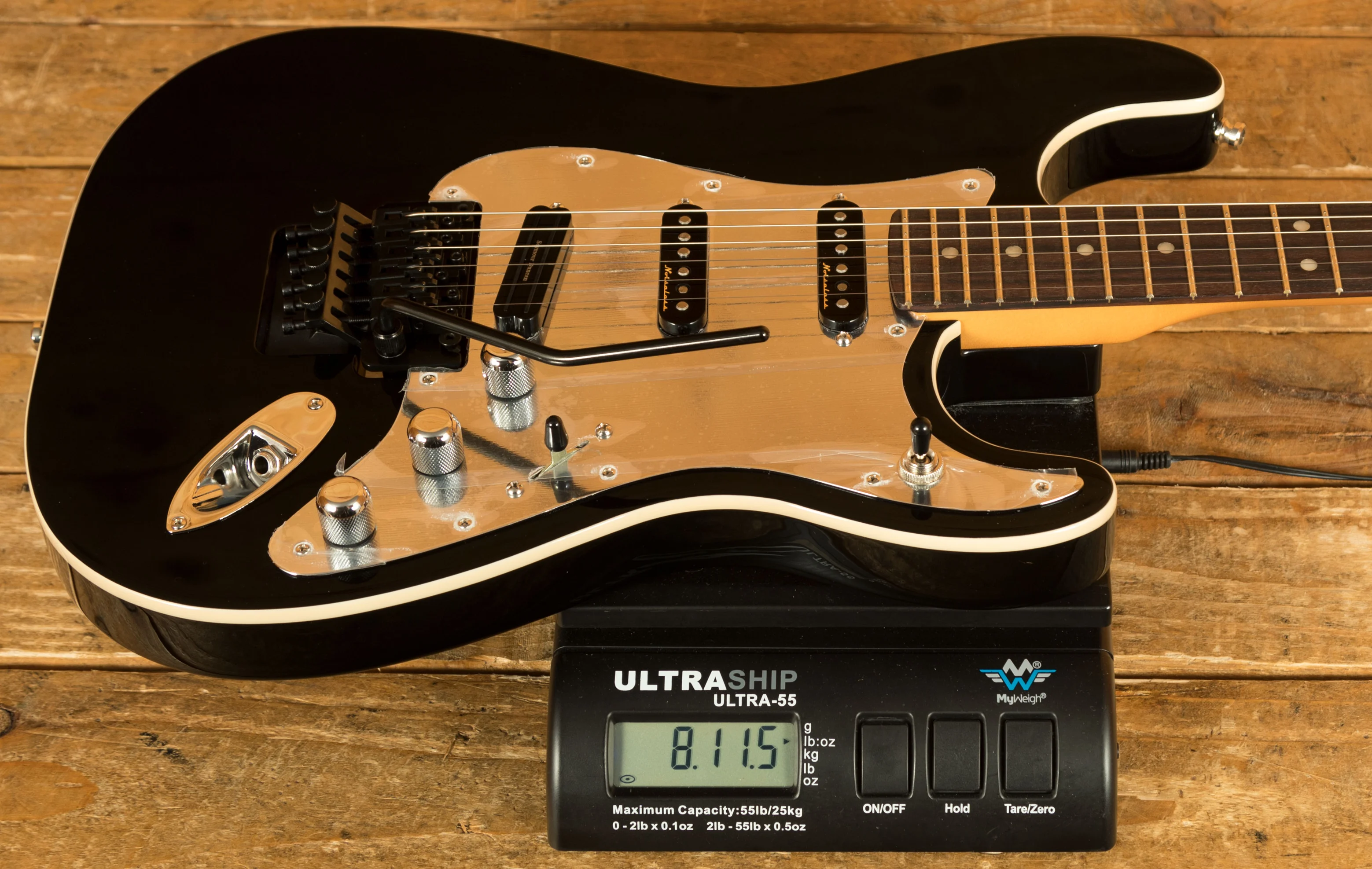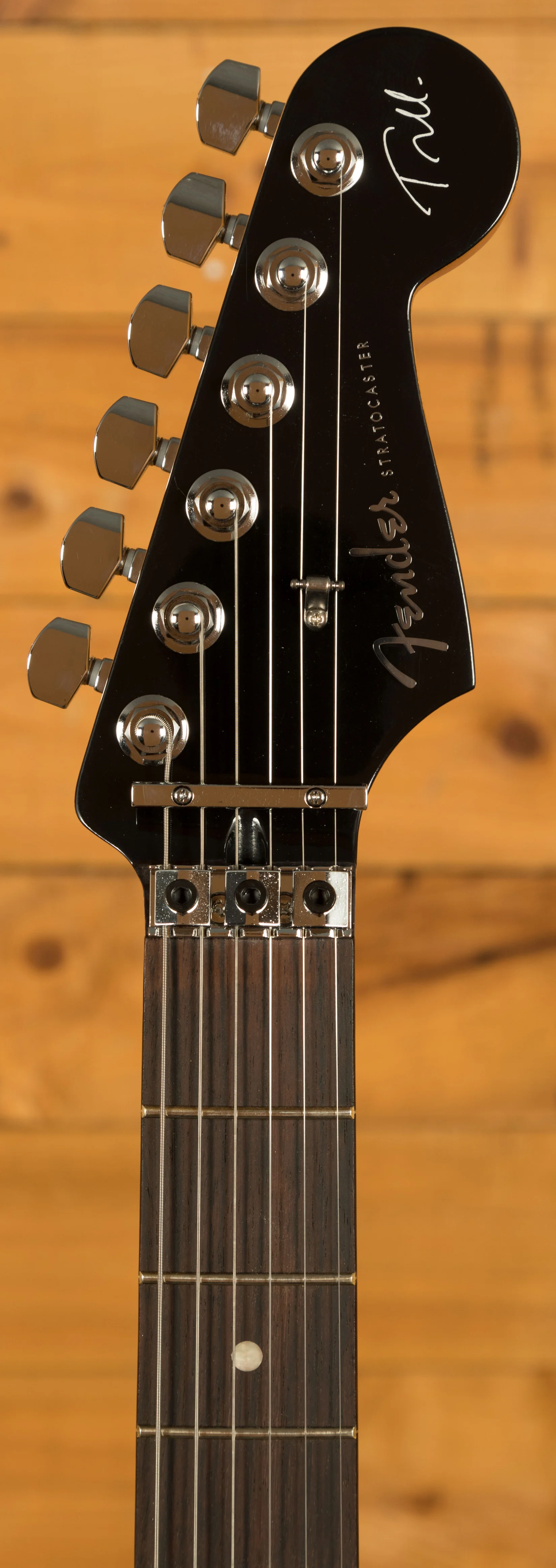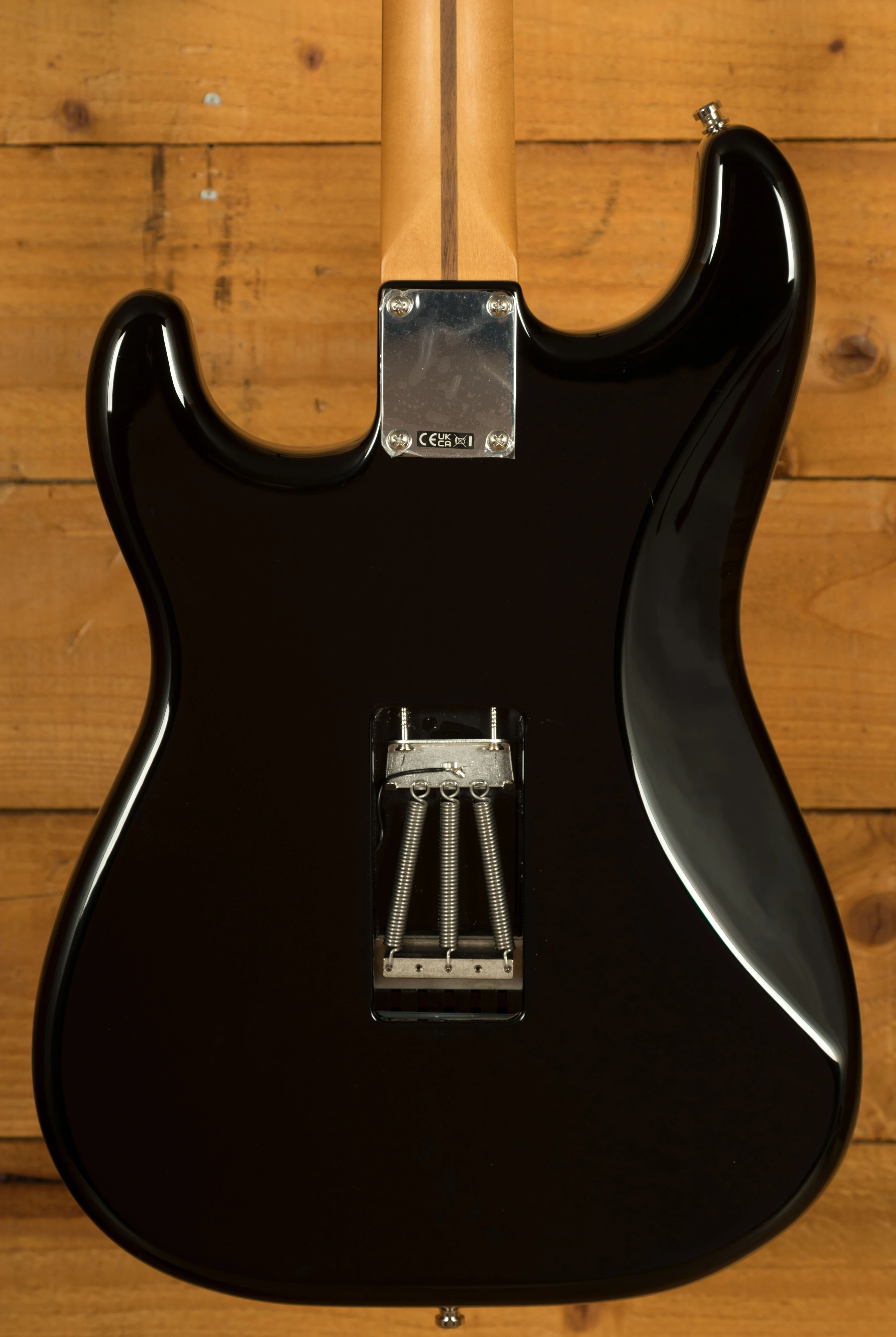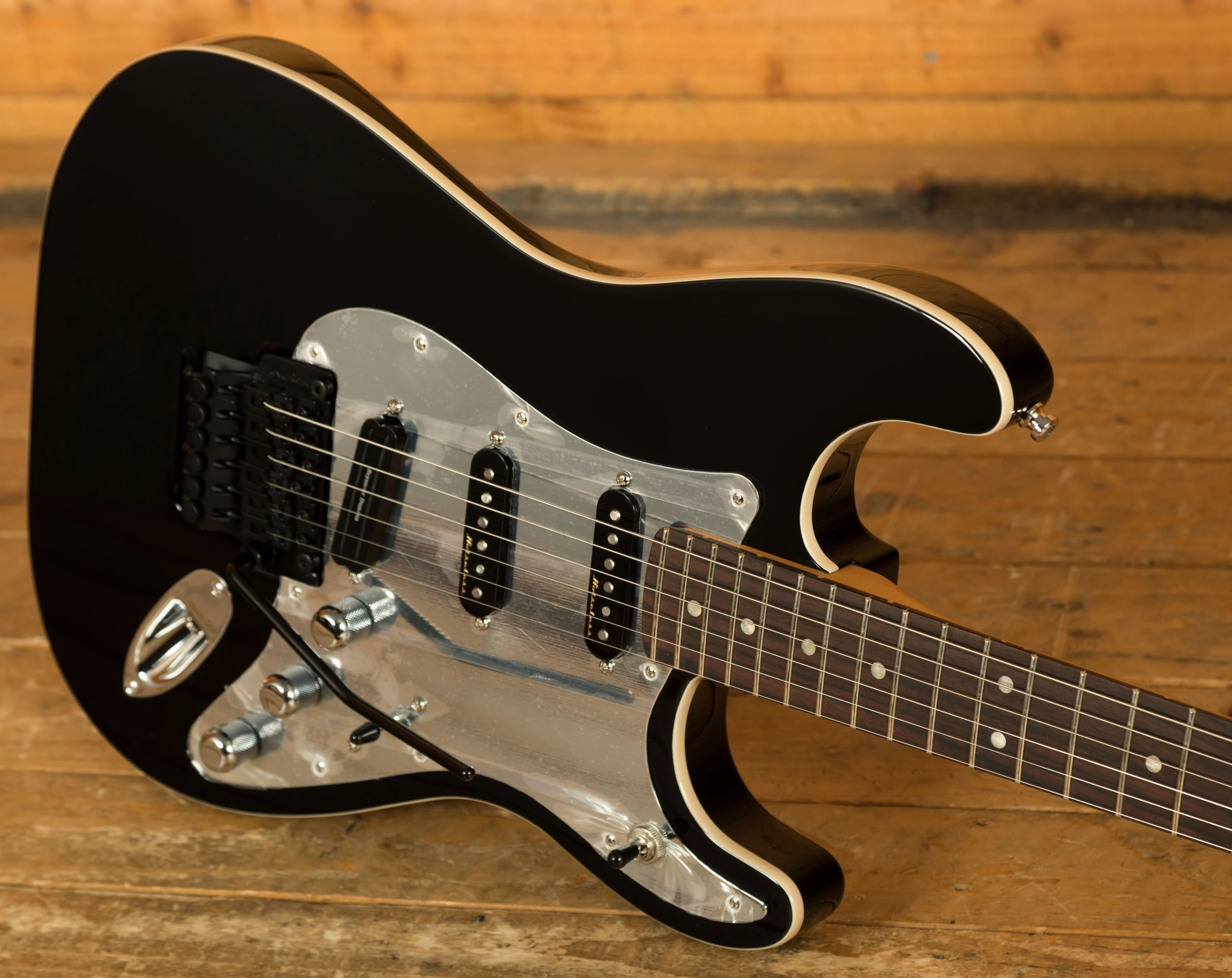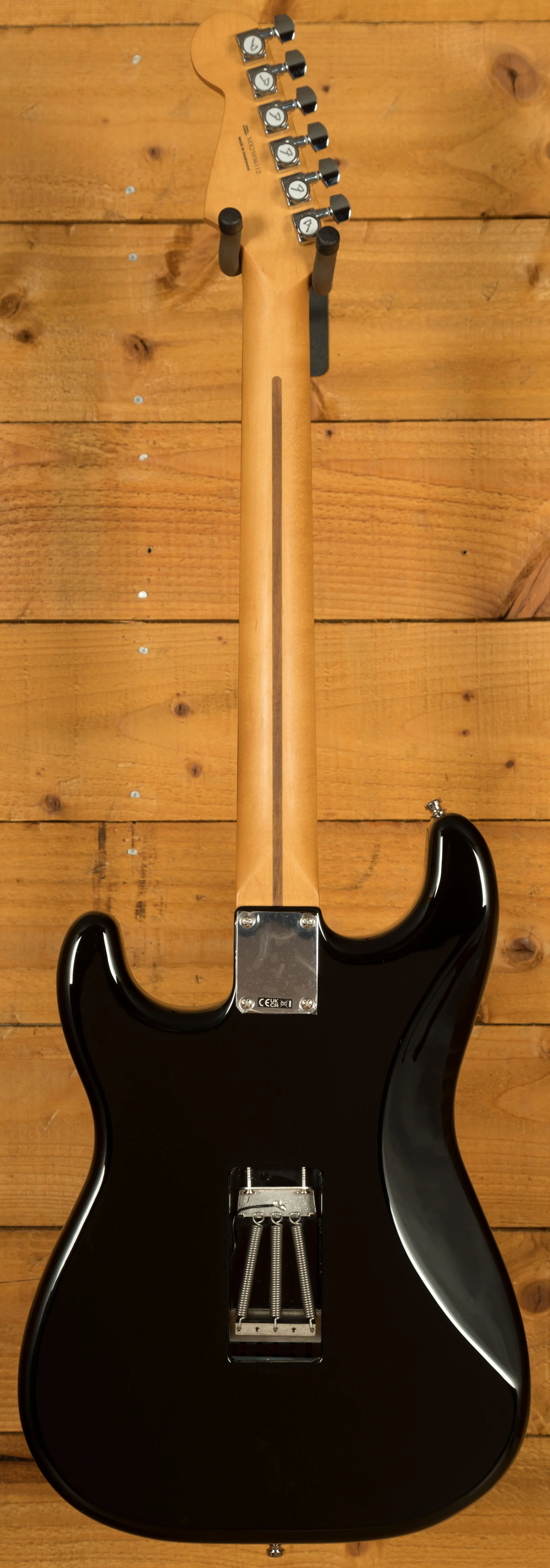 The Tom Morello Soul Power Stratocaster, based on the modified Designer Series Strat used during his time in Audioslave, features a classic Alder body finished in a gloss black with a 1-ply mirrored chrome pickguard. It really captures that classic Morello feel and even includes the iconic "Soul Power" body decal in the case.