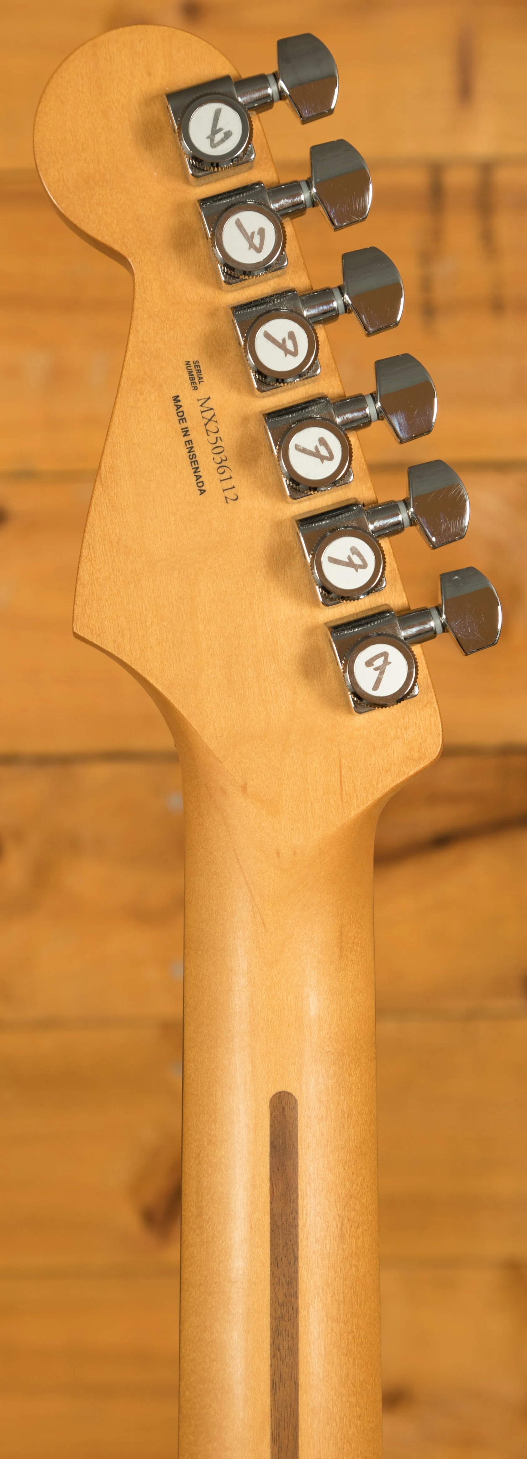 A Modern "C" shape Maple neck provides a comfortable and stable playing platform, adorned with a dark Rosewood fingerboard which features a 9.5"-14" Radius, 22 medium jumbo frets and a 1.675" nut width