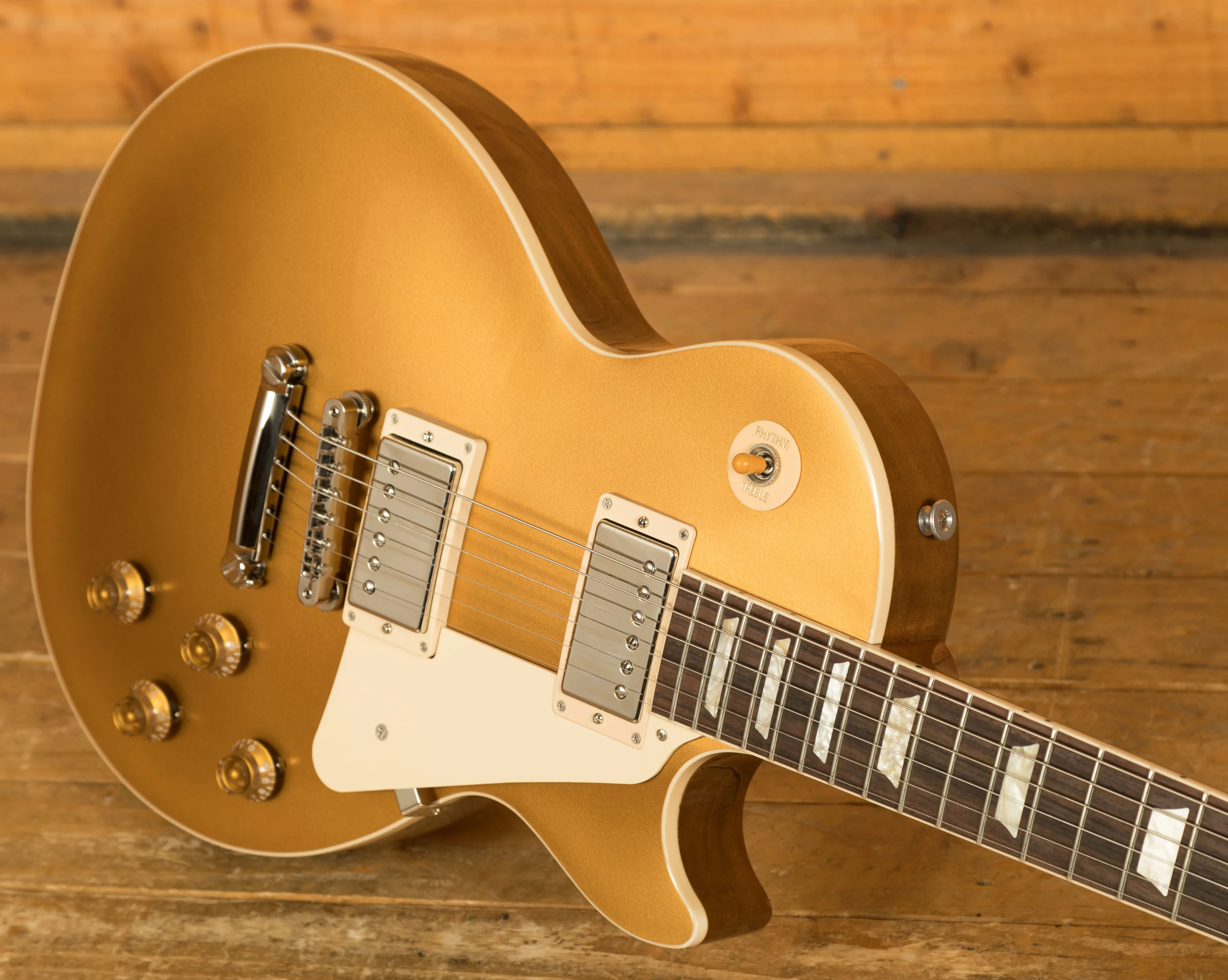 With a Mahogany body, this Les Paul benefits from a Maple top for the ultimate tonewood partnership. Rich and super resonant it offers premium tone and timeless aesthetics, while the Gold Top finish looks a million dollars and really allows the wood to breathe and the natural tone to sing through.
