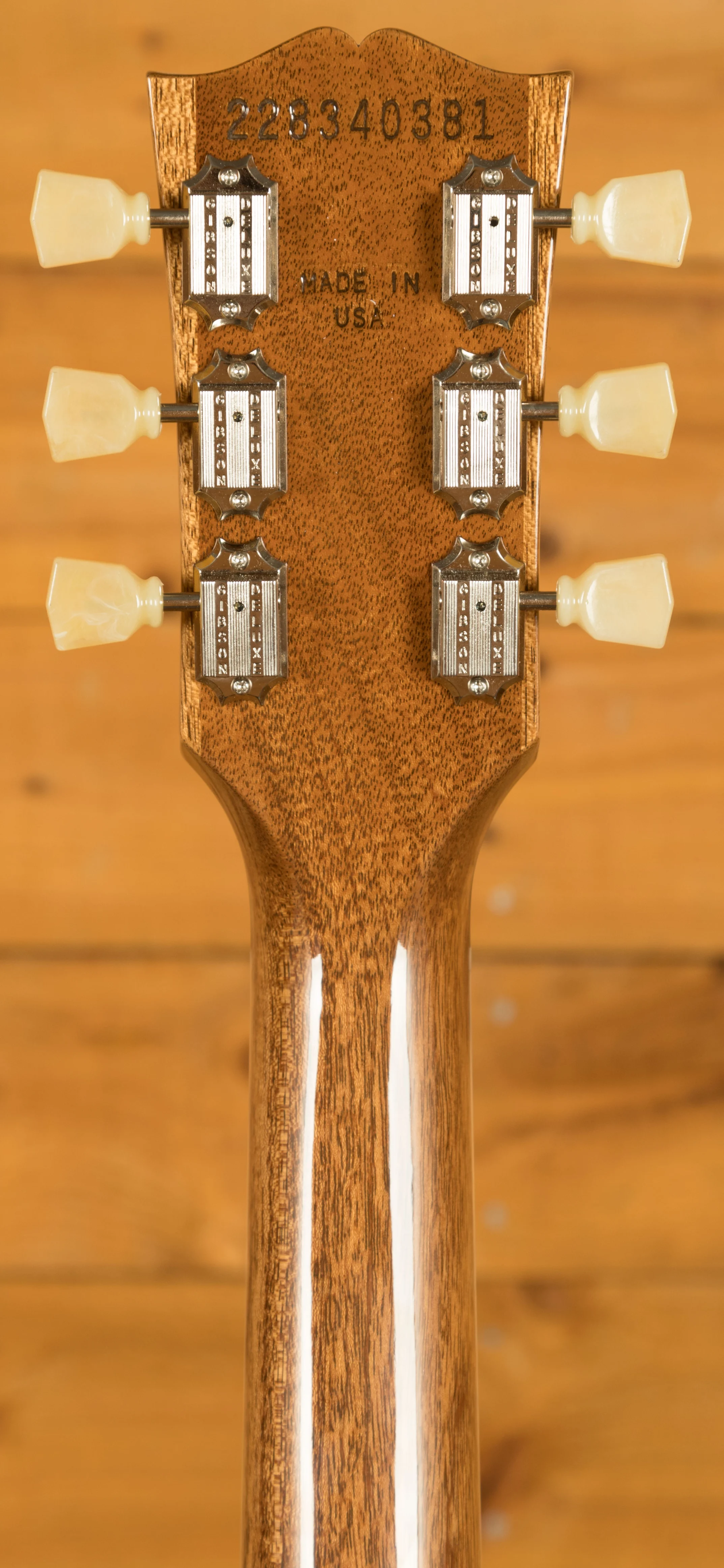 The Mahogany neck is topped with a crisp Rosewood fingerboard with classic Gibson Trapezoid inlays, this guitar looks every bit the real deal. With a 24.75" scale length and a Vintage 50s profile, it retains that classic Les Paul feel. The ABR1 Tune-O-Matic bridge and light weight tailpiece offer an authentic vintage vibe.